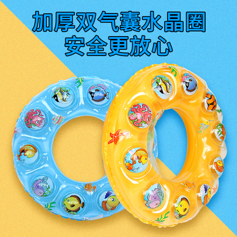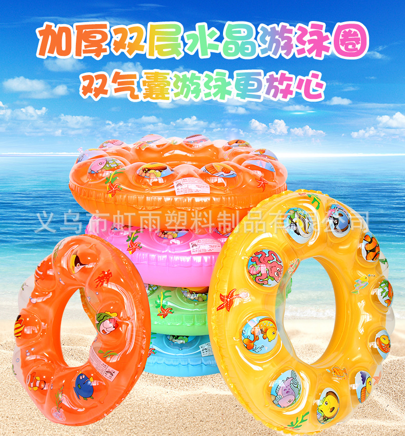 夏季加厚儿童游泳圈双气囊充气水晶泳圈 透明塑料双层水晶圈批发