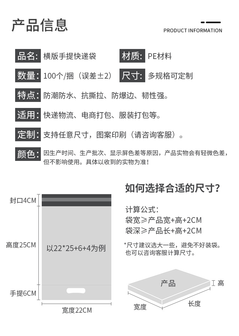横板手提快递袋加厚 飞机盒专用防水快递袋电商手拎自粘打包袋子