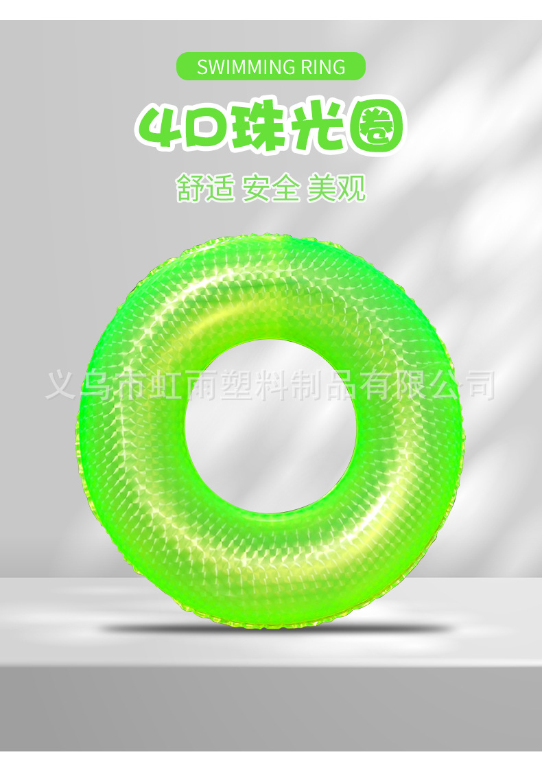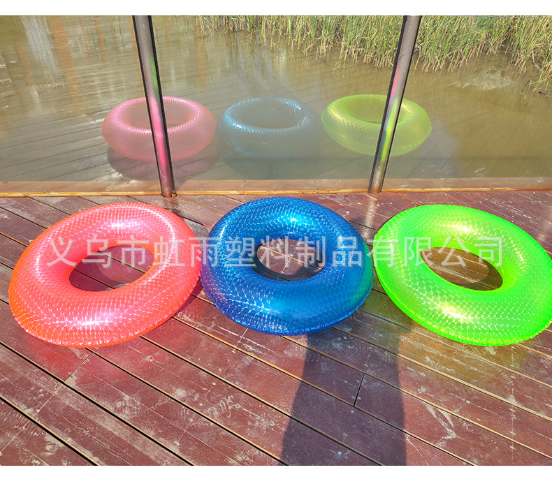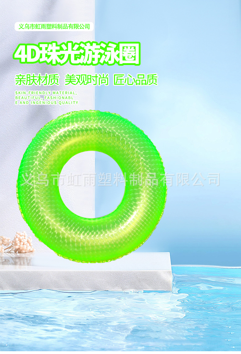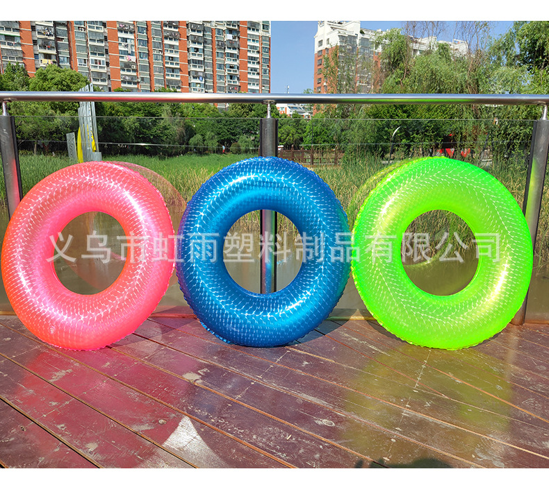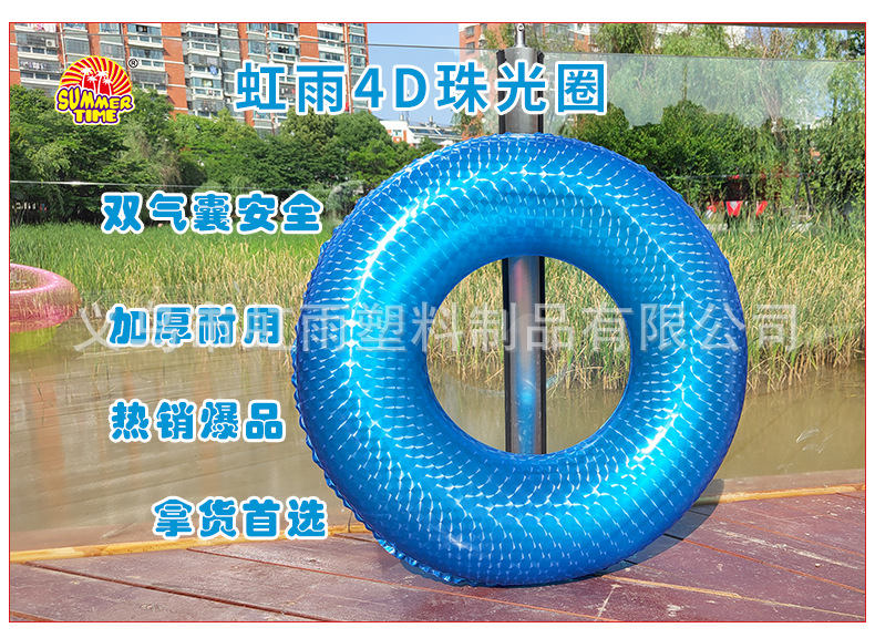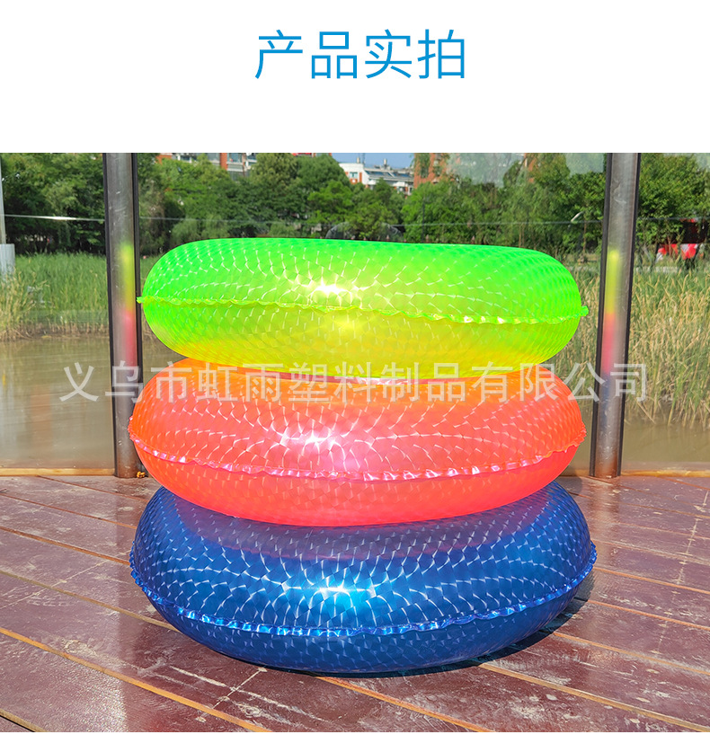 虹雨加厚4D珠光游泳圈批发三色霓虹救生圈 儿童彩色3D荧光游泳圈