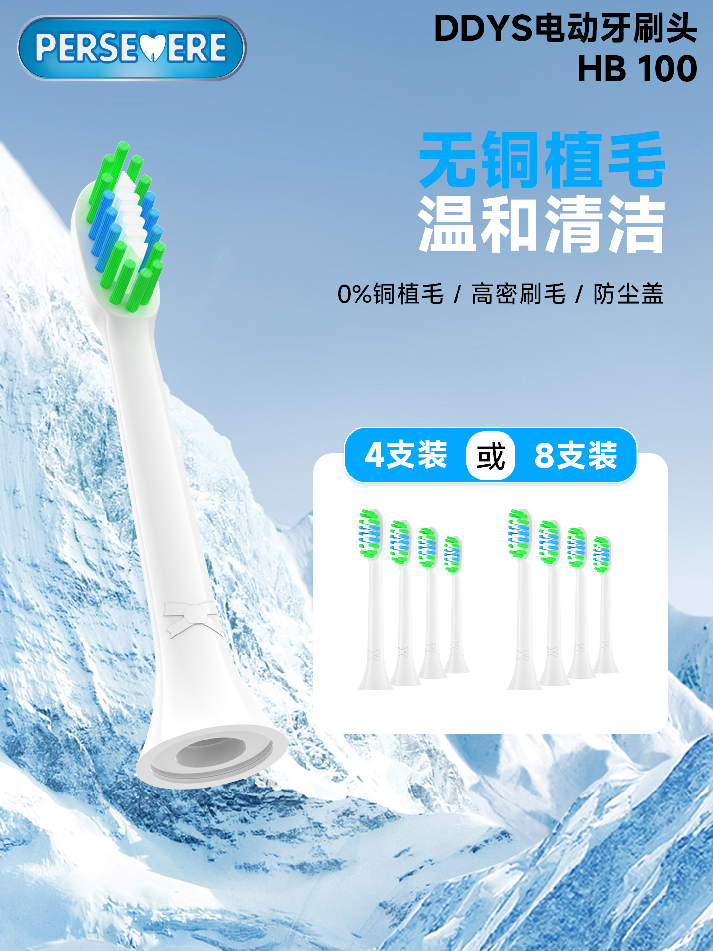 适用飞利浦5/6/7/8/9系电动牙刷头无铜牙刷头HB100-4/8支装家庭装