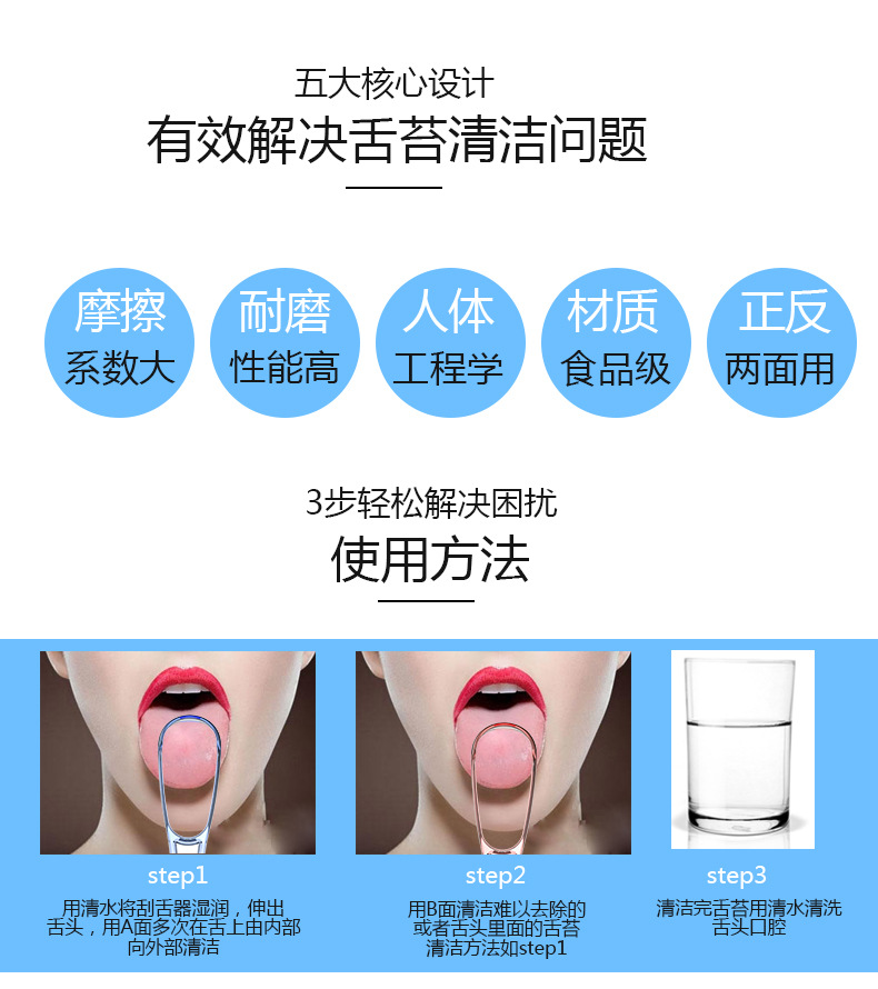 厂家直销 成人 刮舌器舌苔清洁刮除口气舌头清洁刮板食品级PP材料