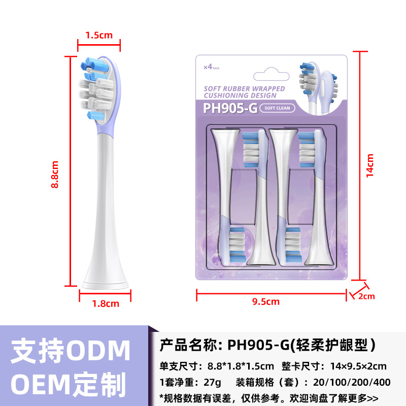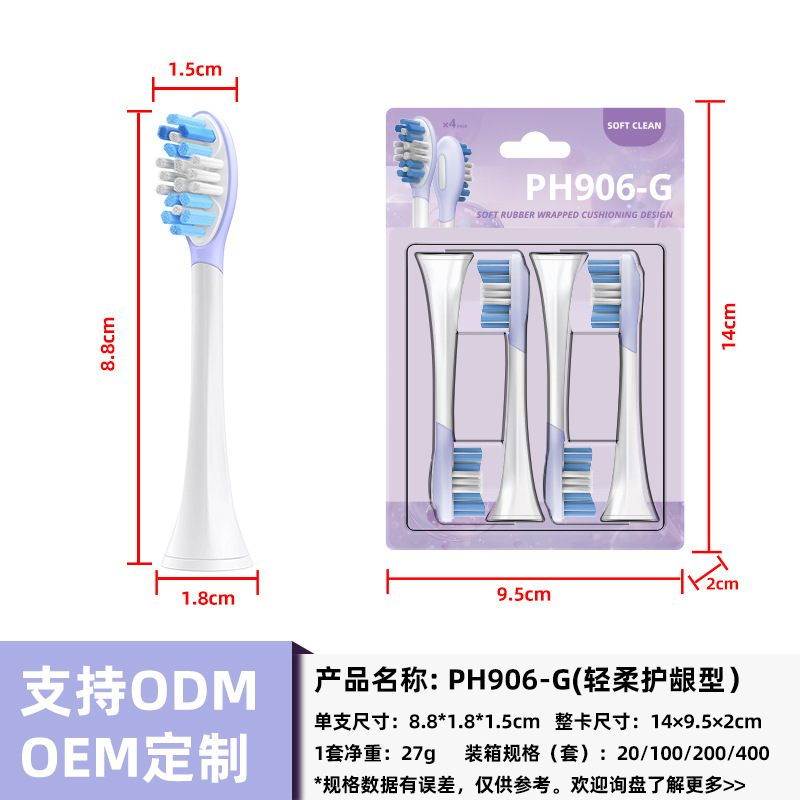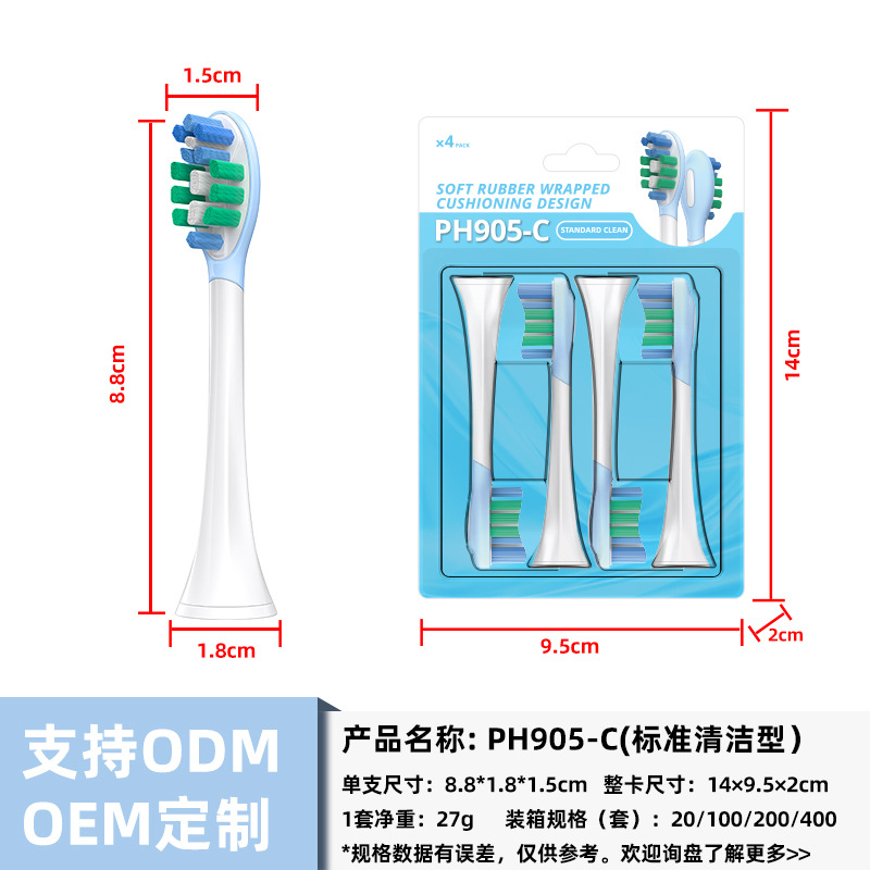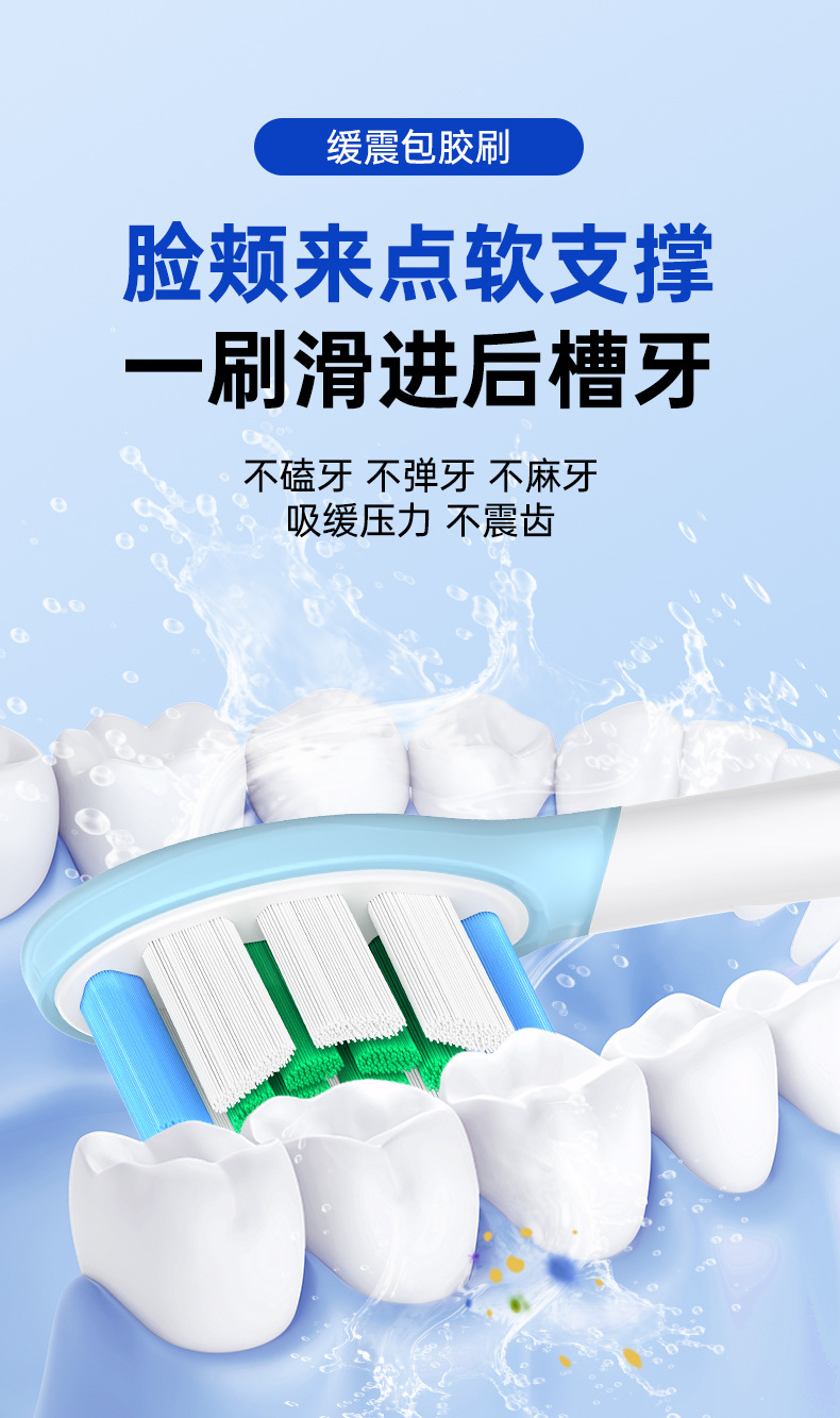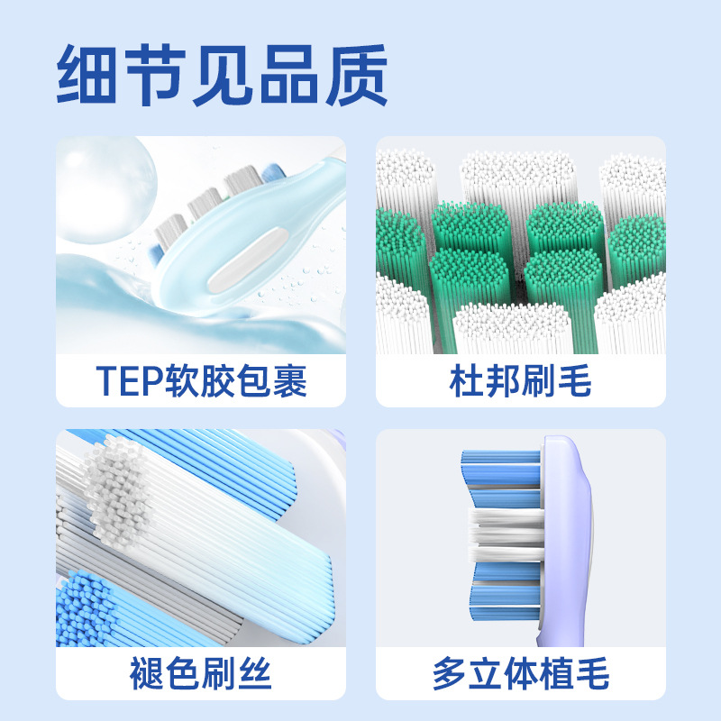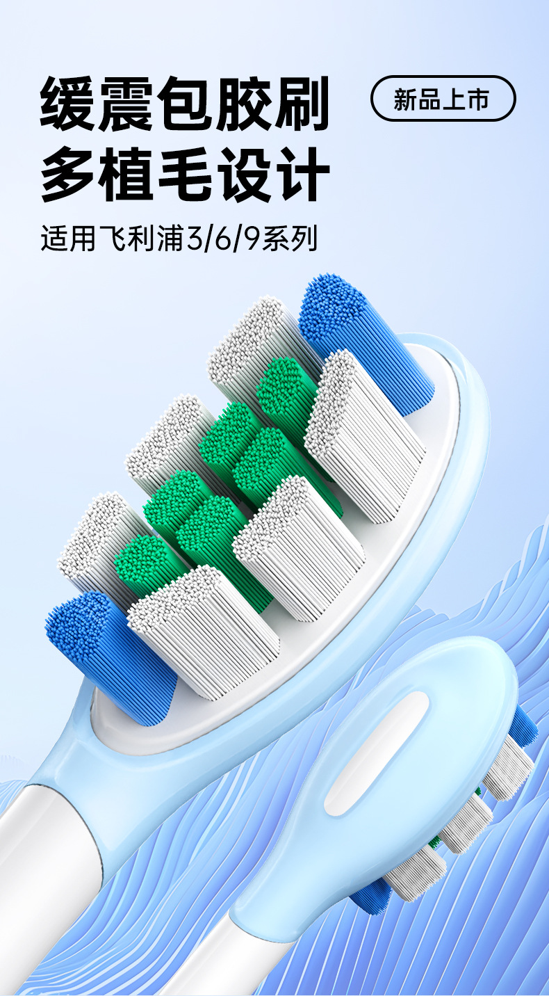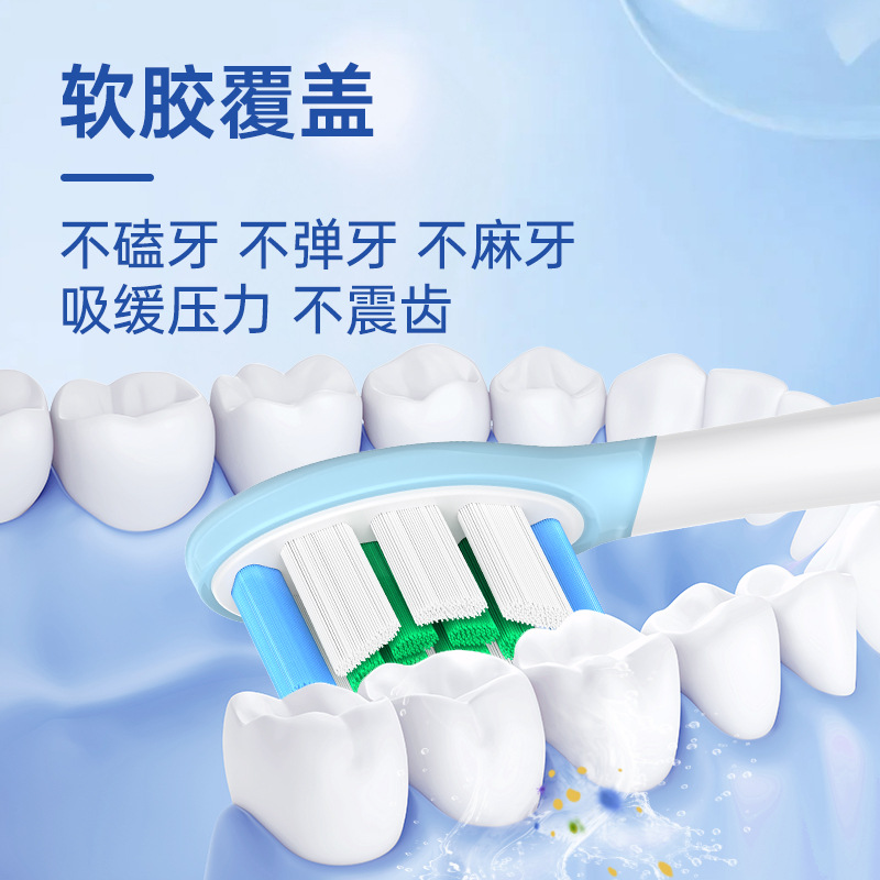 全新缓震包胶成人多效清洁刷适用于飞利蒲HX3/6/9声波电动牙刷头