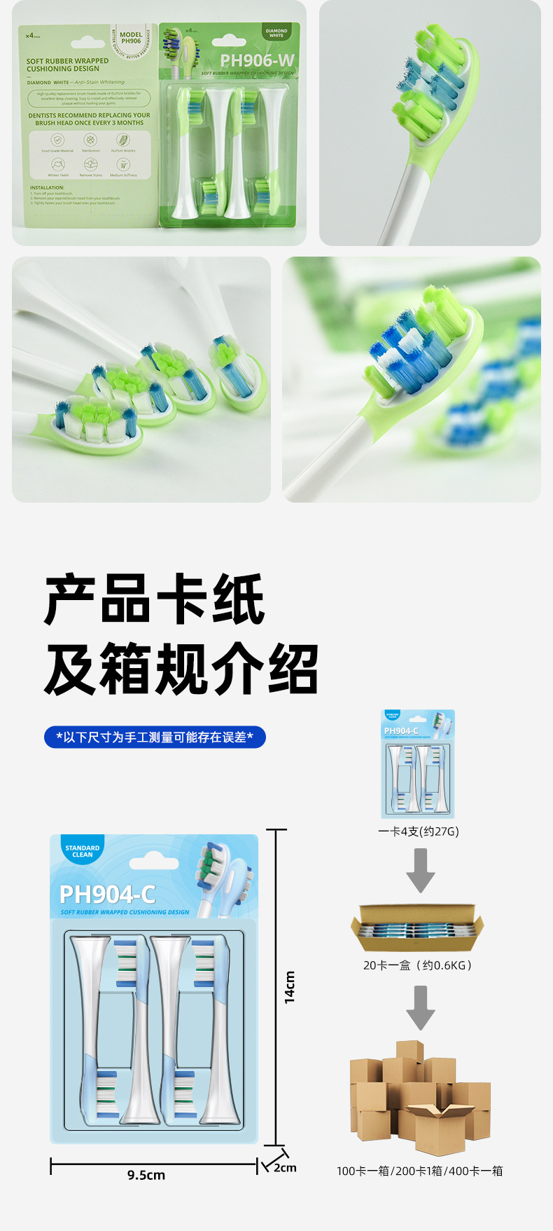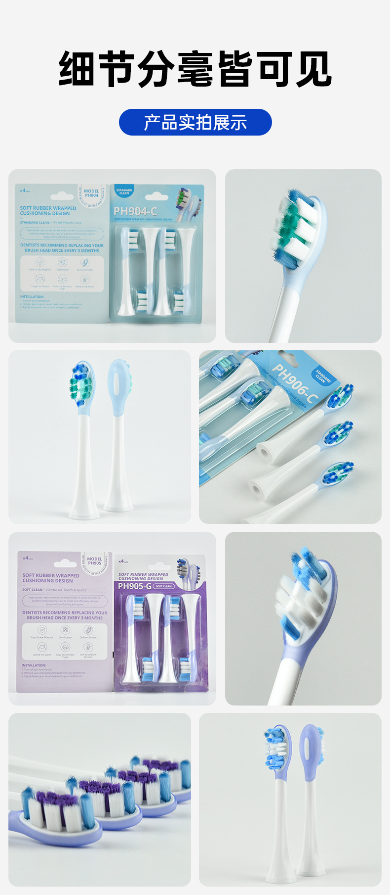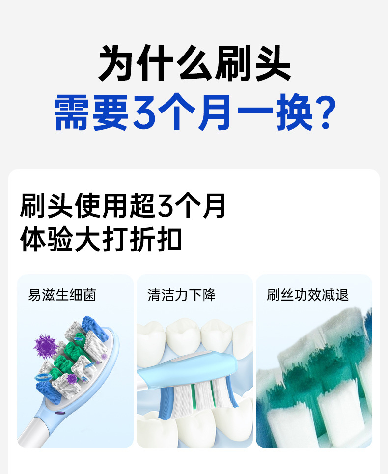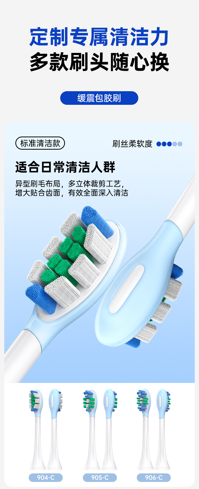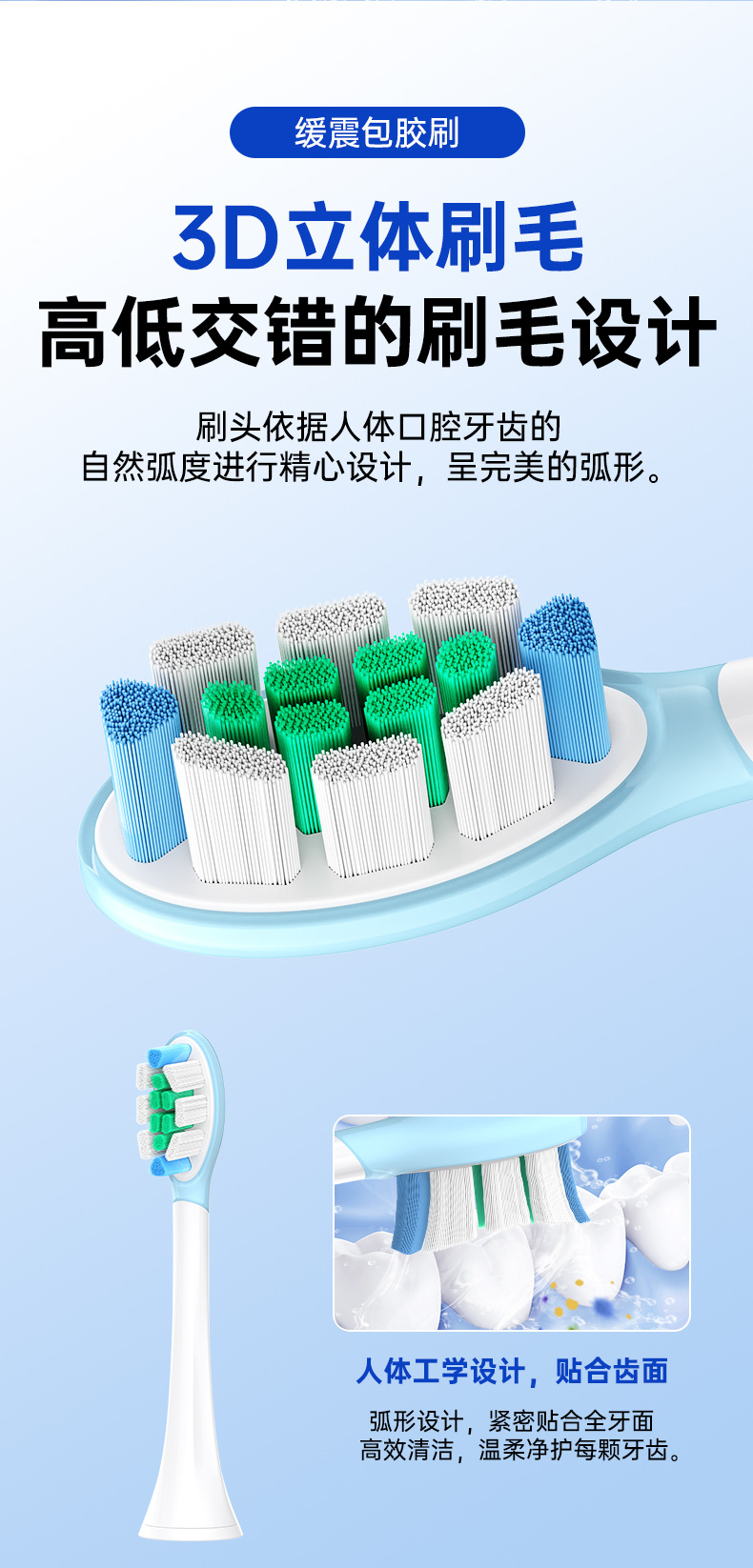 全新缓震包胶成人多效清洁刷适用于飞利蒲HX3/6/9声波电动牙刷头