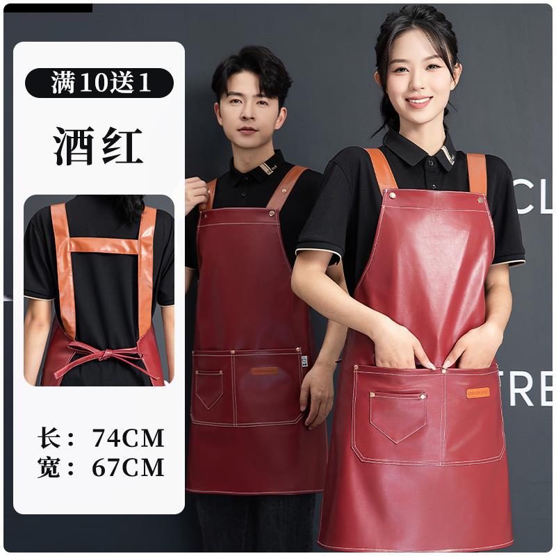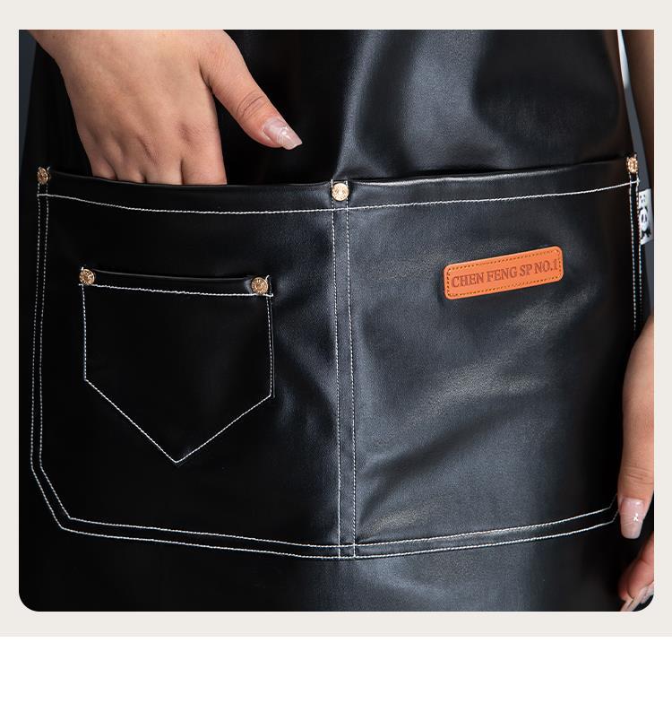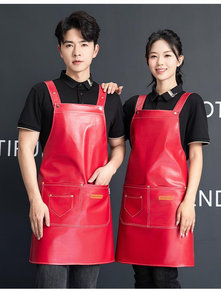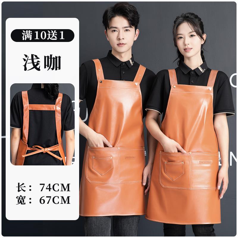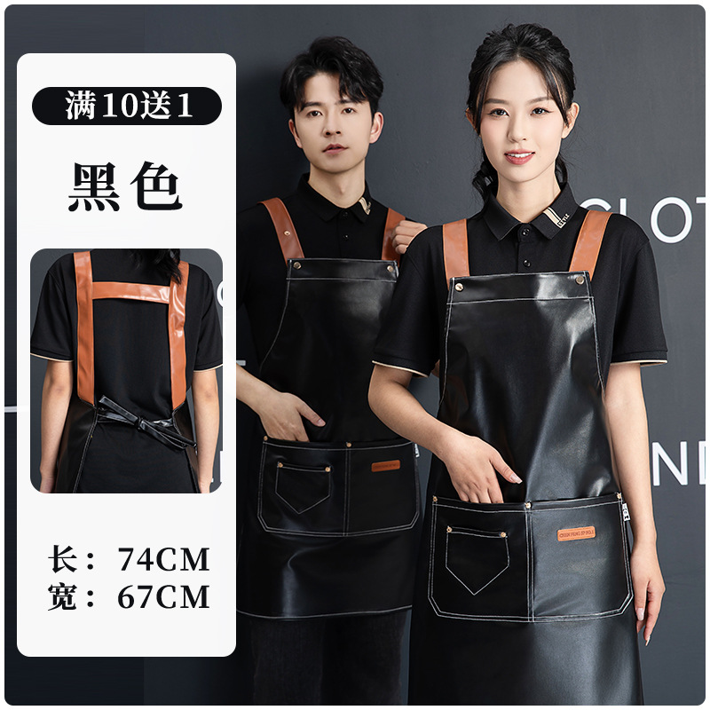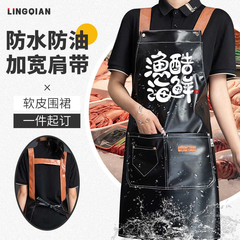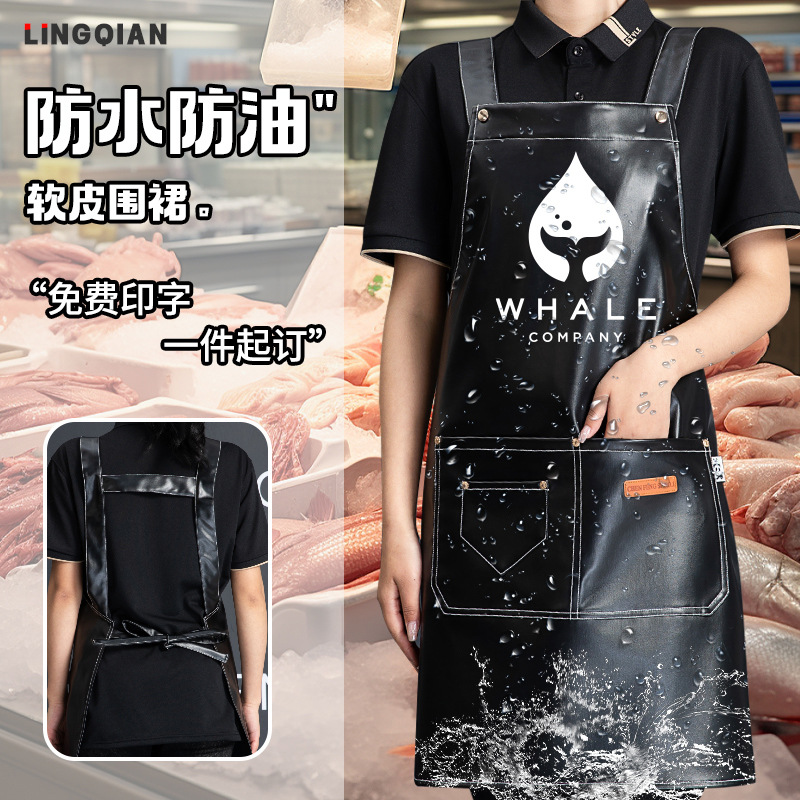 PU软皮围裙印logo餐饮专用防水防油厨房水产皮革围腰工作服男跨境