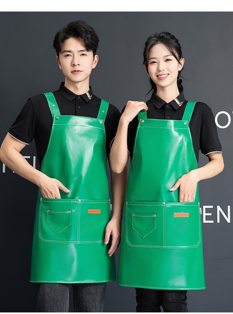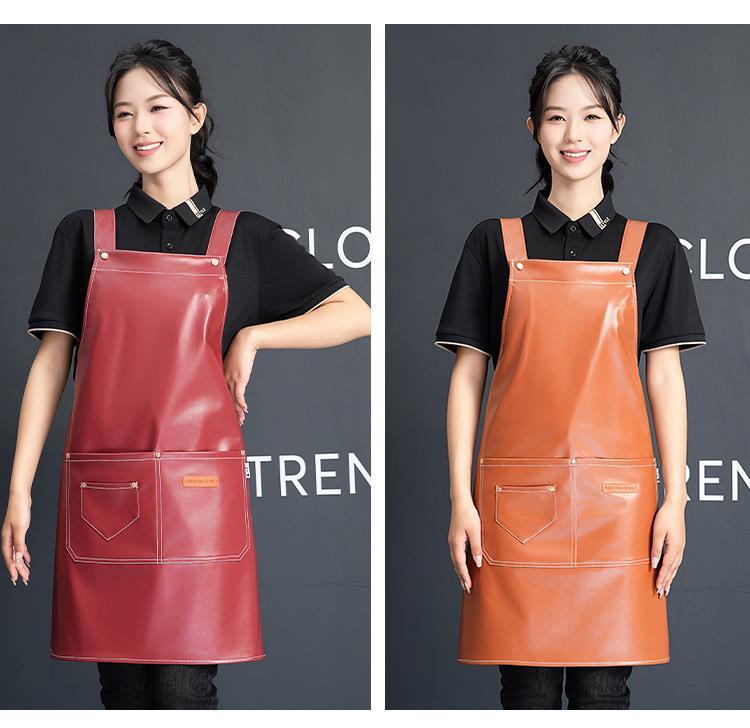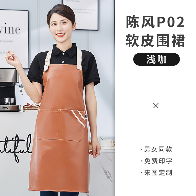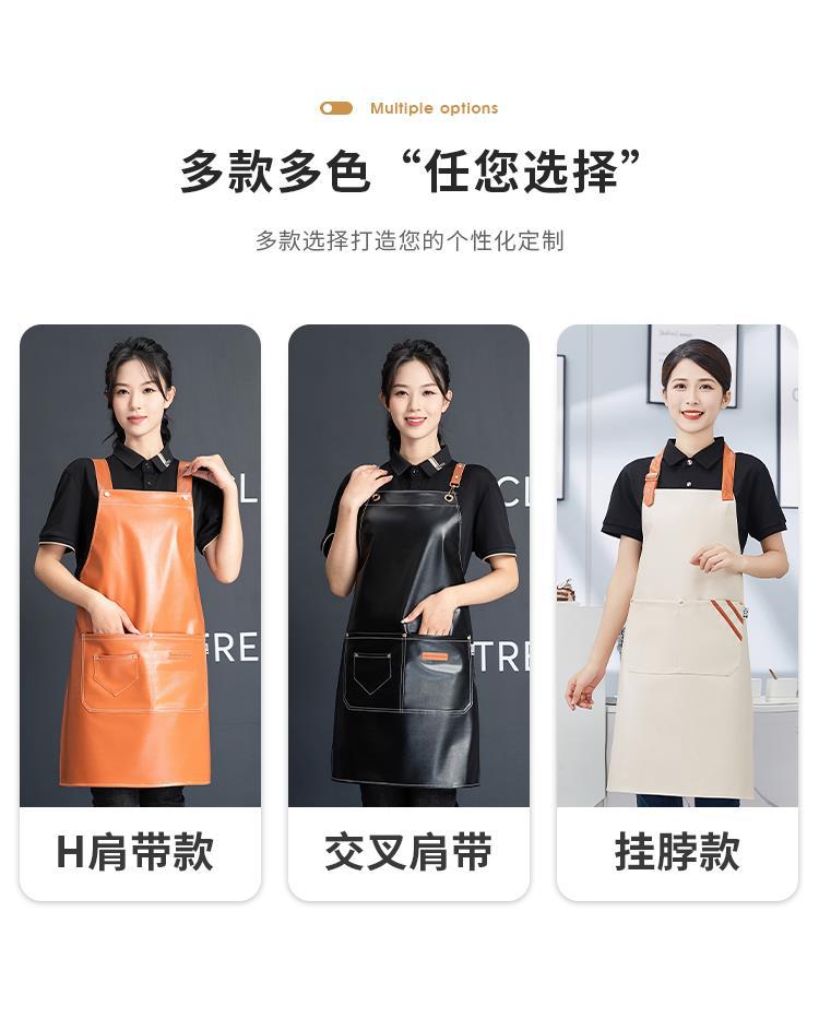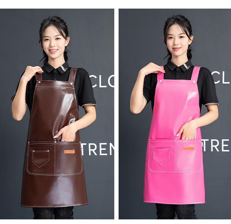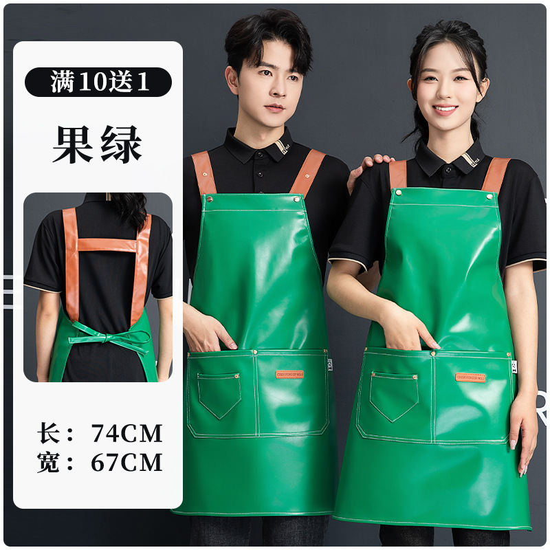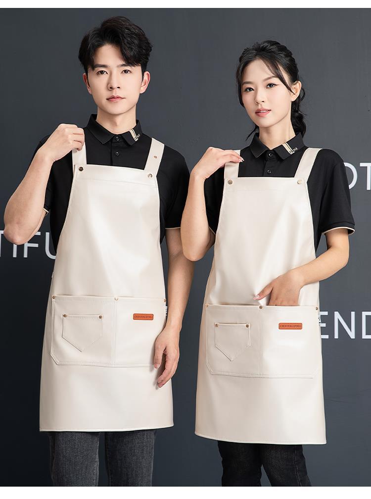 PU软皮围裙印logo餐饮专用防水防油厨房水产皮革围腰工作服男跨境