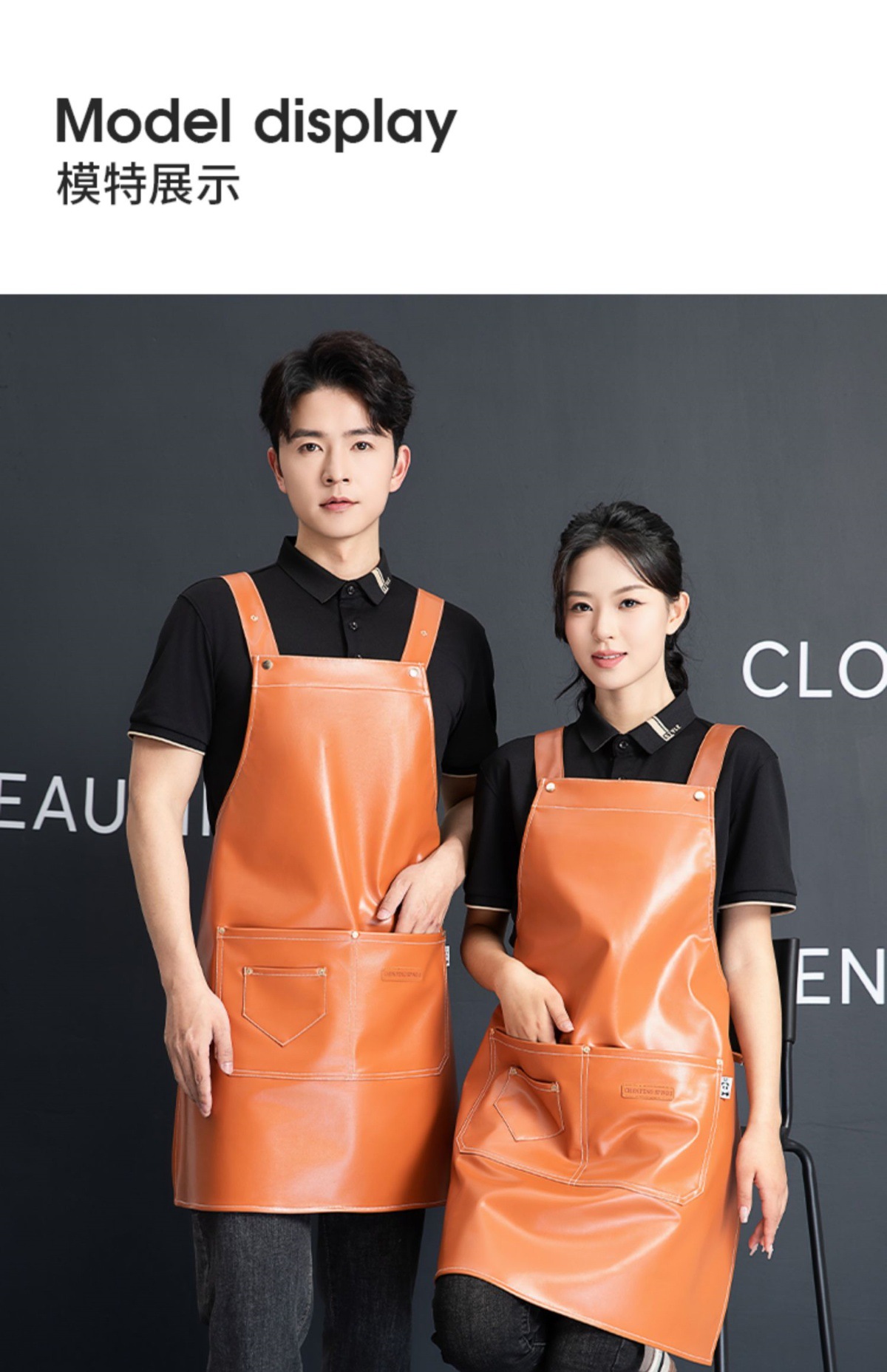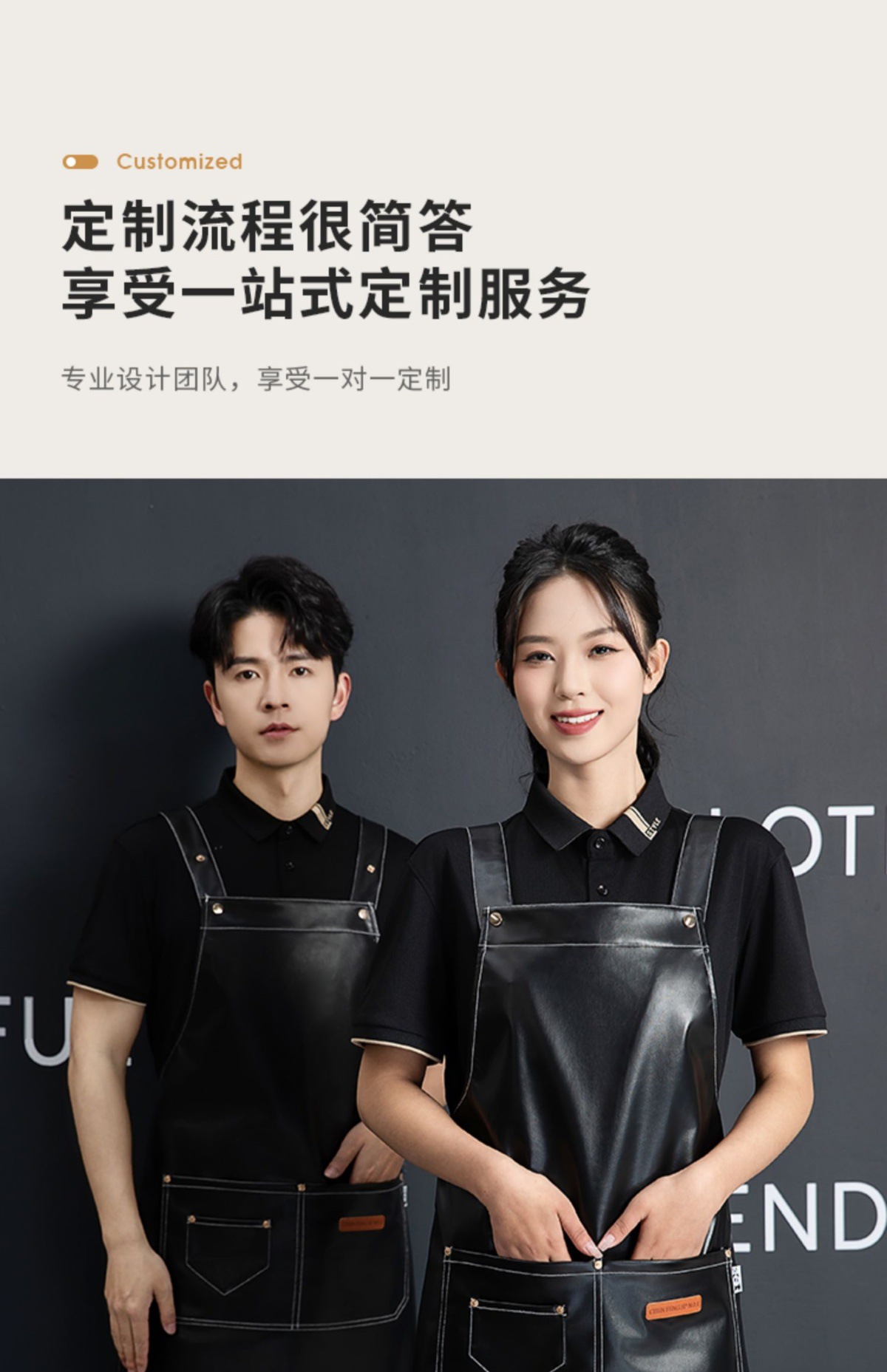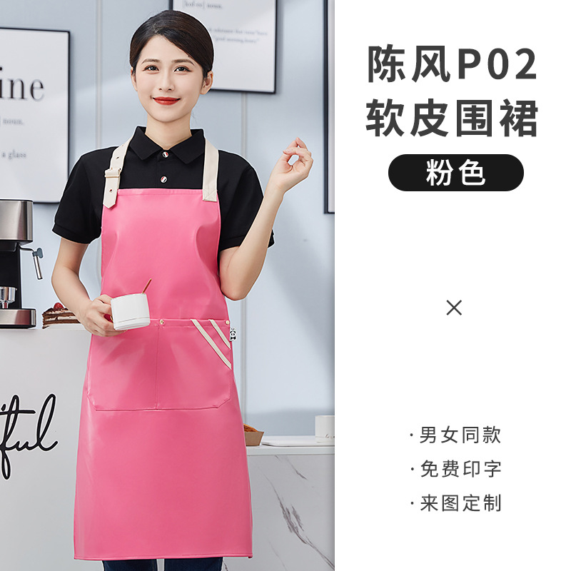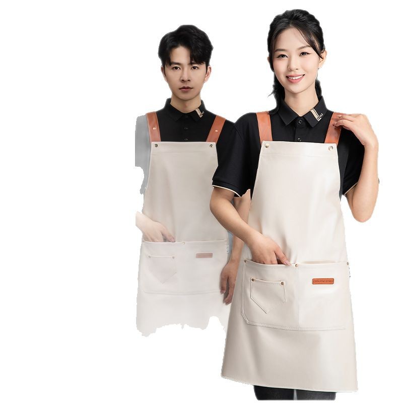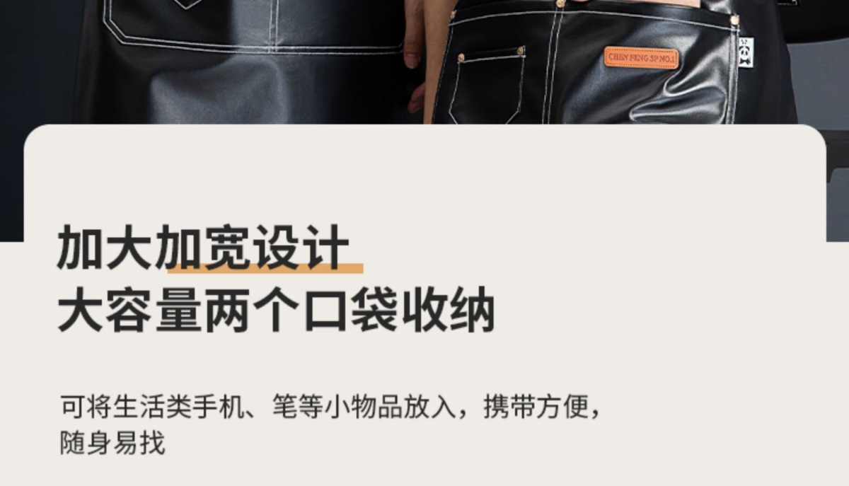PU软皮围裙印logo餐饮专用防水防油厨房水产皮革围腰工作服男跨境