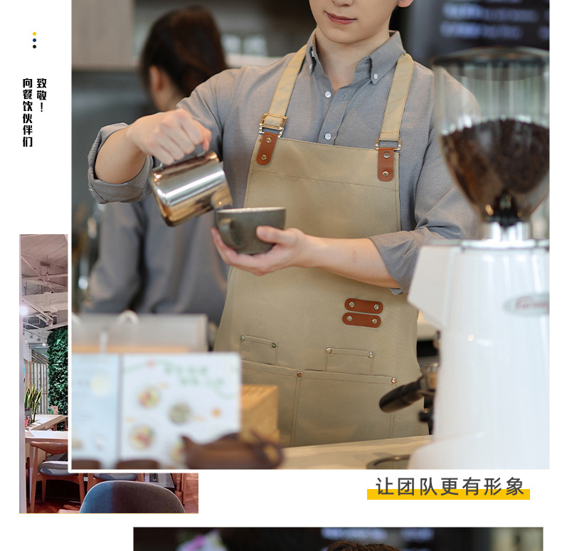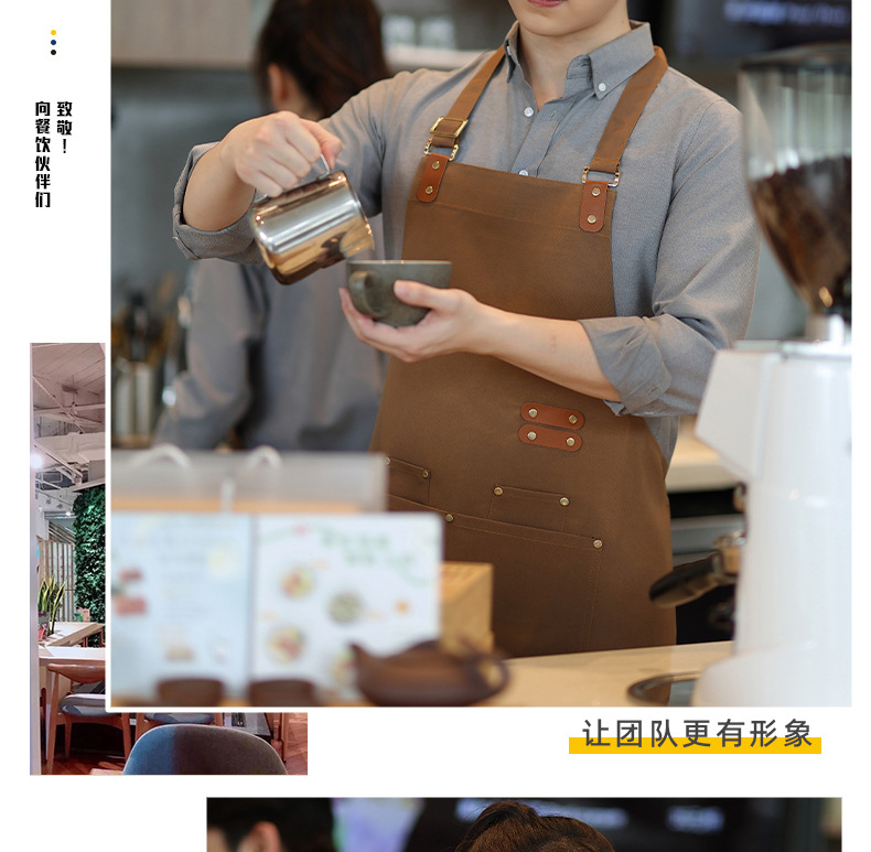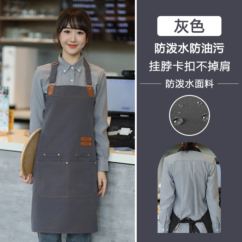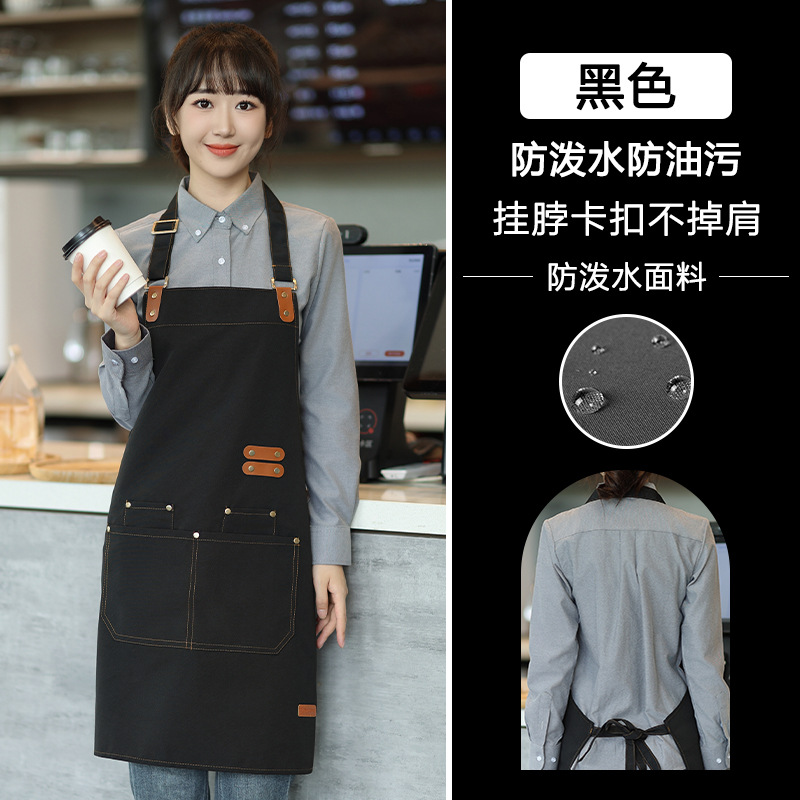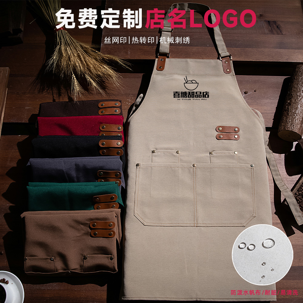 批发帆布围裙定制防水防油餐饮专用现货印字logo刺绣跨境亚马逊女