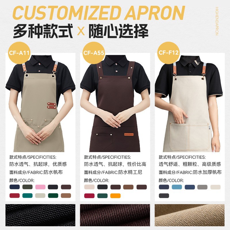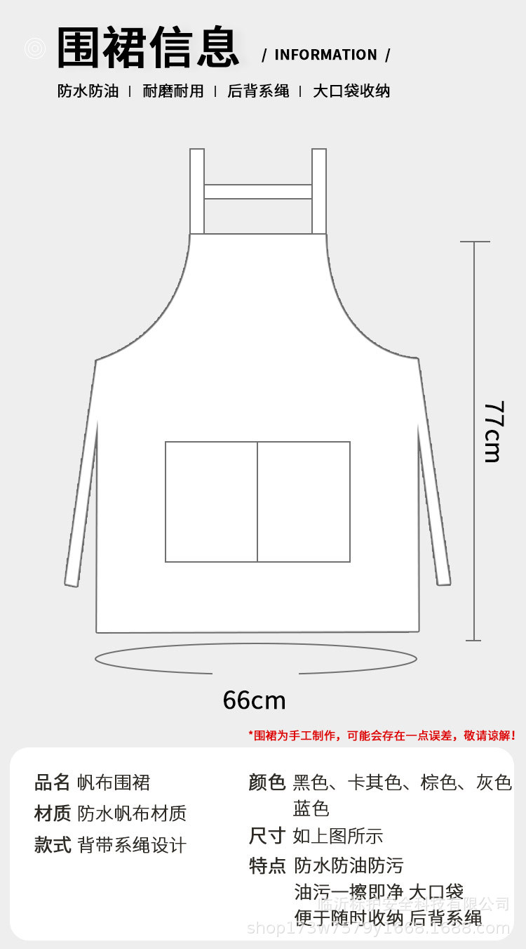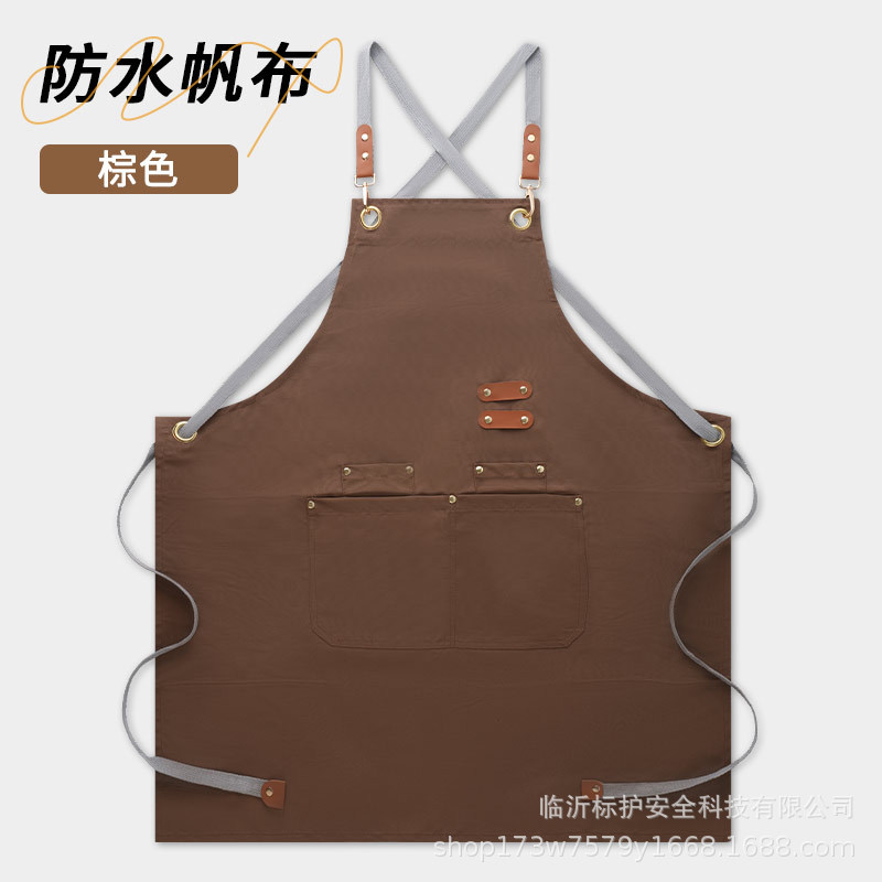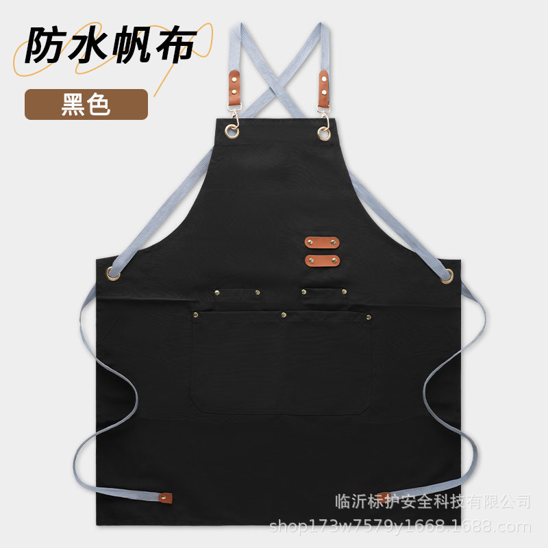 加厚帆布围裙餐饮专用咖啡奶茶服务员防水防油工作服画画美术烘焙