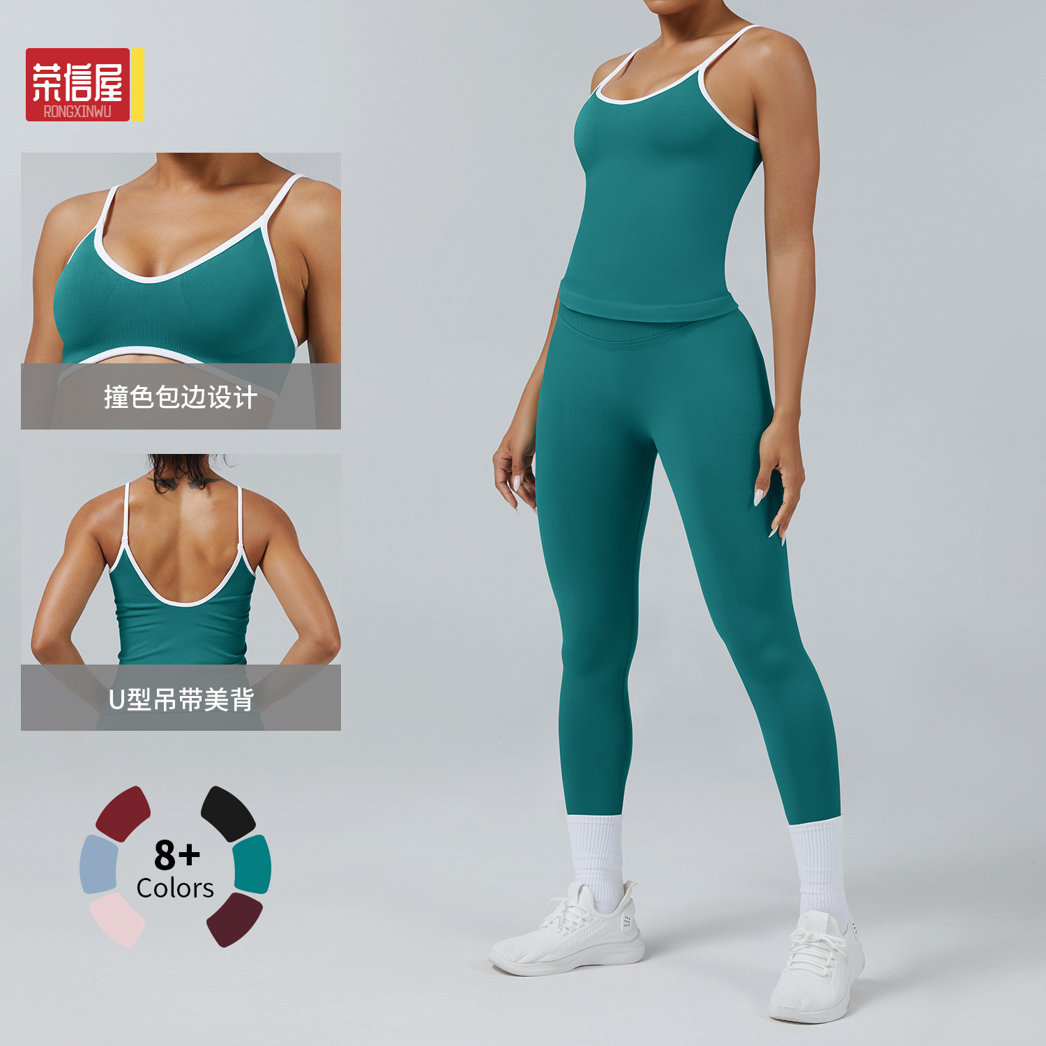 跨境欧美无缝美背瑜伽服女套装跑步速干瑜伽套装运动健身服套装