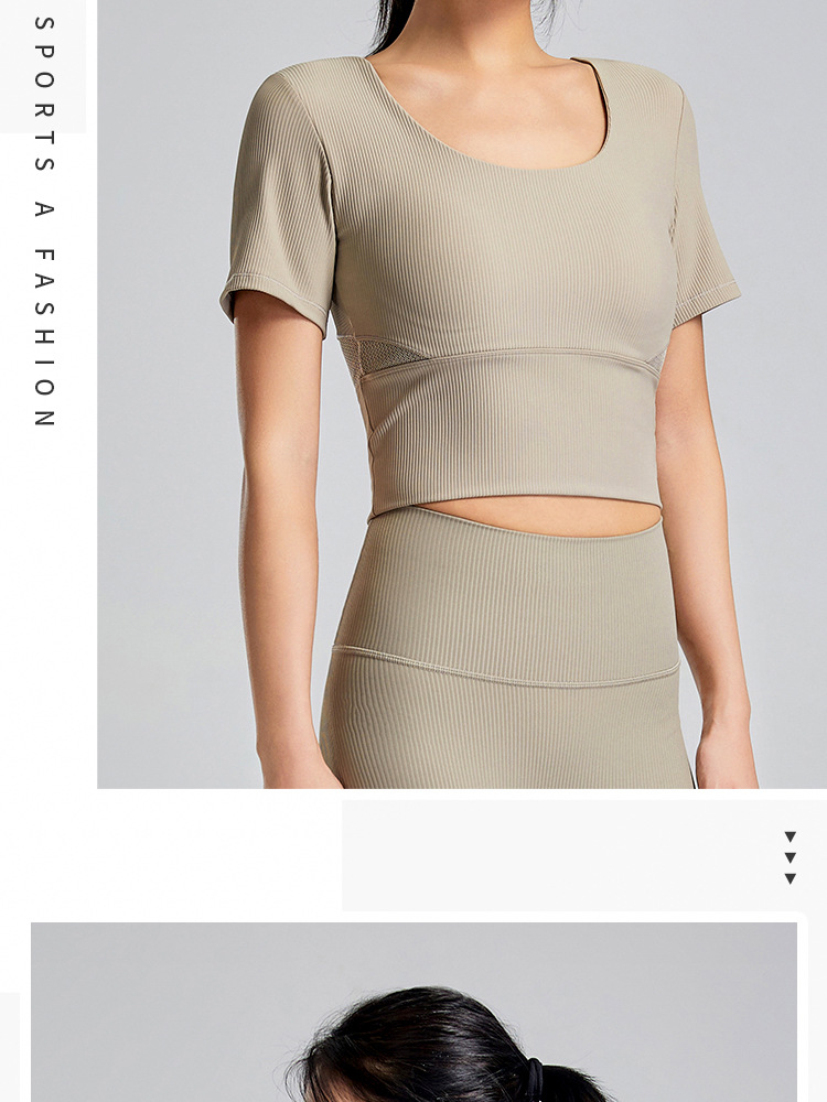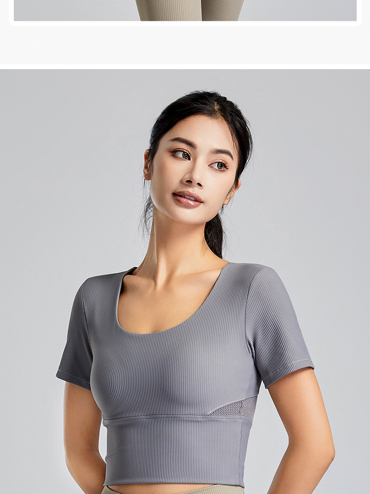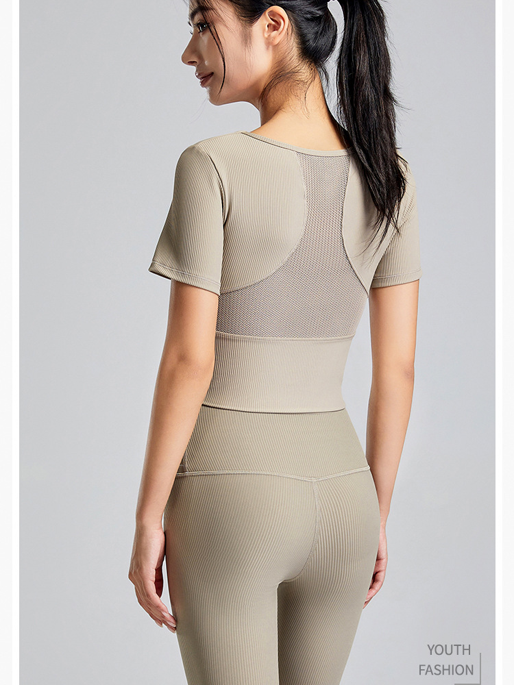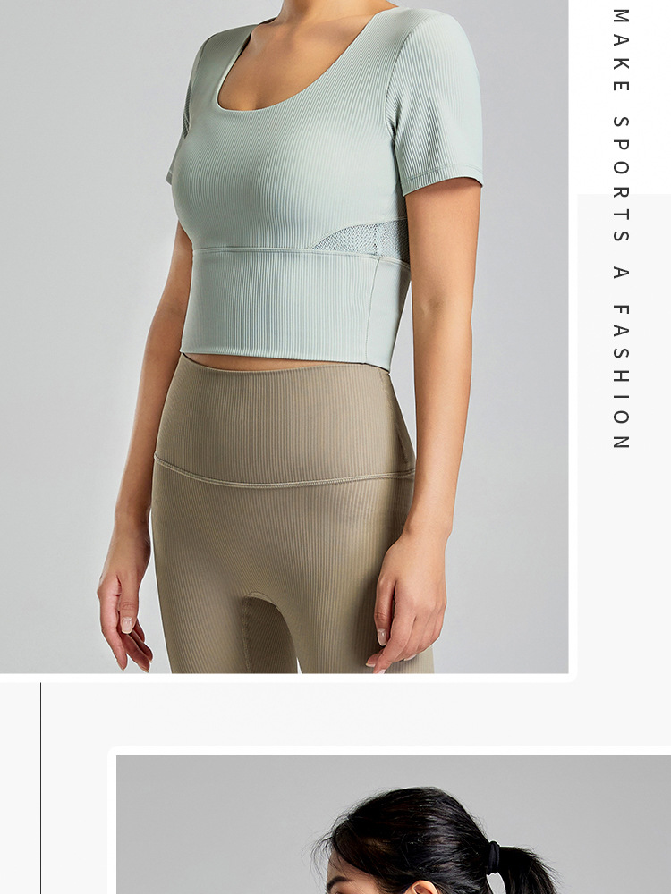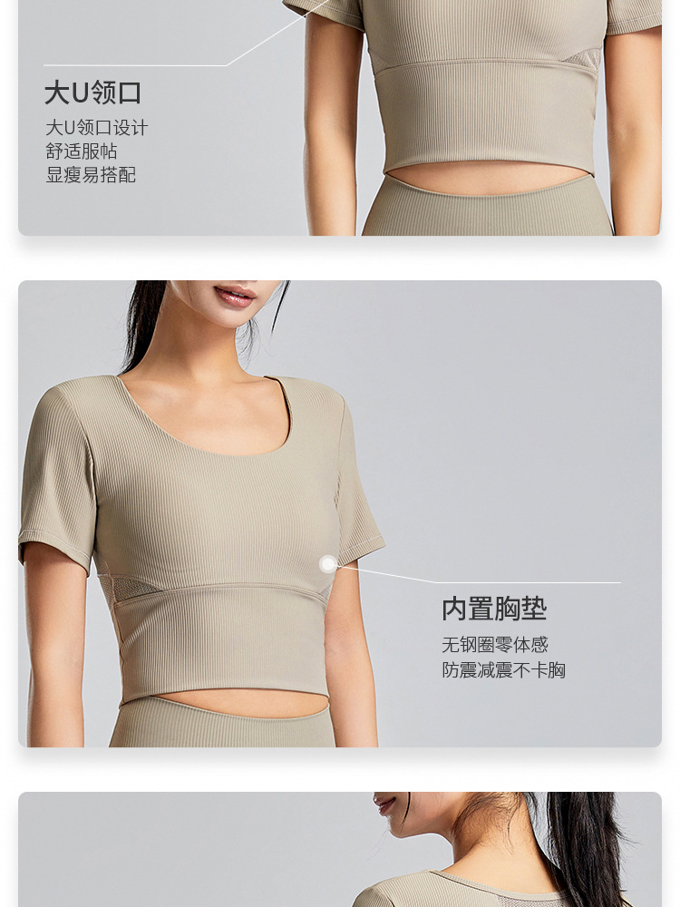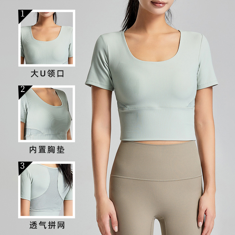 带胸垫瑜伽服女夏季普拉提训练健身上衣套装高级感运动短袖t恤