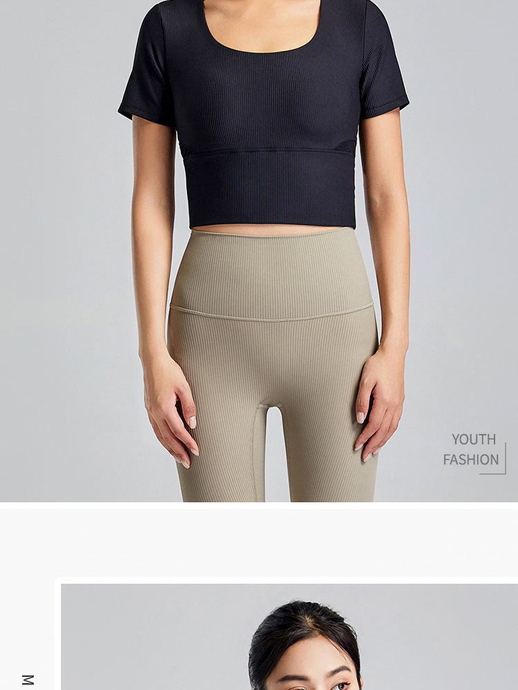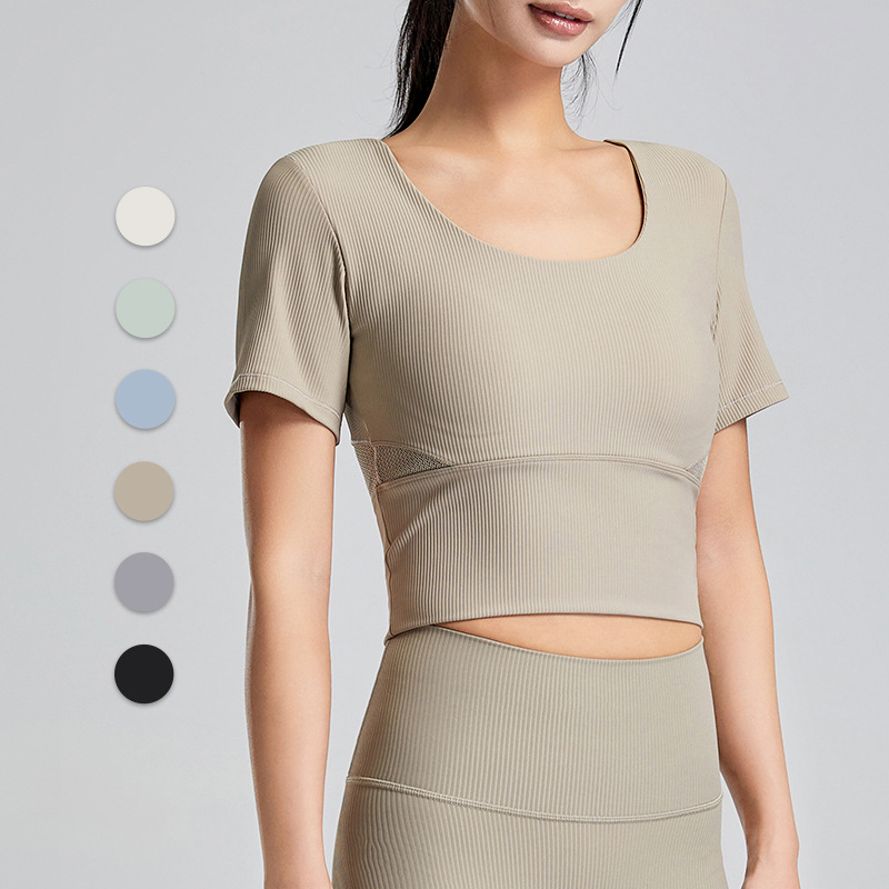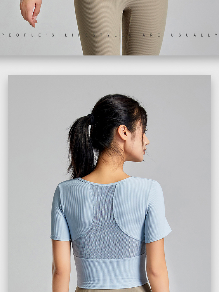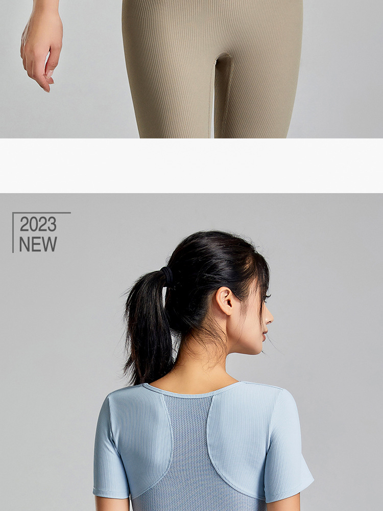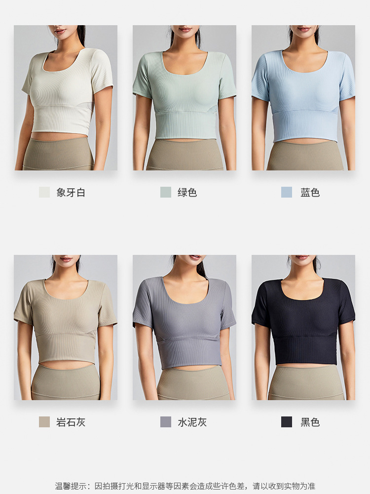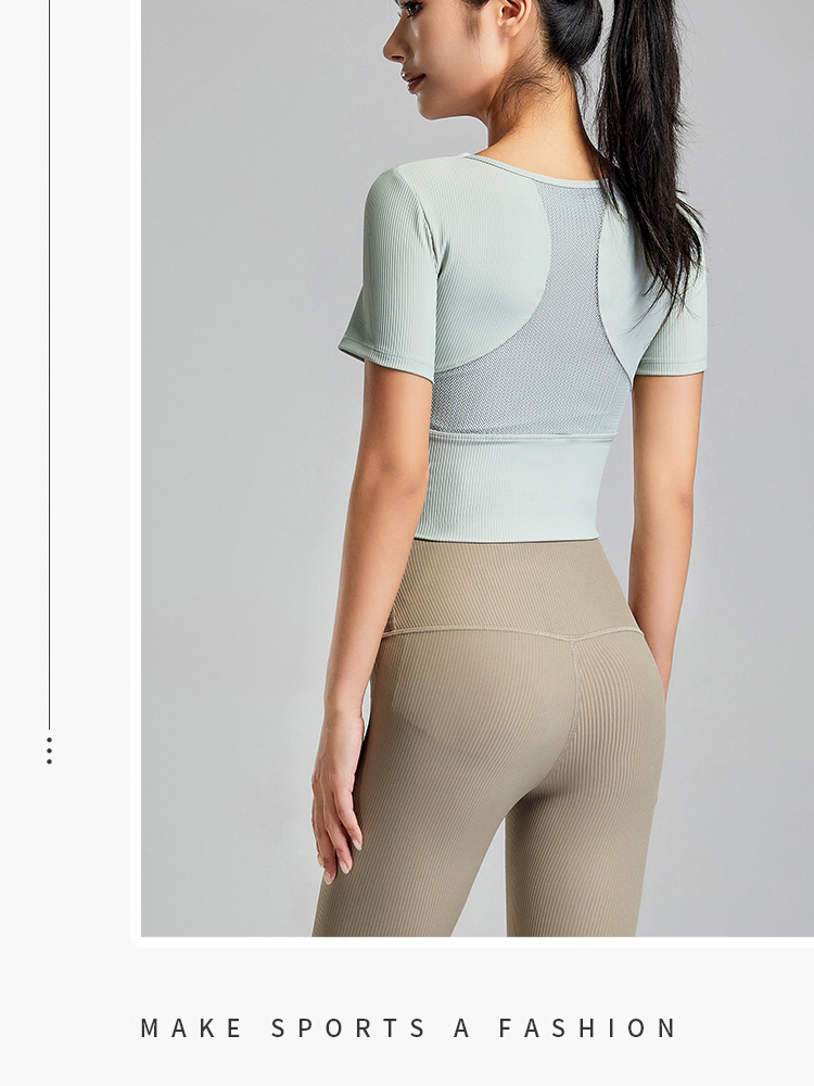 带胸垫瑜伽服女夏季普拉提训练健身上衣套装高级感运动短袖t恤