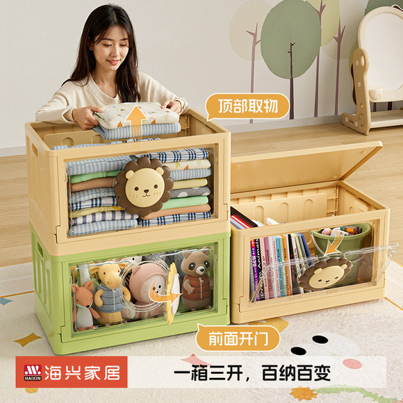 家用客厅毛绒玩具收纳筐折叠带轮翻盖整理箱超大号儿童玩具收纳箱