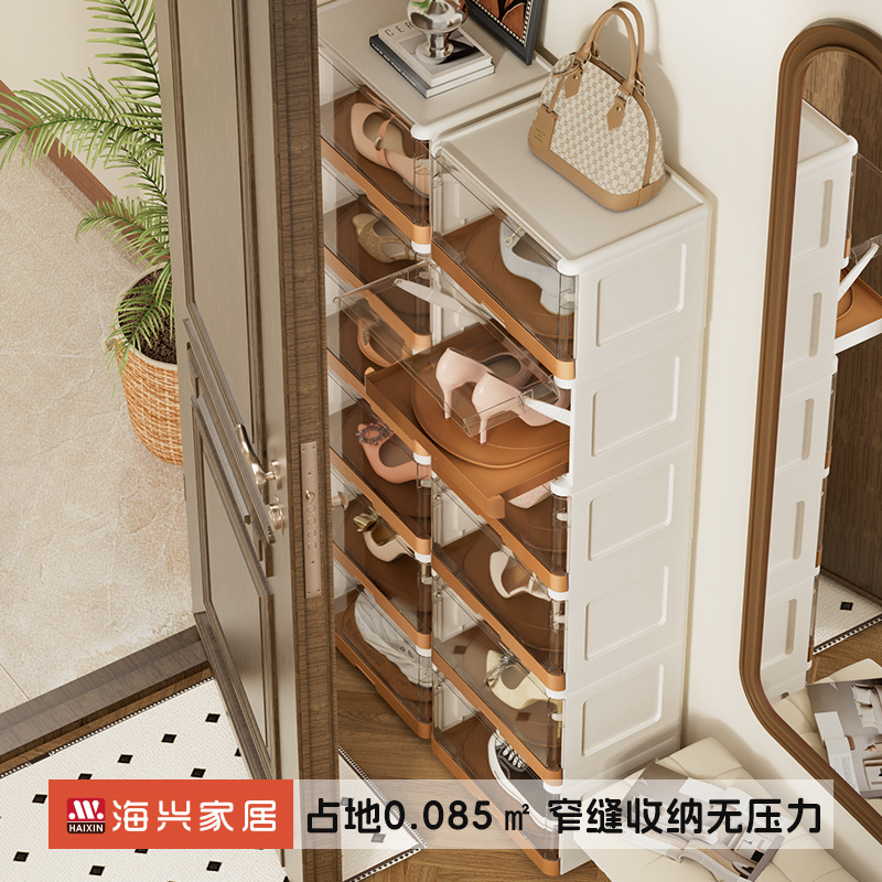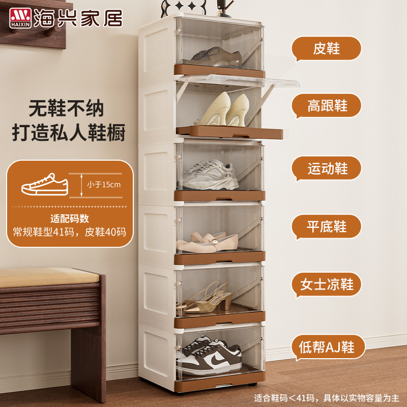 海兴家用塑料防尘鞋架子门口多层简易鞋架宿舍占地小旋转透明鞋盒