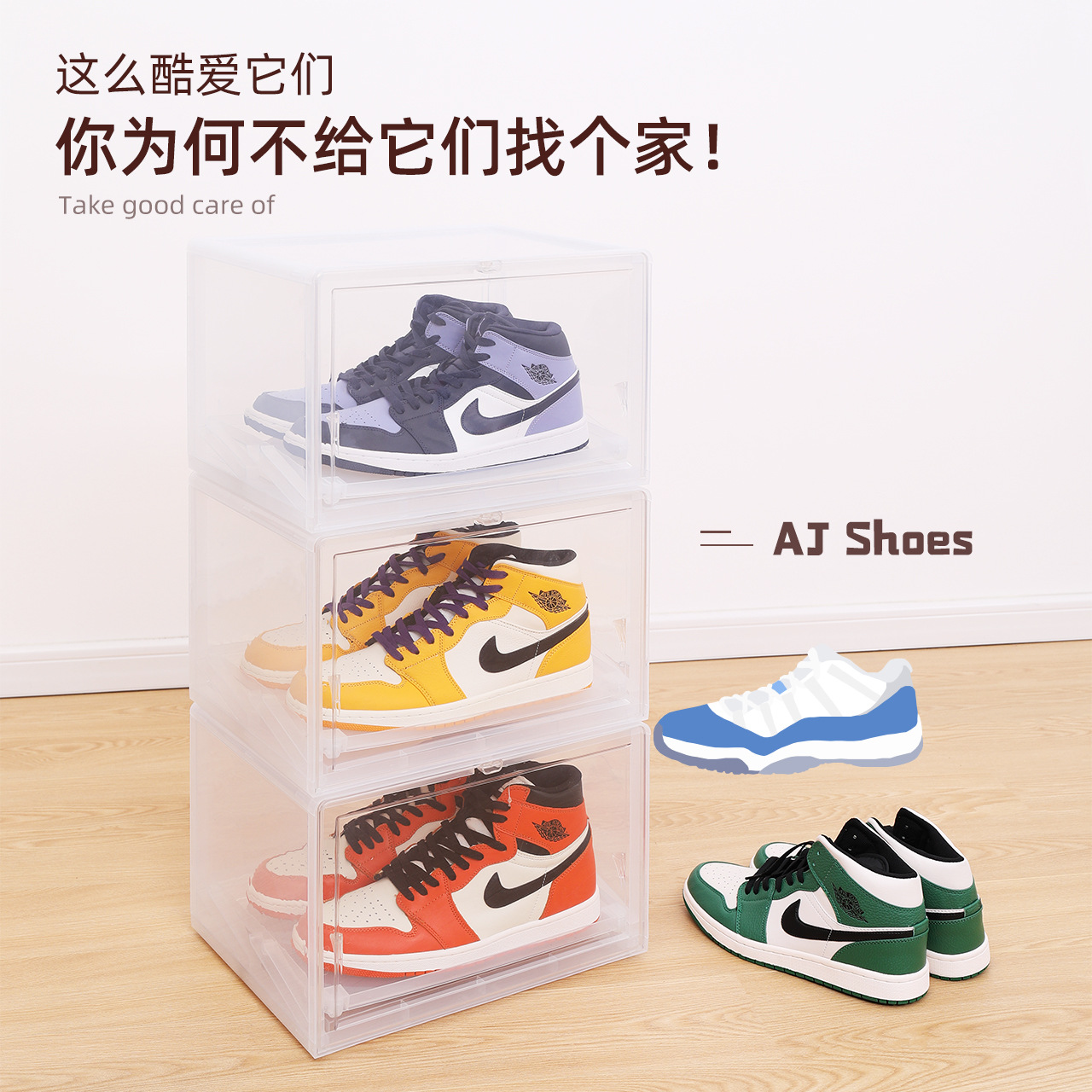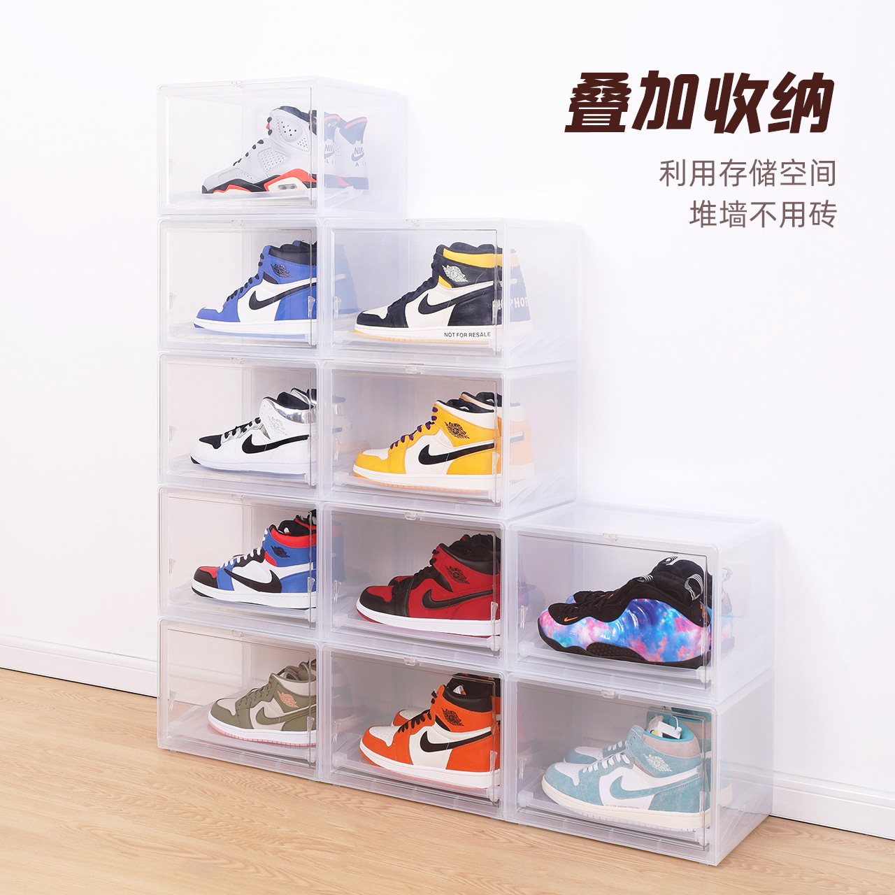 海兴防尘AJ鞋盒叠加透明手办收纳盒靴子篮球鞋墙鞋子收纳盒