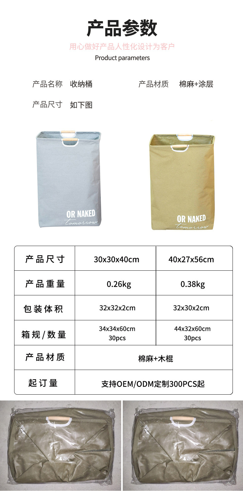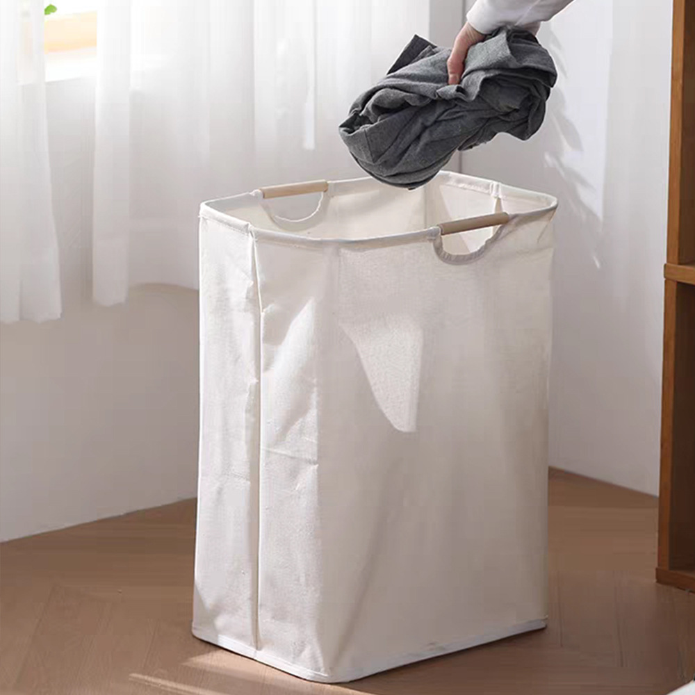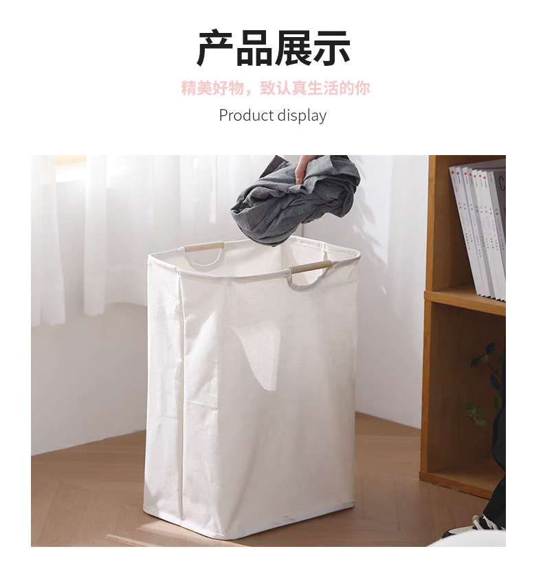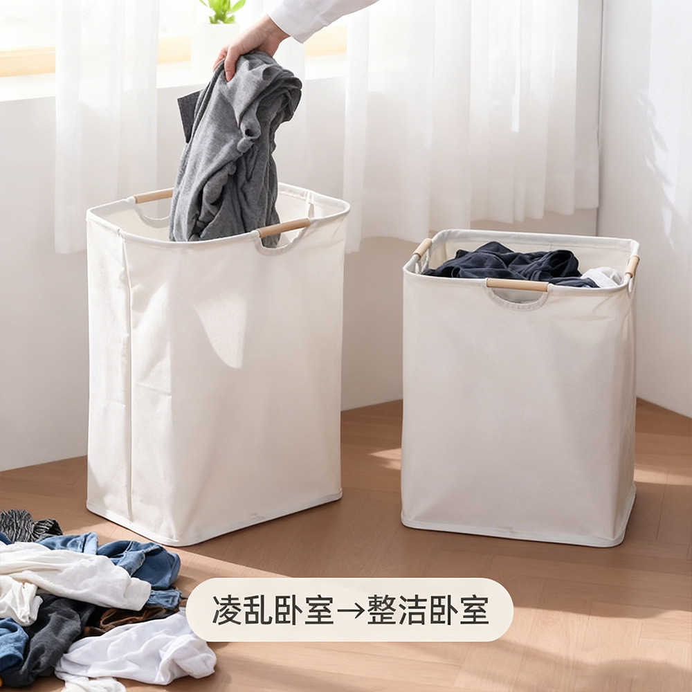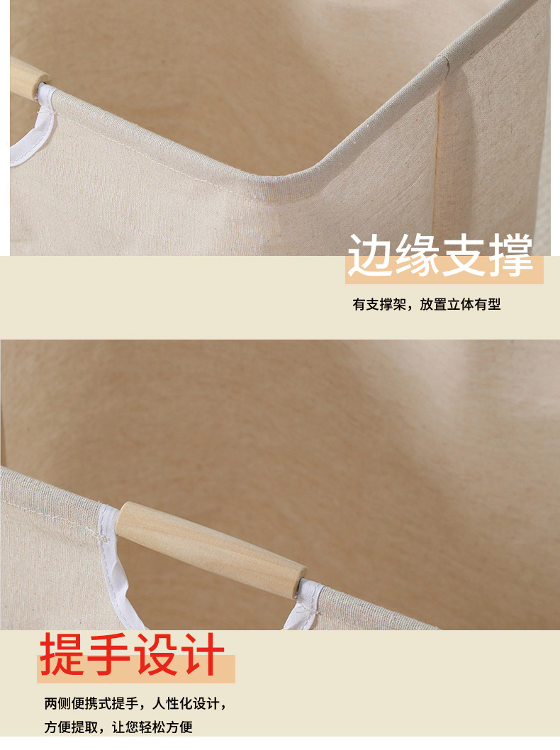 棉麻脏衣篓大容量折叠脏衣篮木把手提浴室脏衣服收纳筐折叠脏衣篓