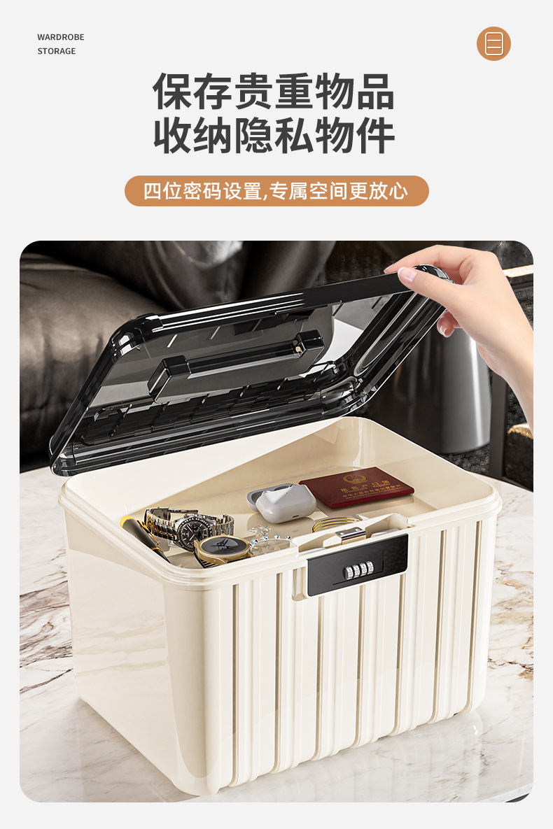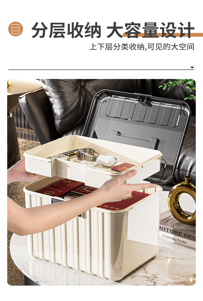 双层密码箱文件证件首饰储物箱加密隐私贵重物品防盗大塑料收纳箱