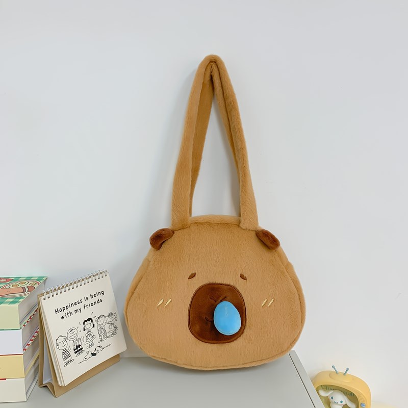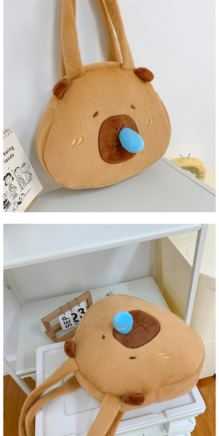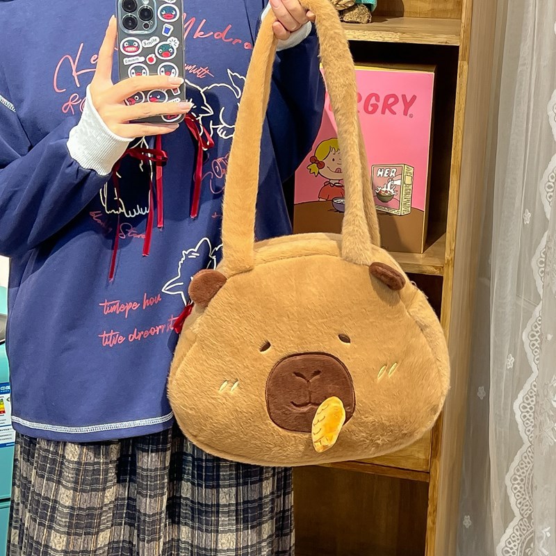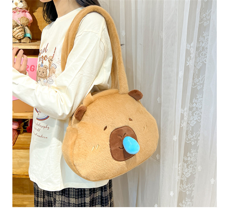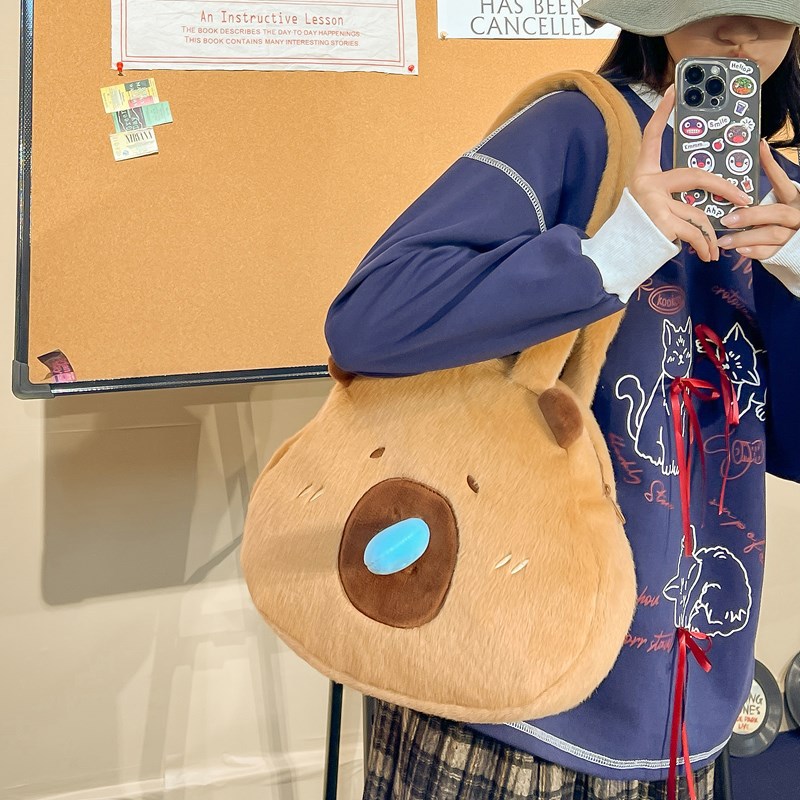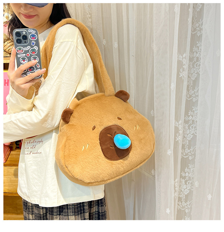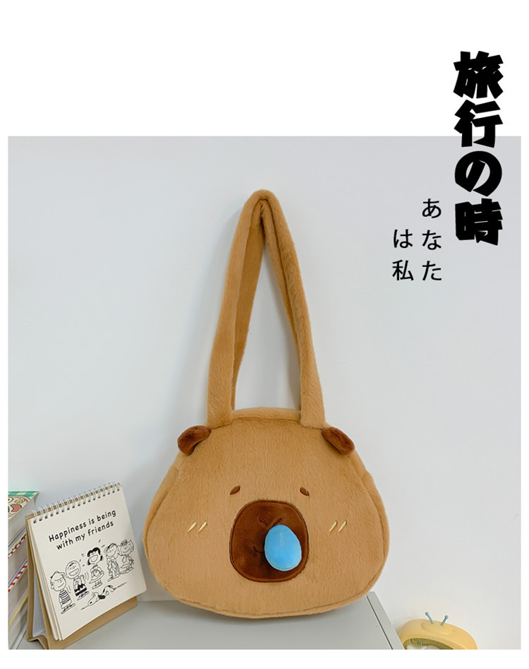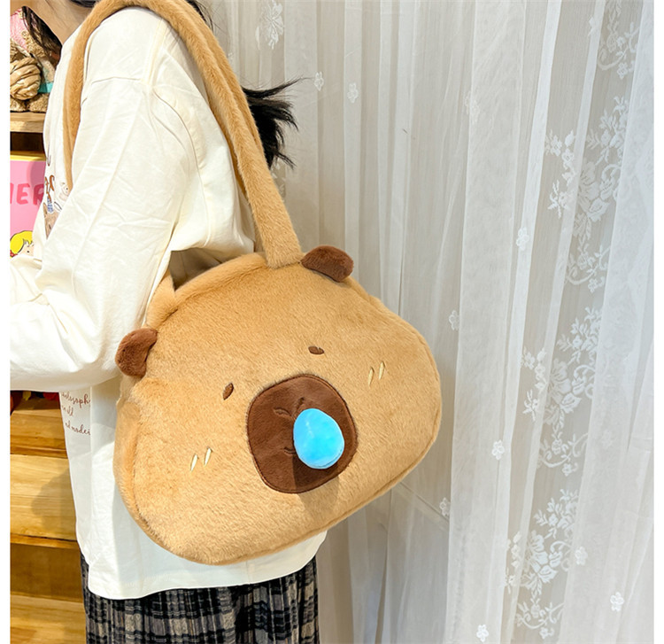 豚豚崽鼻涕可抻拉大容量手提包新款个性卡皮巴拉毛绒单肩包
