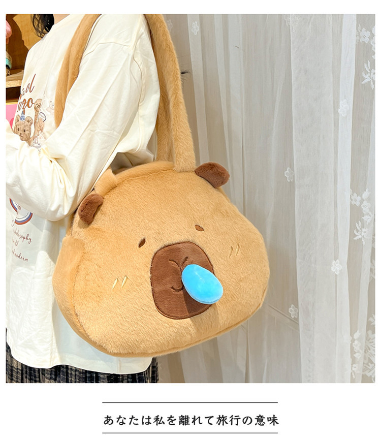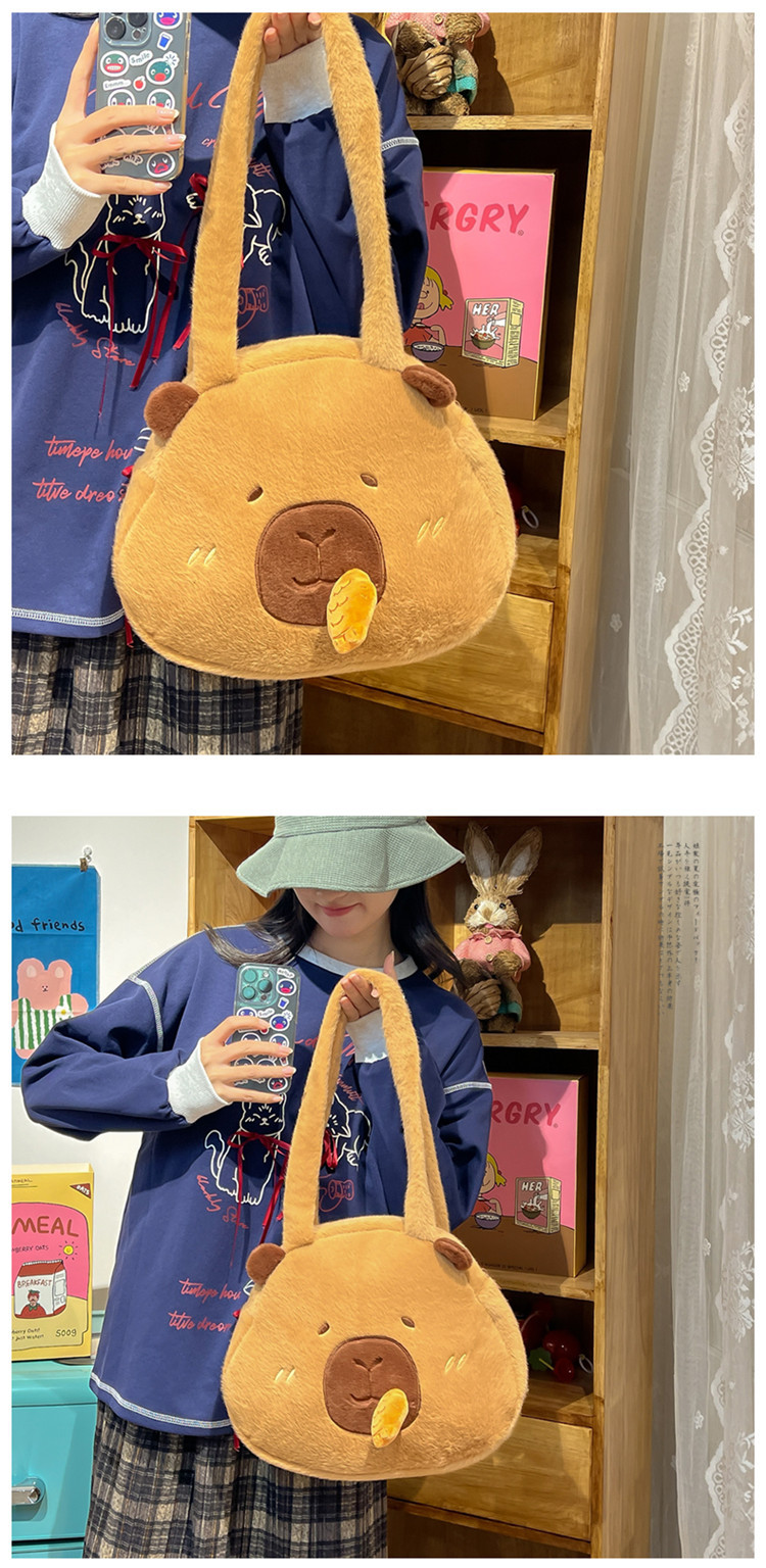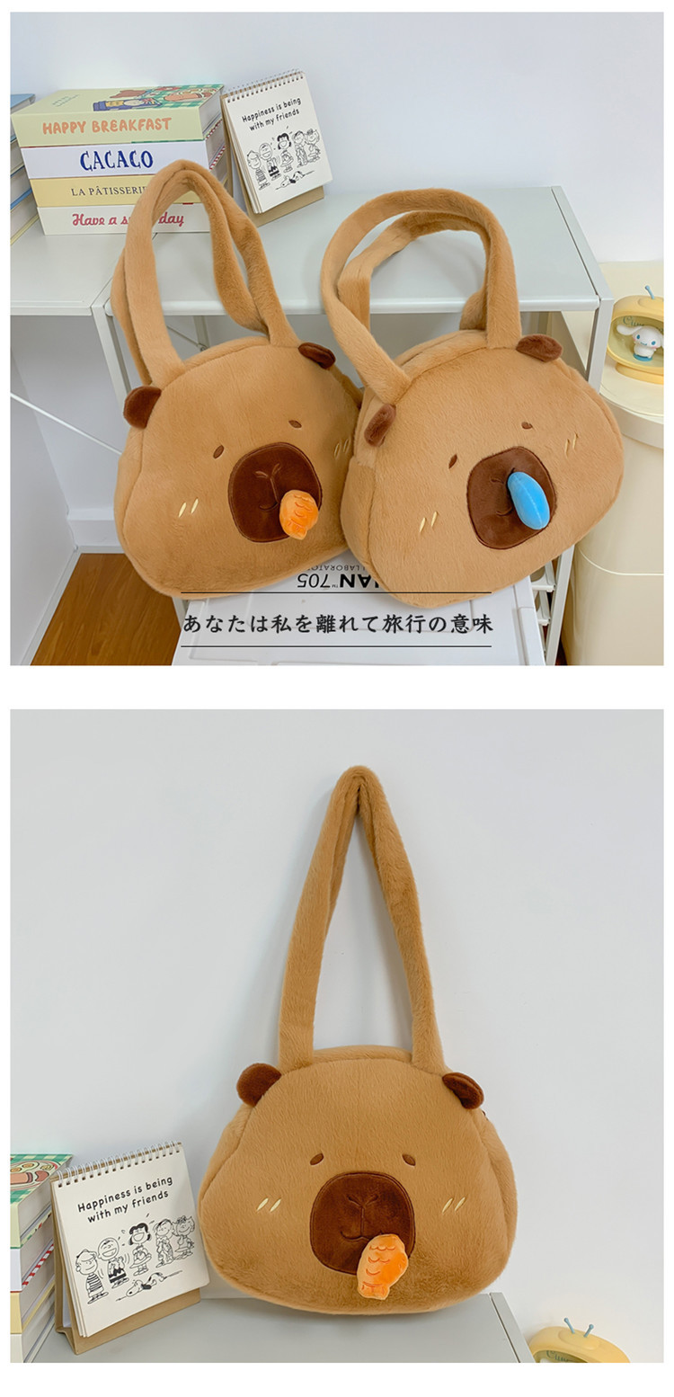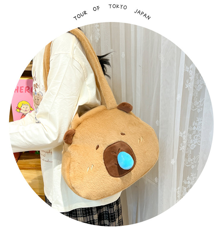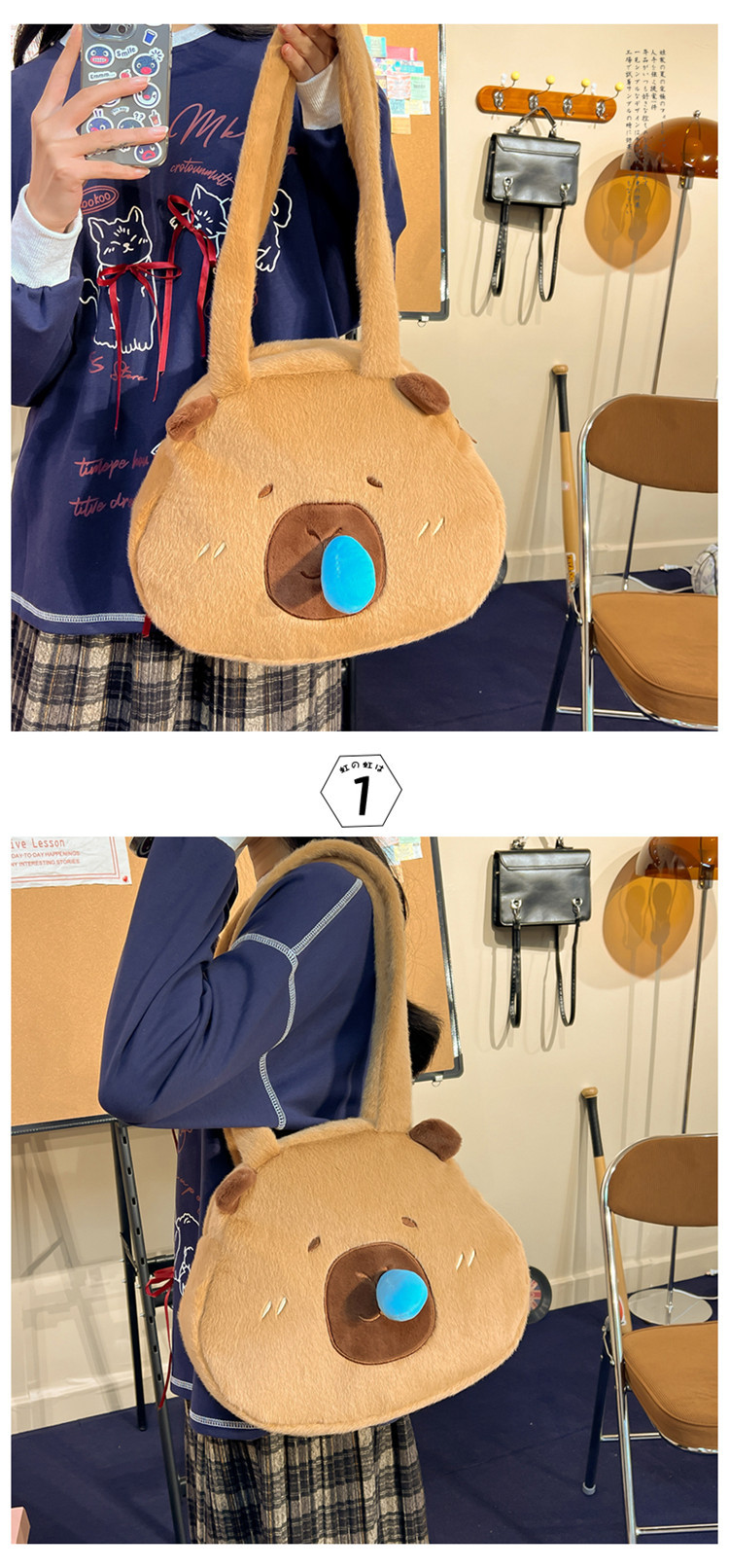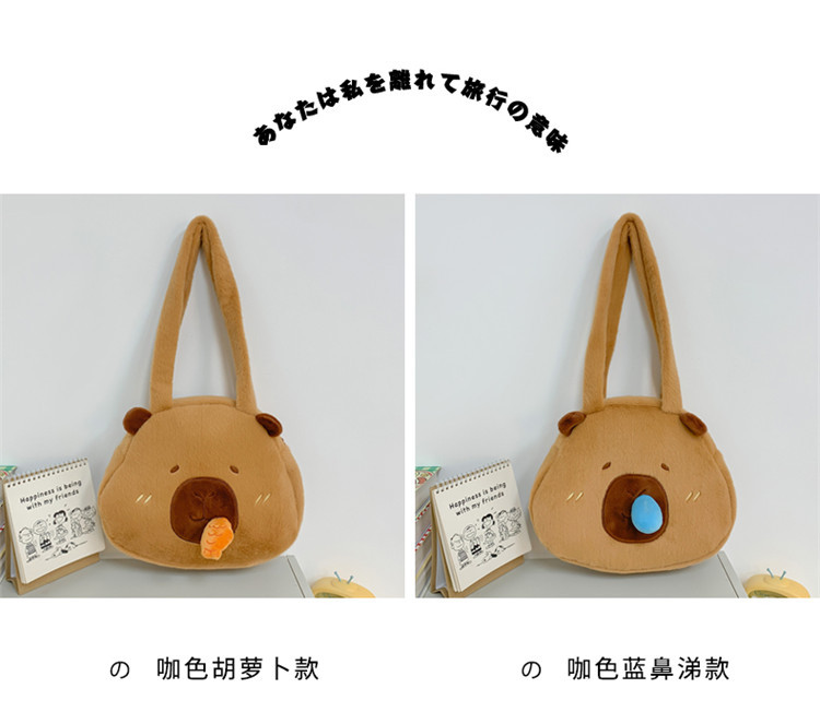 豚豚崽鼻涕可抻拉大容量手提包新款个性卡皮巴拉毛绒单肩包