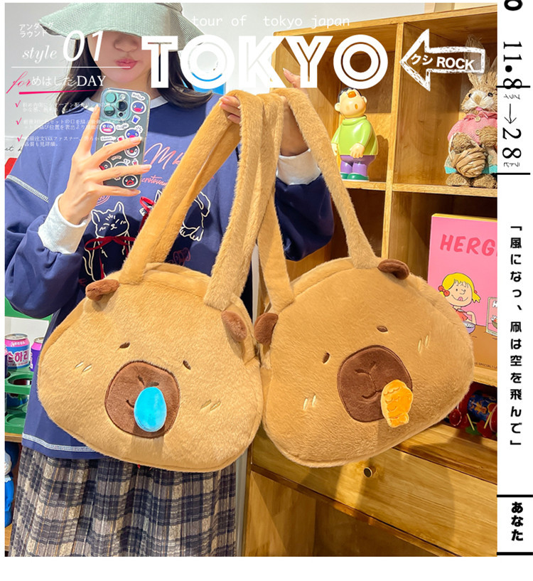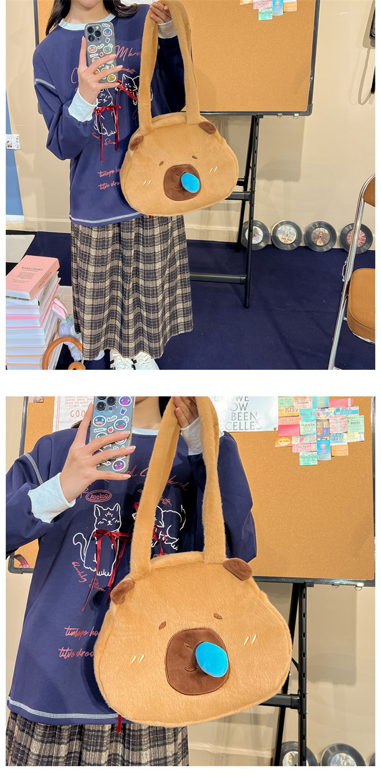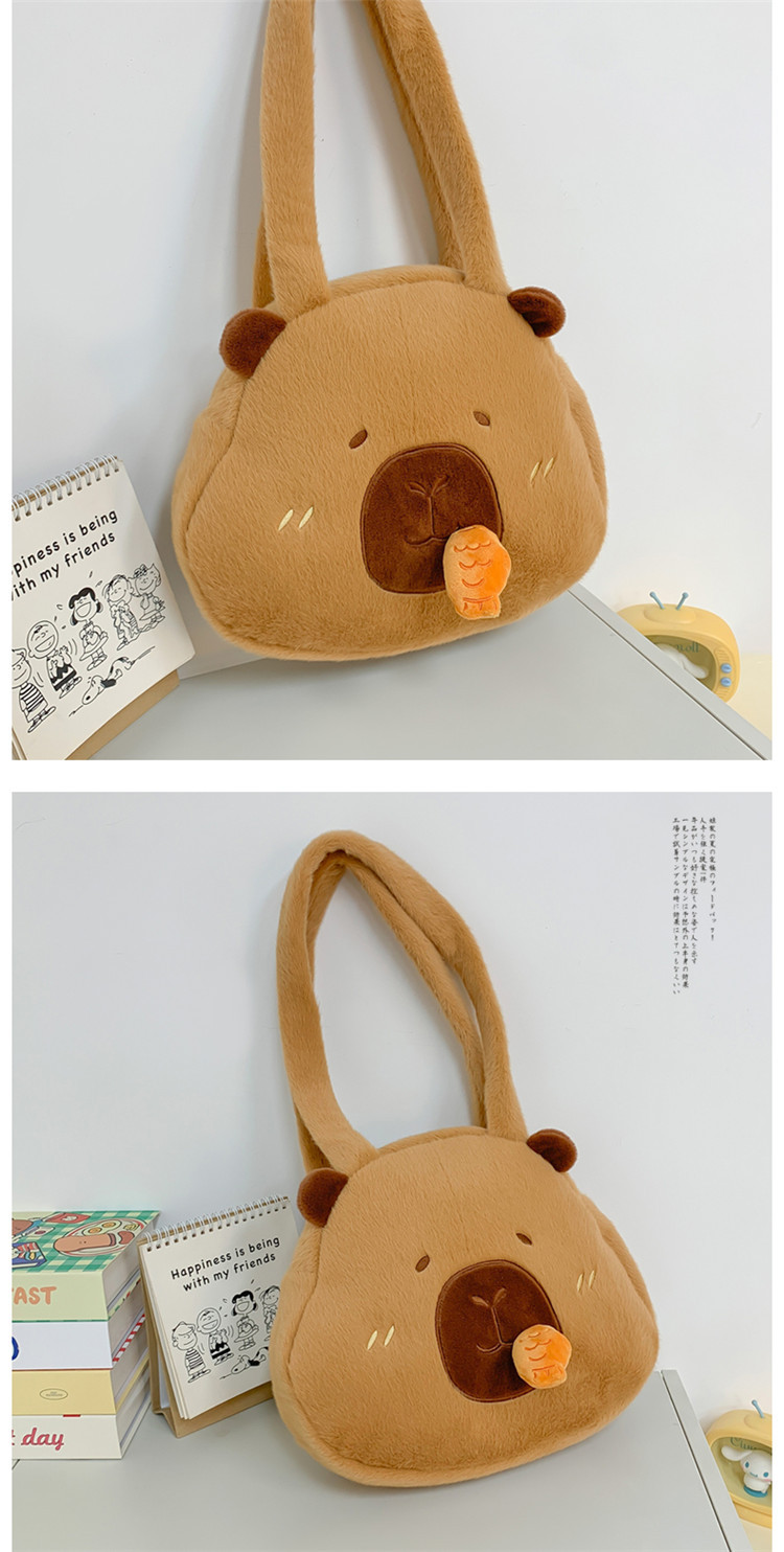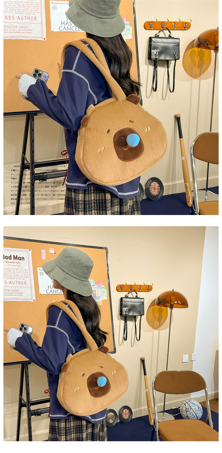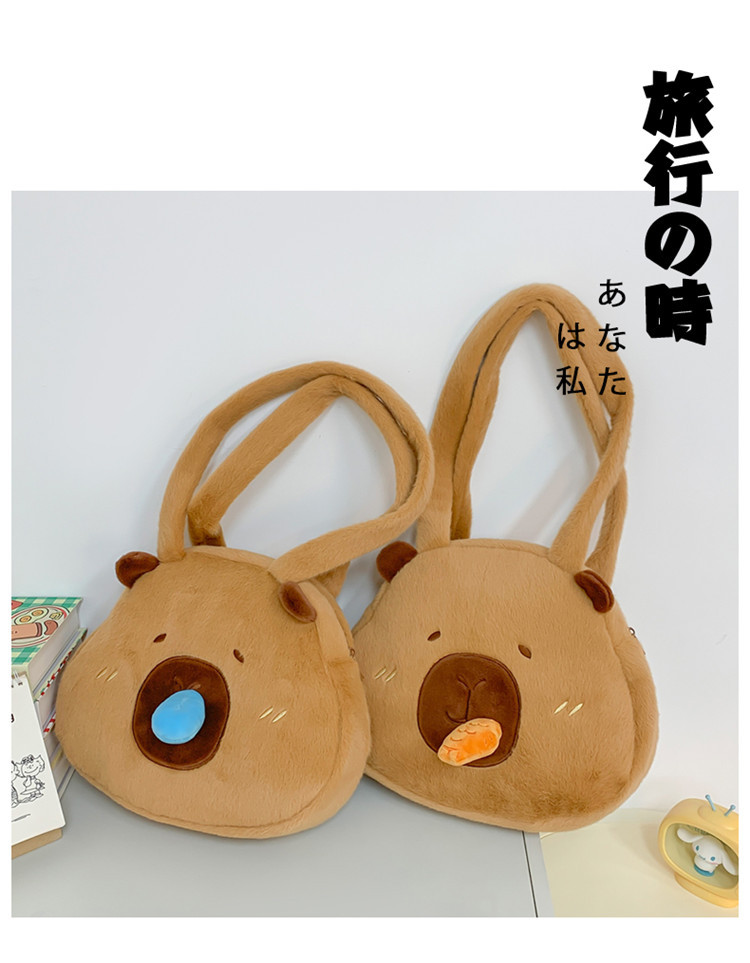 豚豚崽鼻涕可抻拉大容量手提包新款个性卡皮巴拉毛绒单肩包