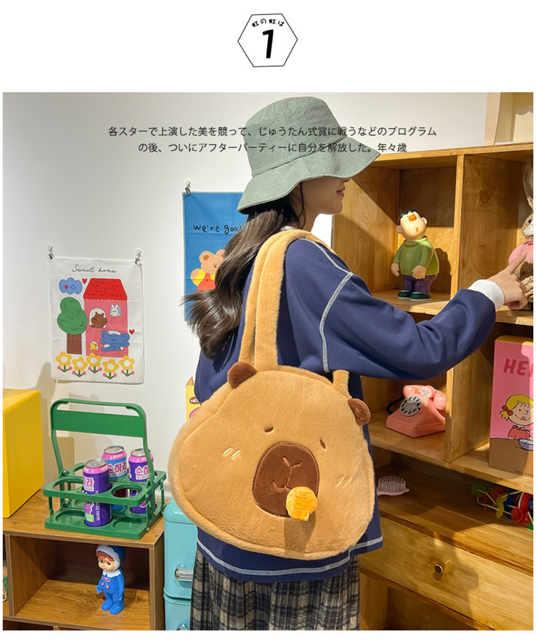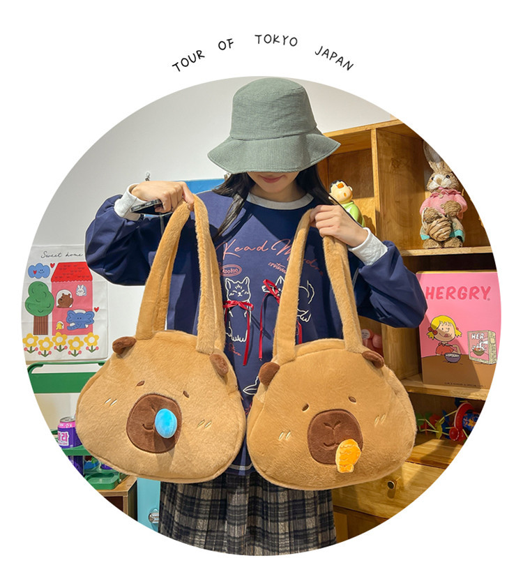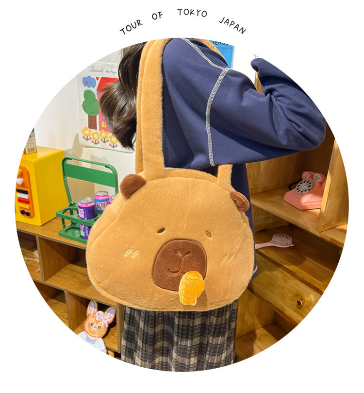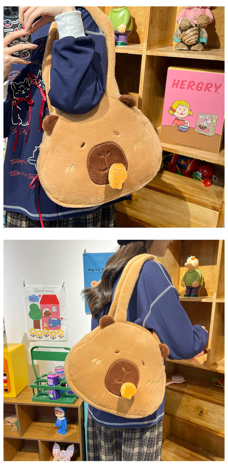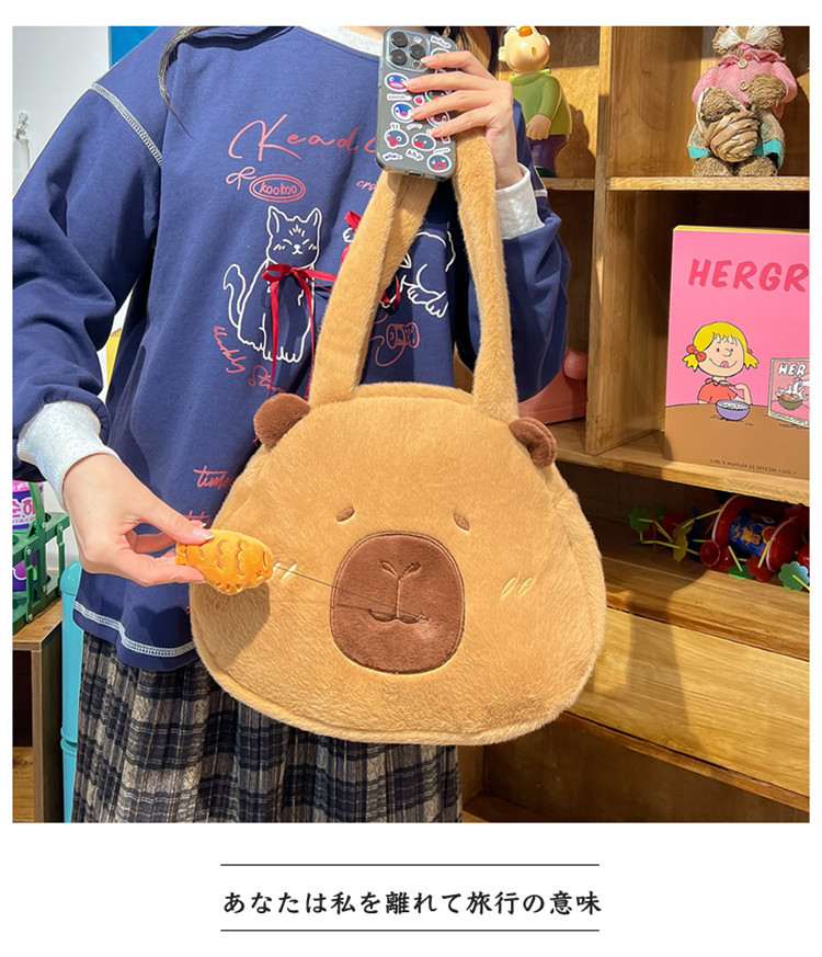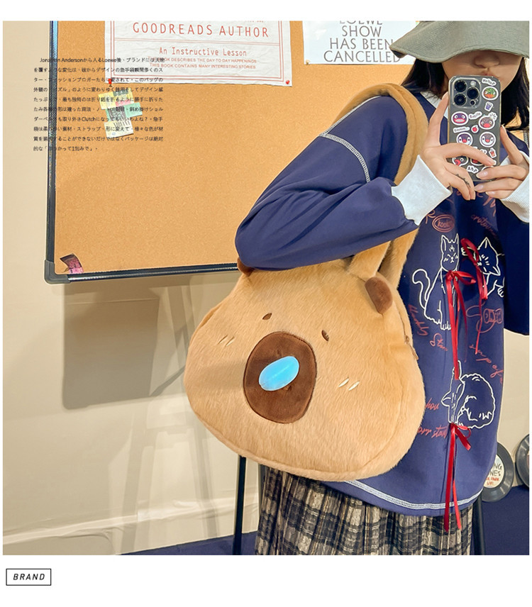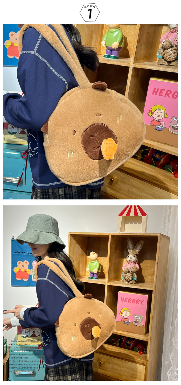 豚豚崽鼻涕可抻拉大容量手提包新款个性卡皮巴拉毛绒单肩包