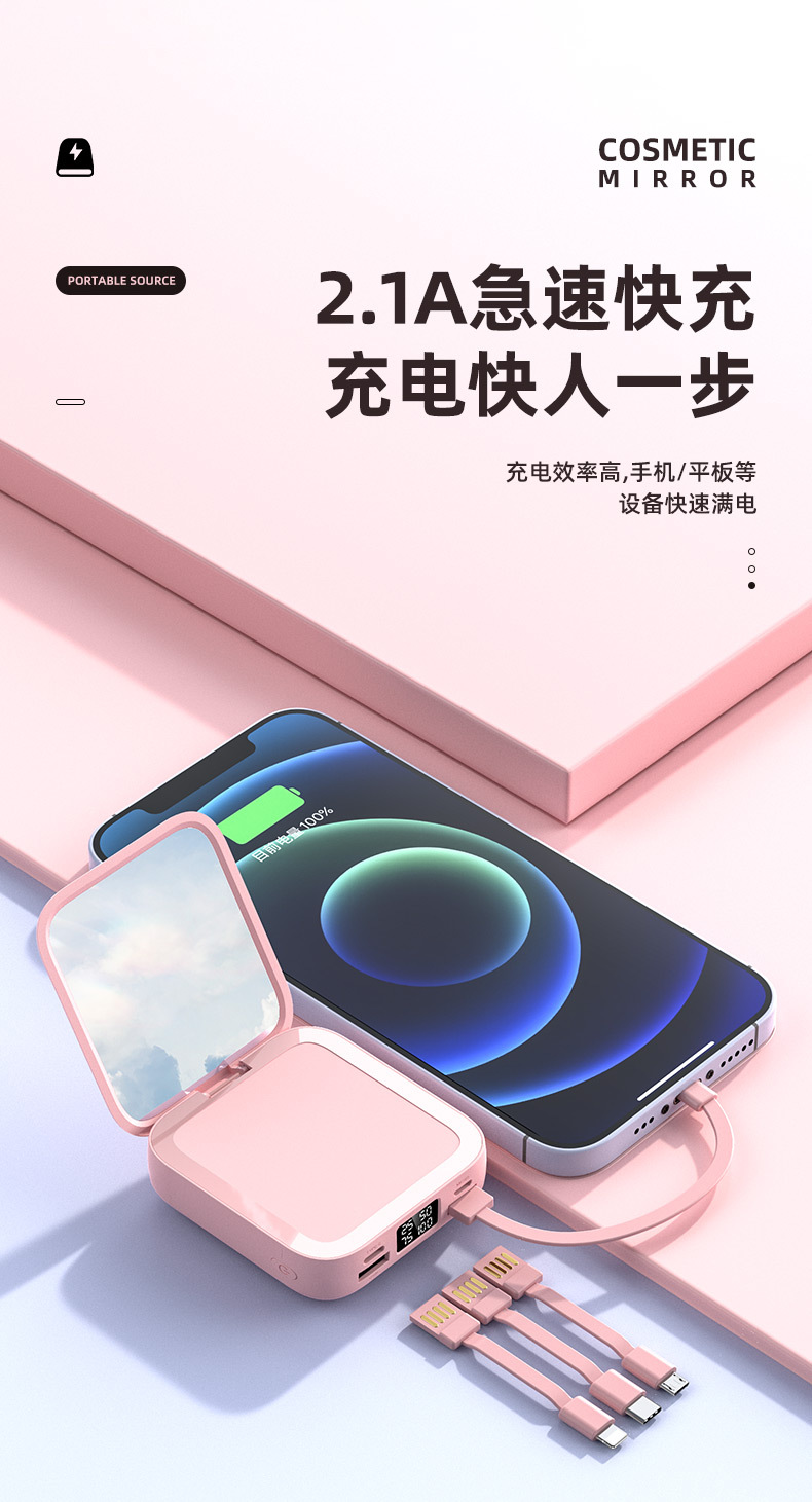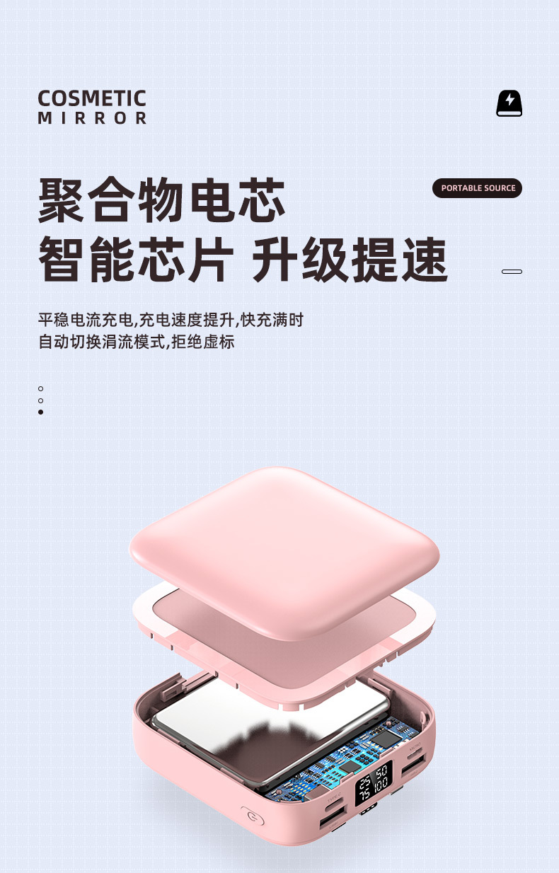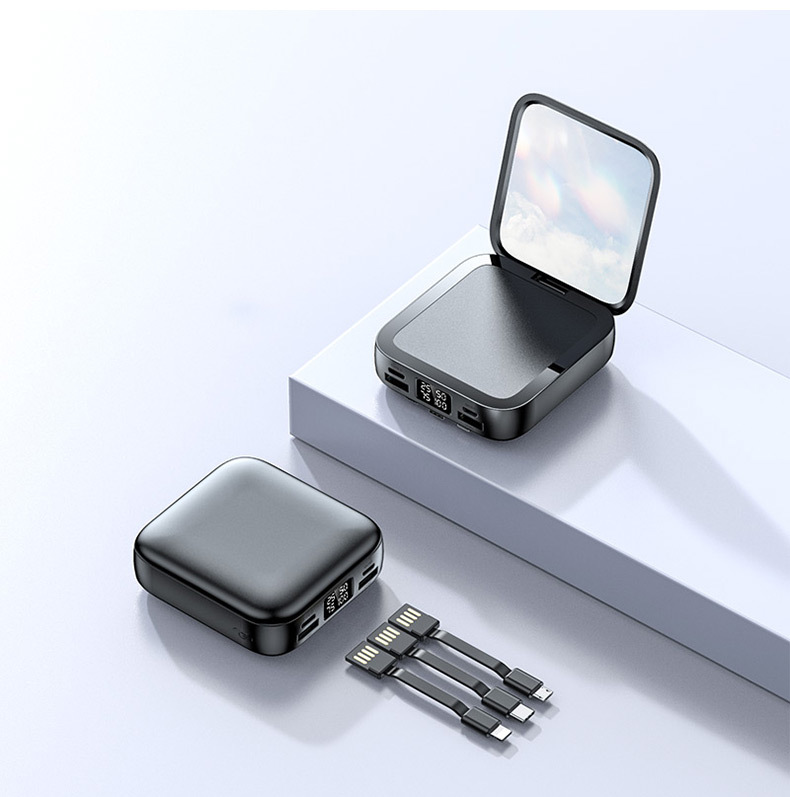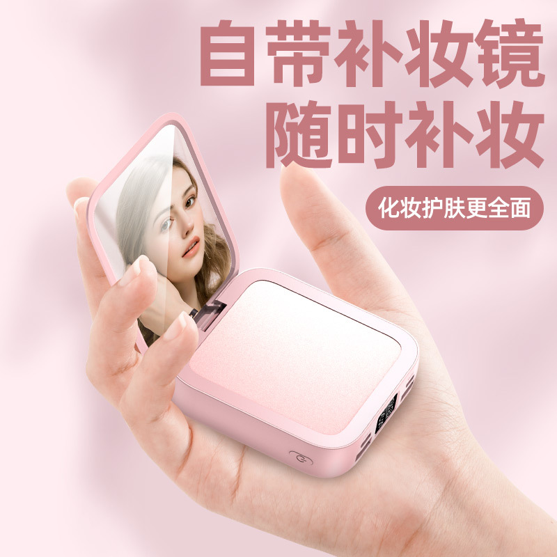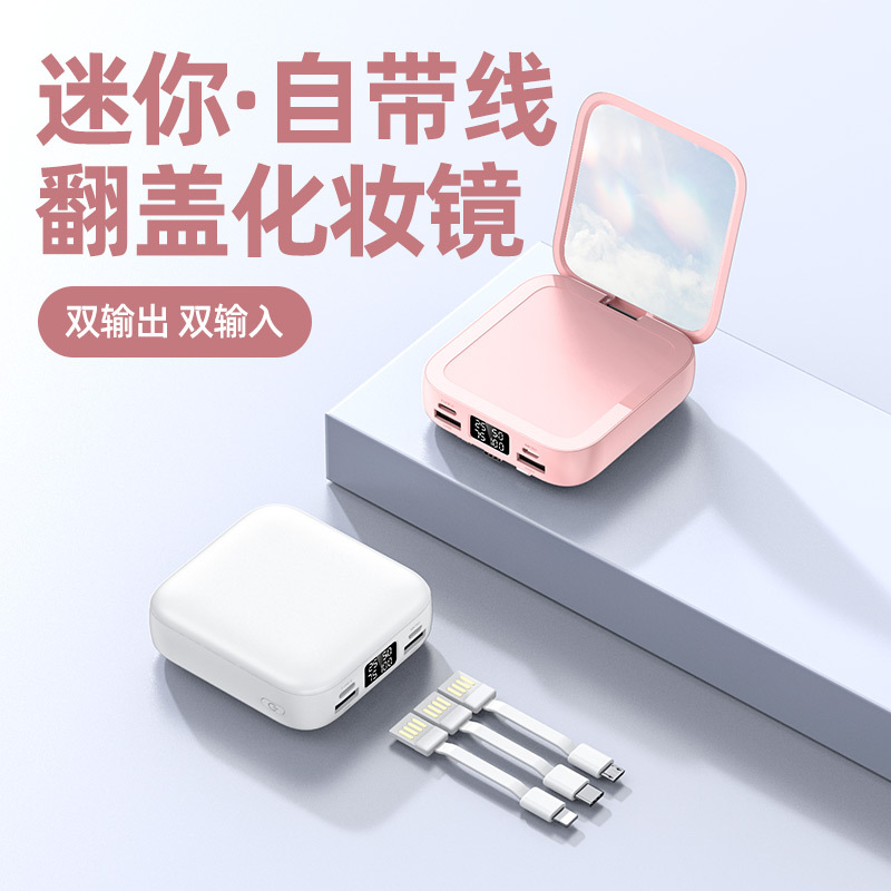 新款迷你化妆镜充电宝批发礼品20000毫安小巧便携自带线移动电源
