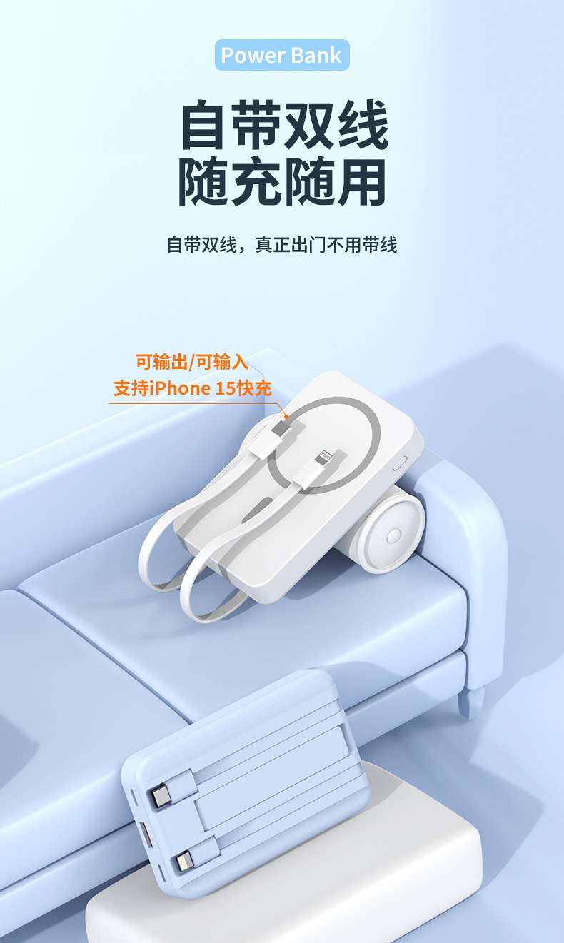 Magsafe磁吸充电宝20000毫安超级快充自带双线快冲无线充移动电源