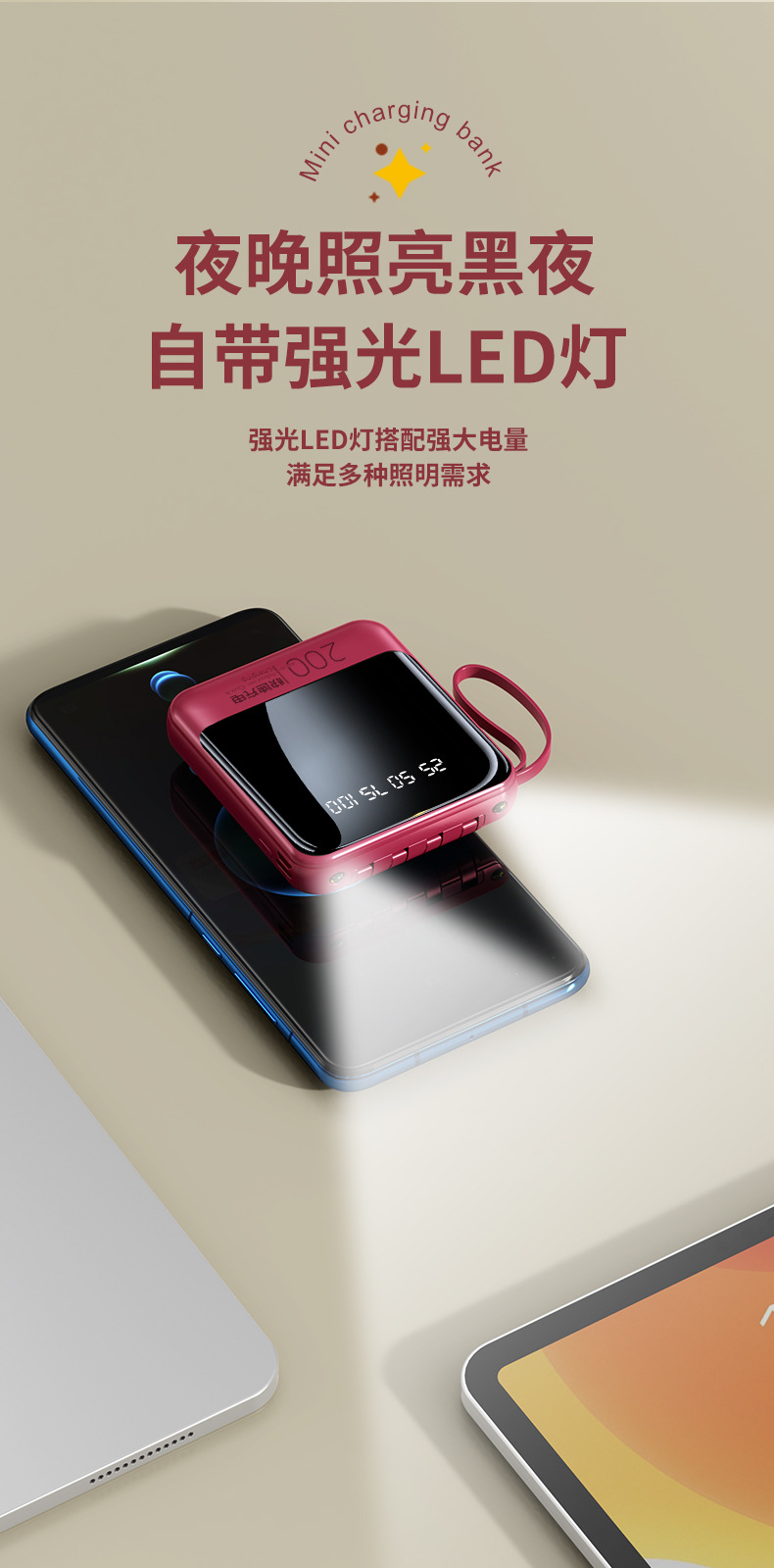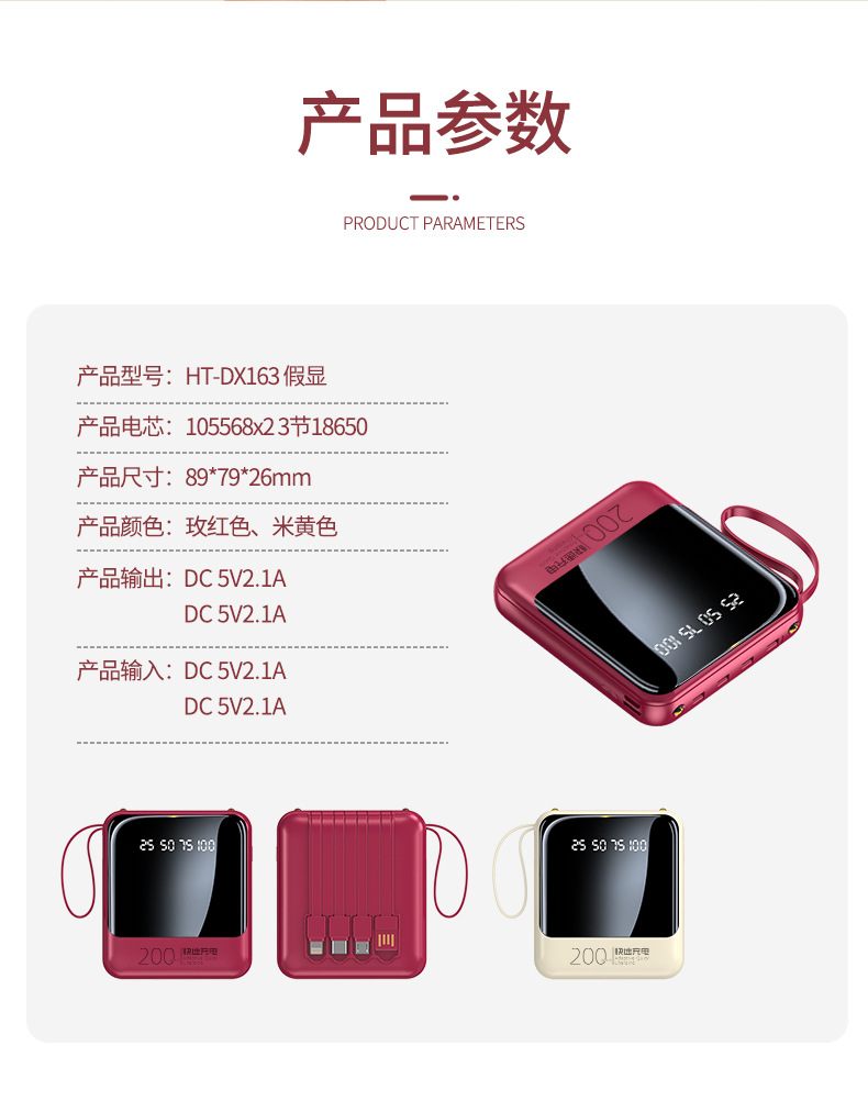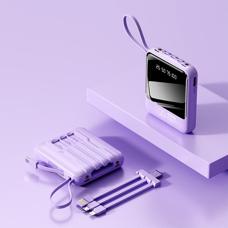 跨境定制礼品充电宝1W毫安自带线外贸厂家批发大容量迷你移动电源