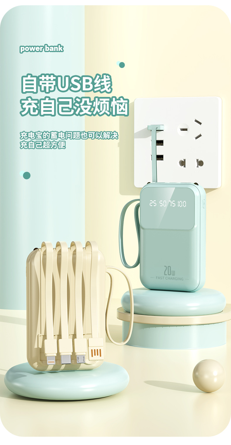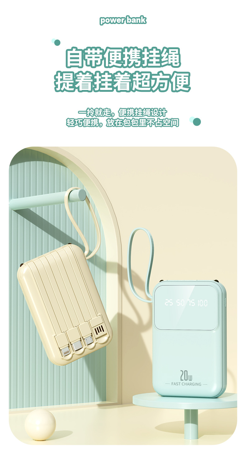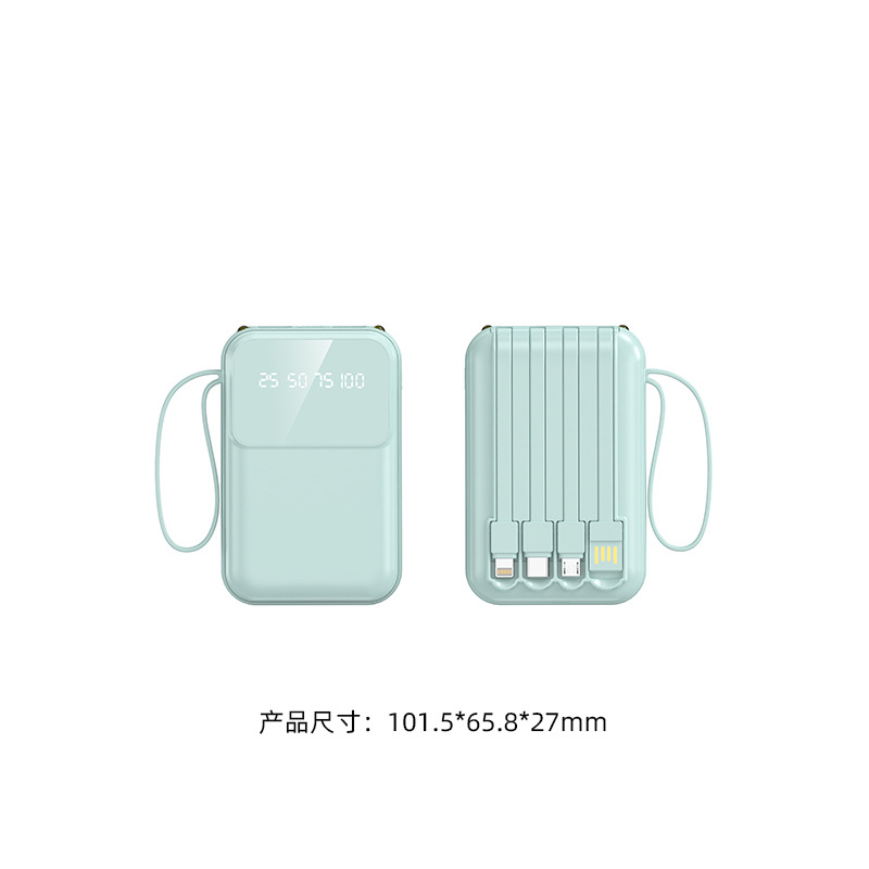 跨境批发迷你小巧便捷自带四线10000毫安充电宝移动电源定制logo