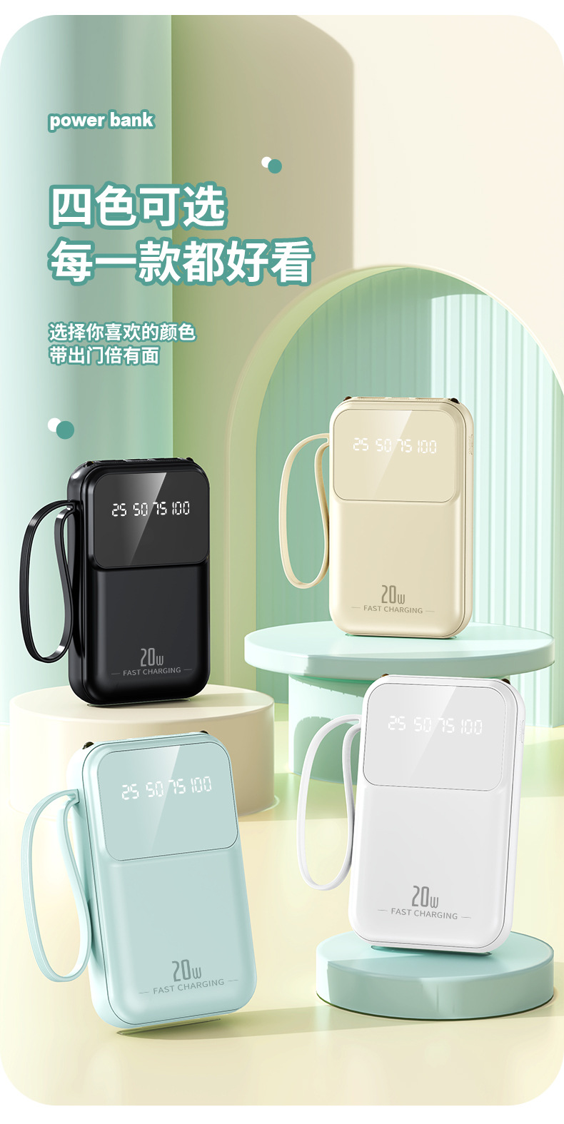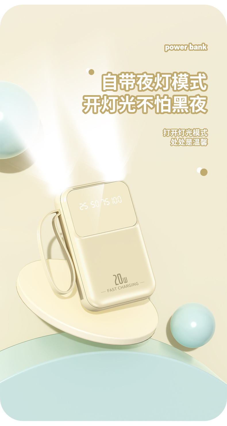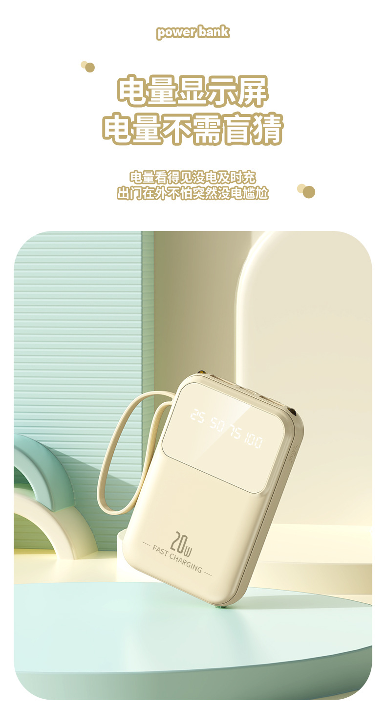 跨境批发迷你小巧便捷自带四线10000毫安充电宝移动电源定制logo