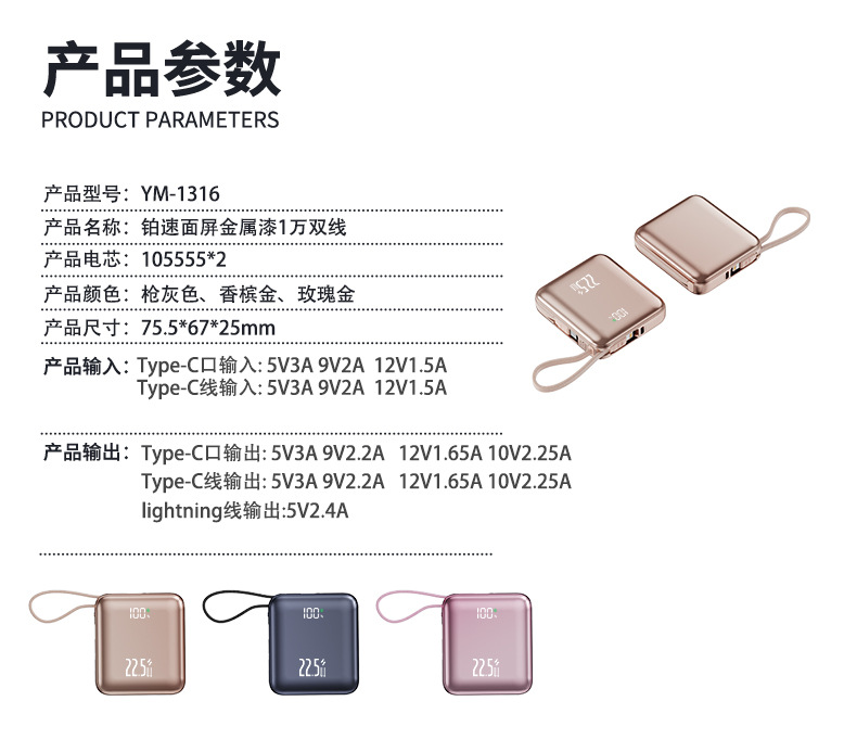 | 10000毫安(快充版) | USD $8.39 | 12456 piece available |
