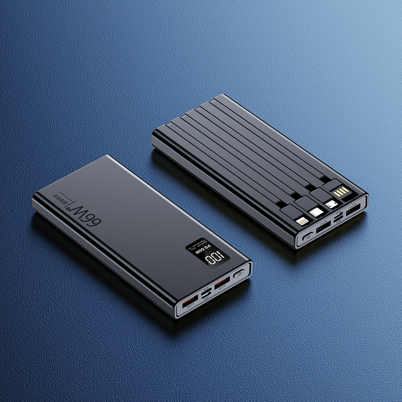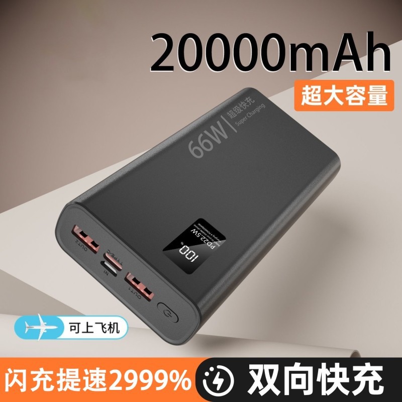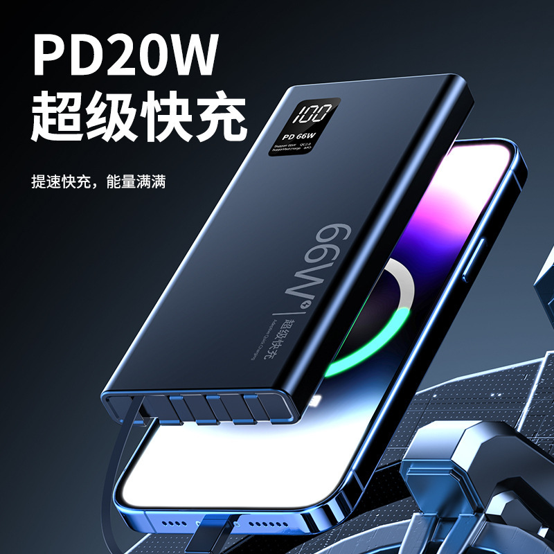 跨境充电宝66W超级快充自带线2万毫安大容量移动电源适用华为苹果