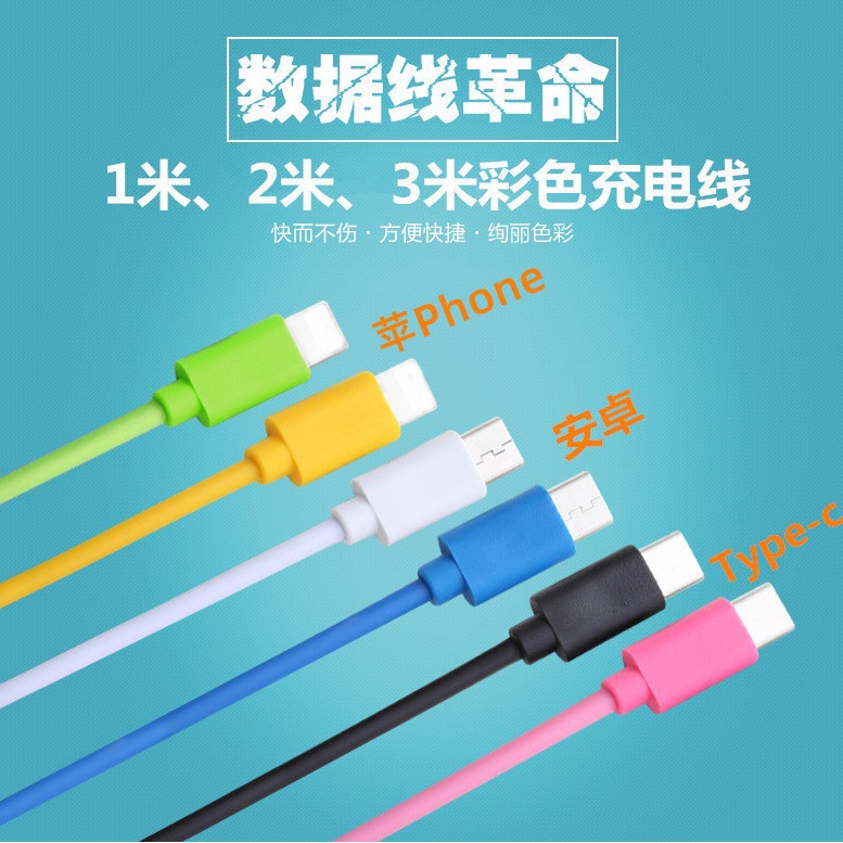 3米数据线适用安卓苹果type-c手机三米加长彩色手机充电线摆地摊