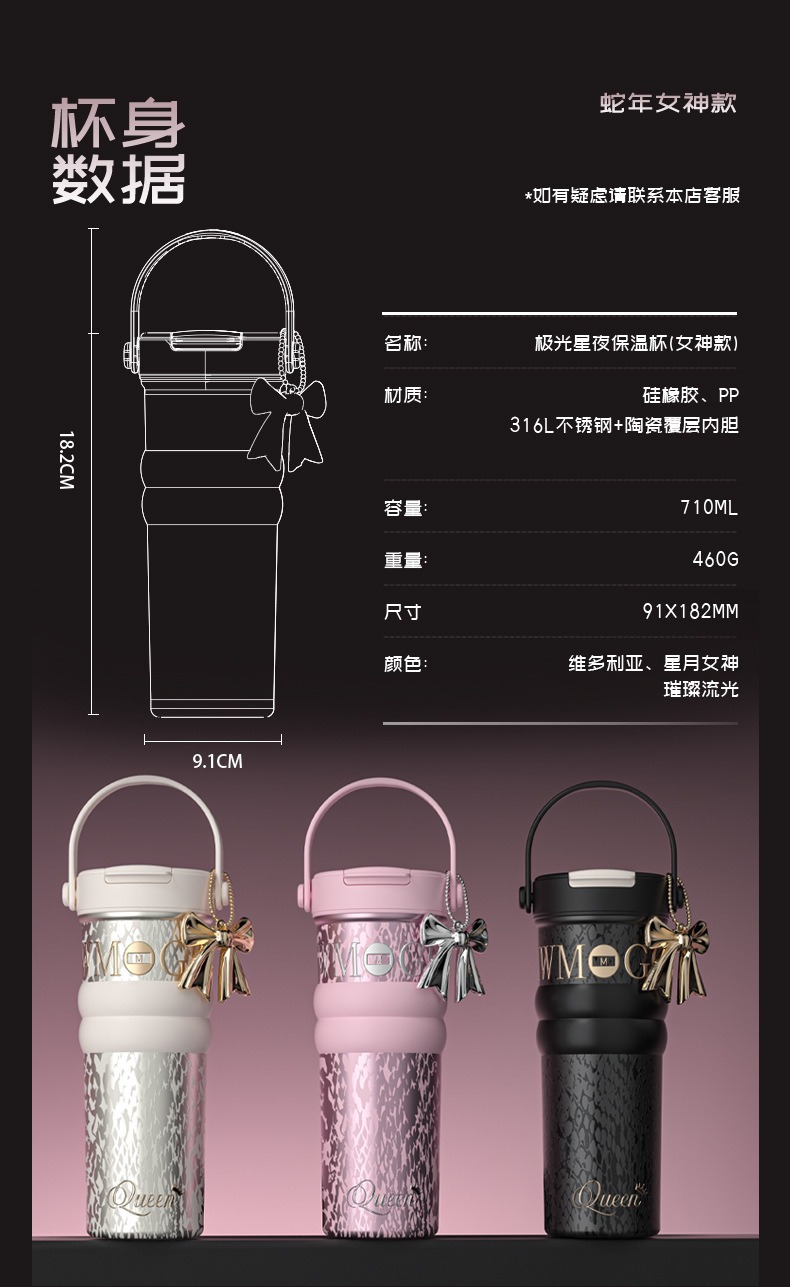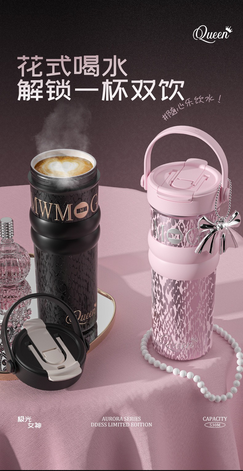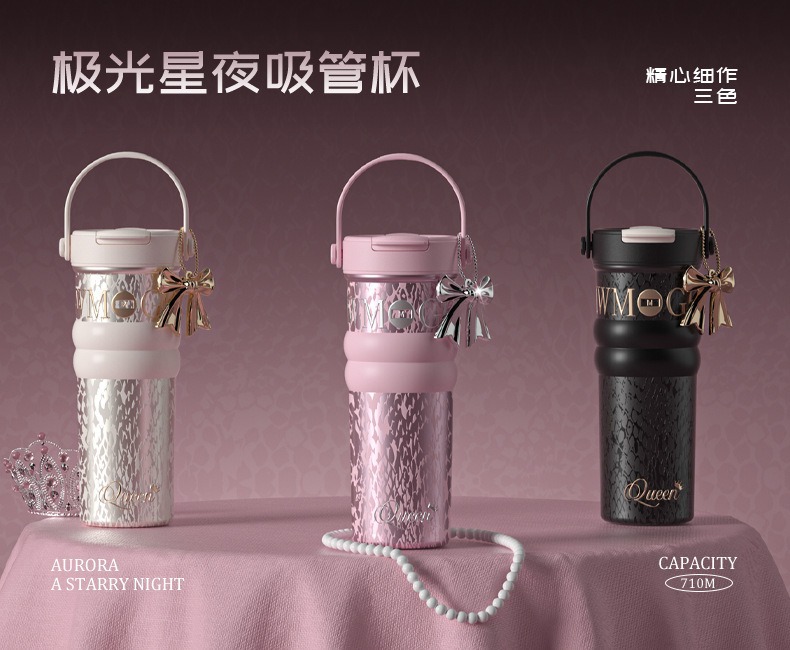 2025新款陶瓷双饮咖啡杯大容量高颜值带手提便携吸管礼品水杯批发
