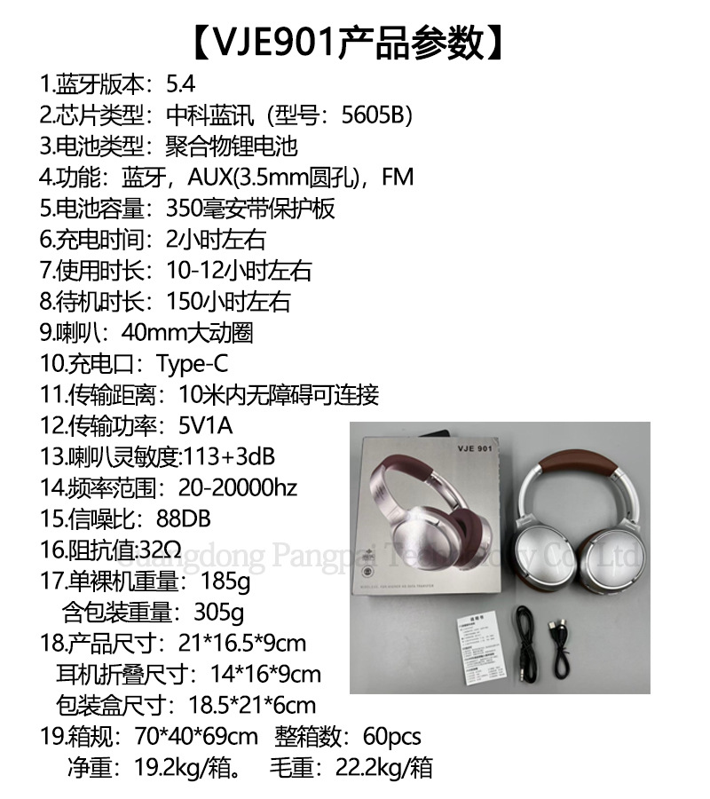 VJE901复古金属头戴式蓝牙耳机type无线手机游戏运动耳机私模跨境