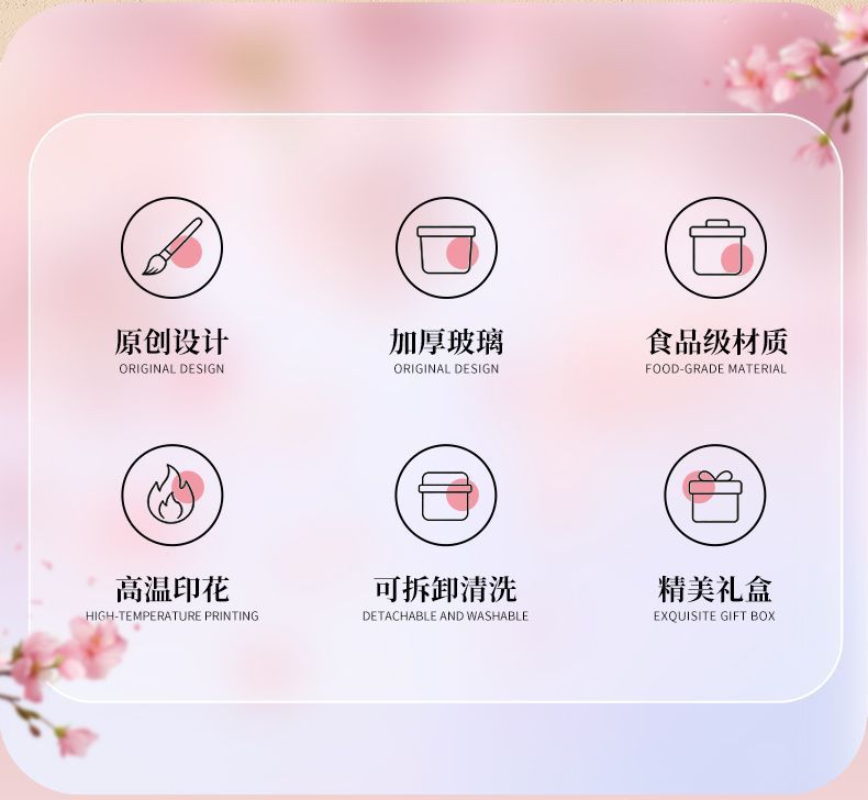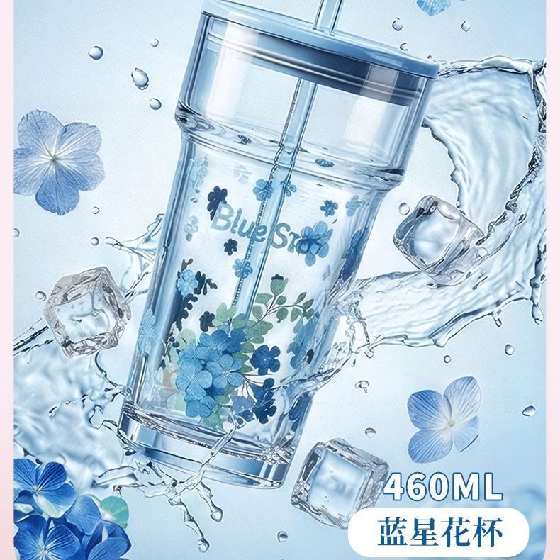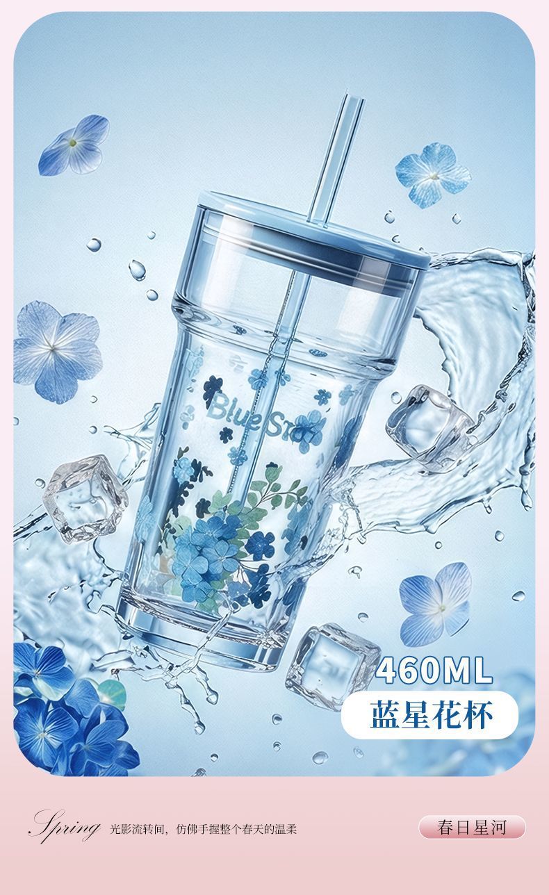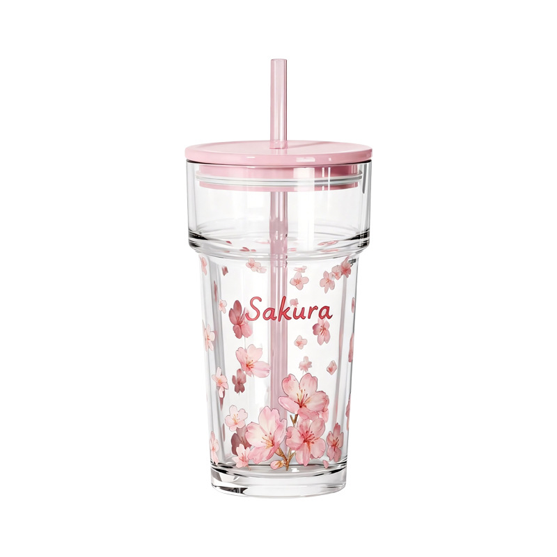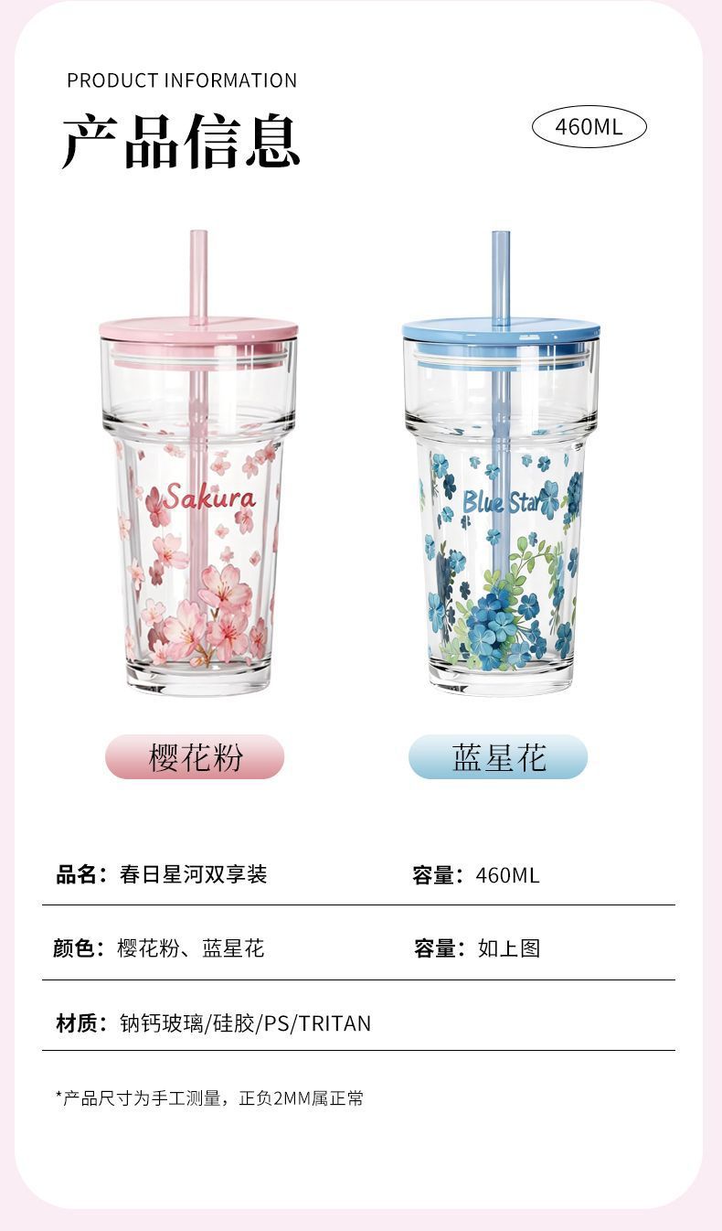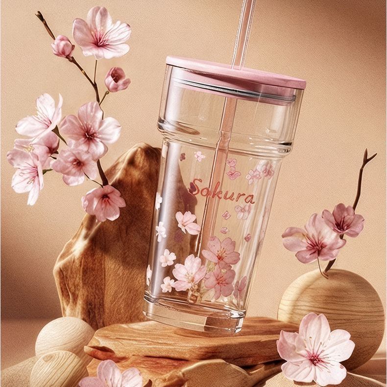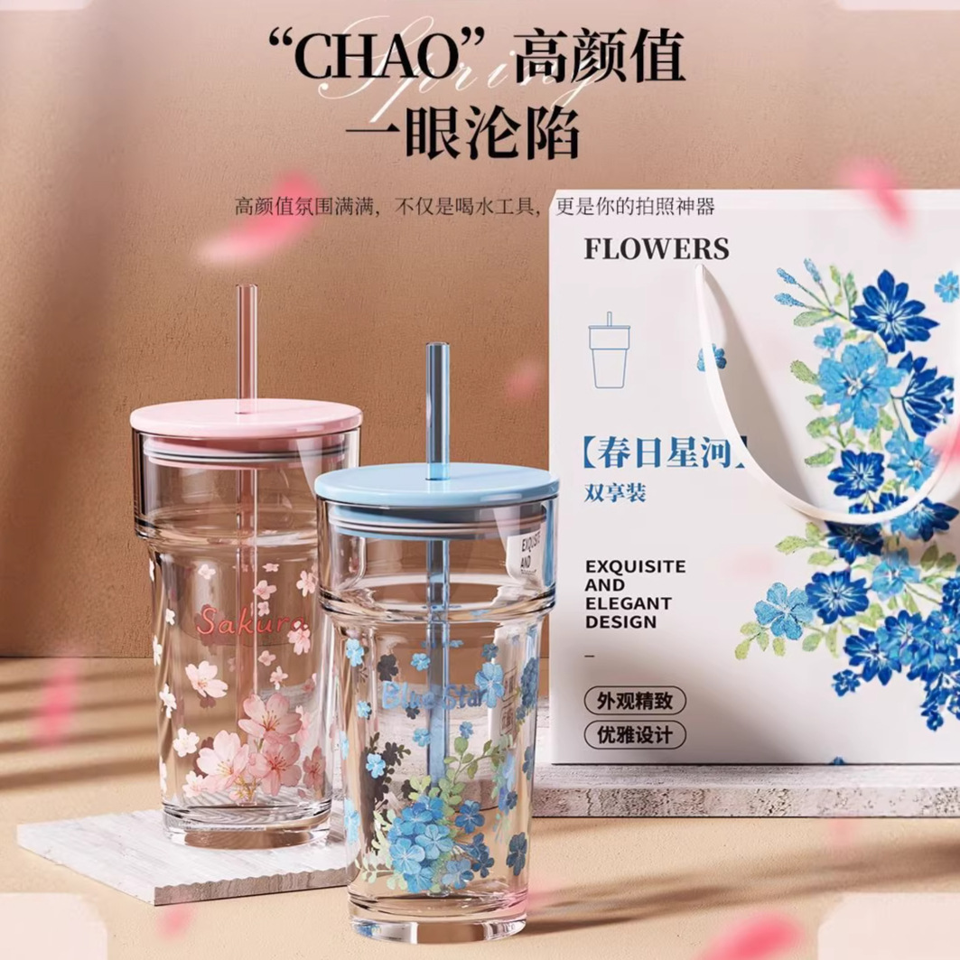高颜值ins风玻璃杯樱花女生带盖吸管杯耐热耐高温5新水杯子
