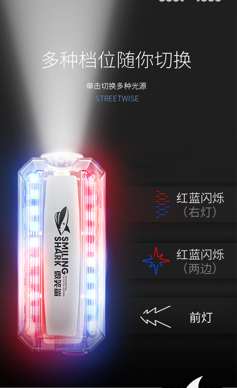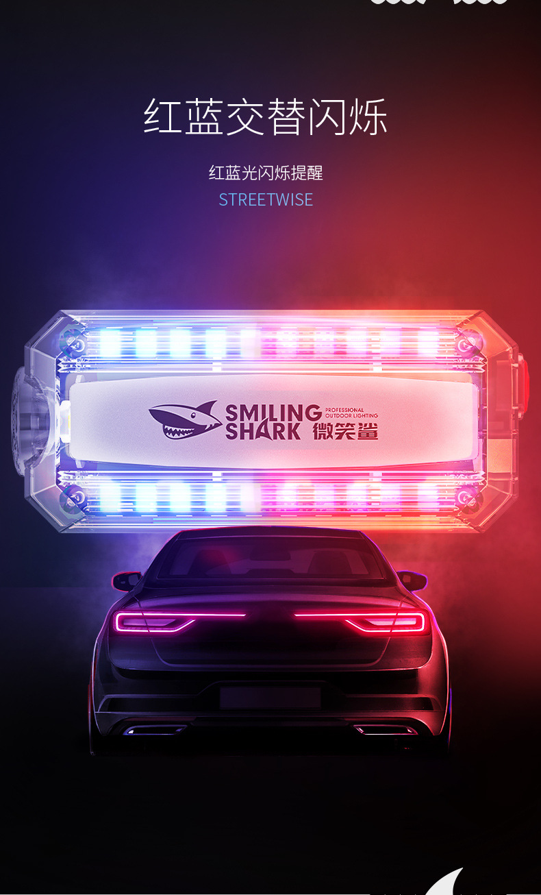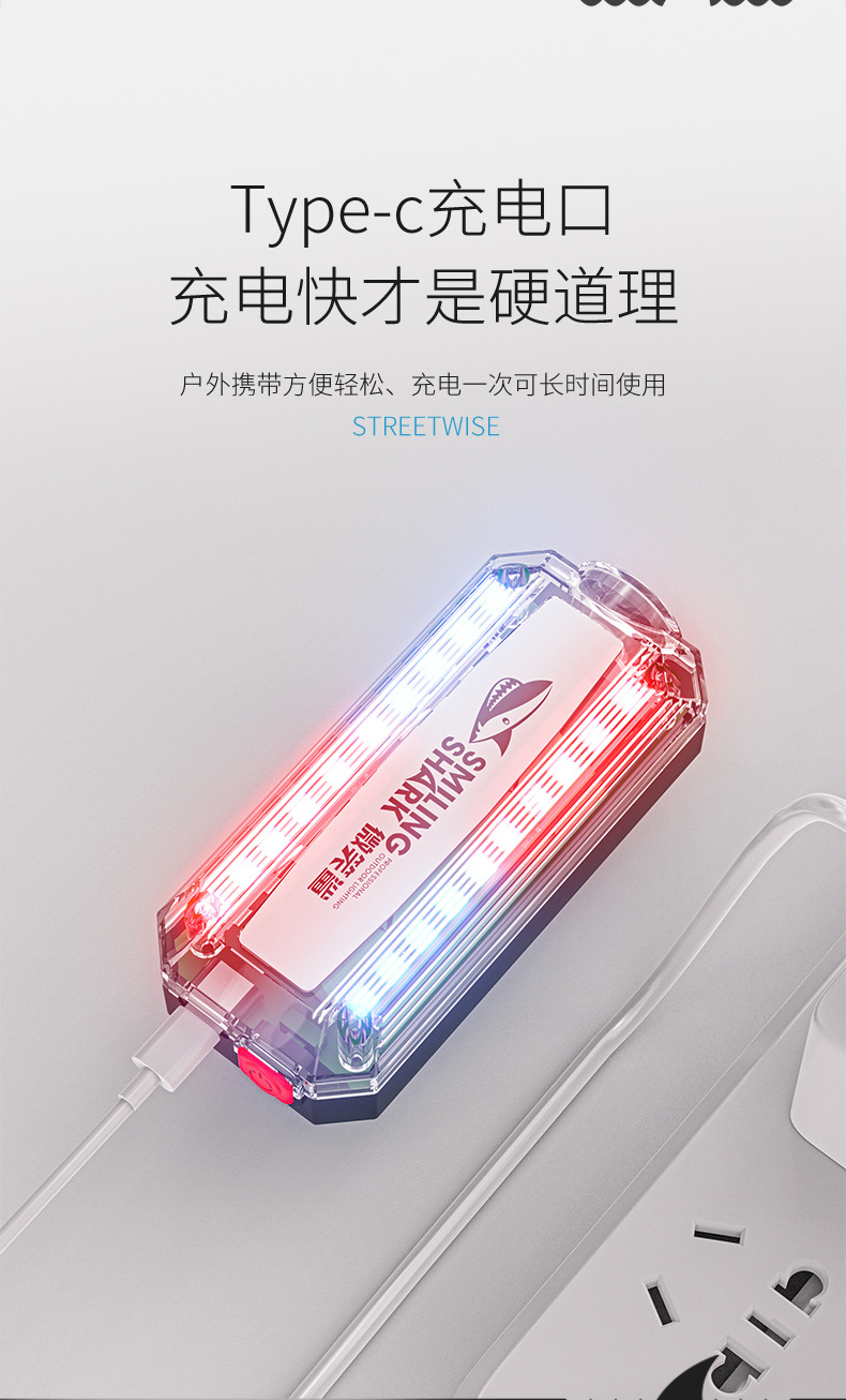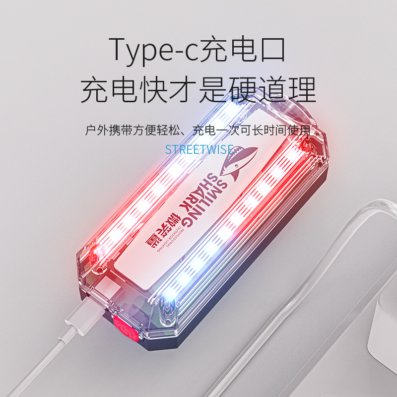 微笑鲨夜间红蓝闪烁肩灯交通警示灯醒目车灯TYPE-C充电户外照明灯