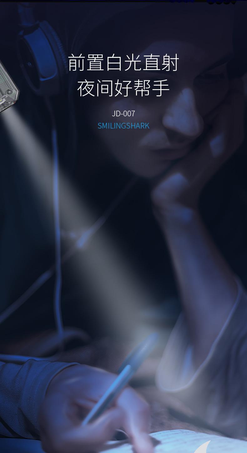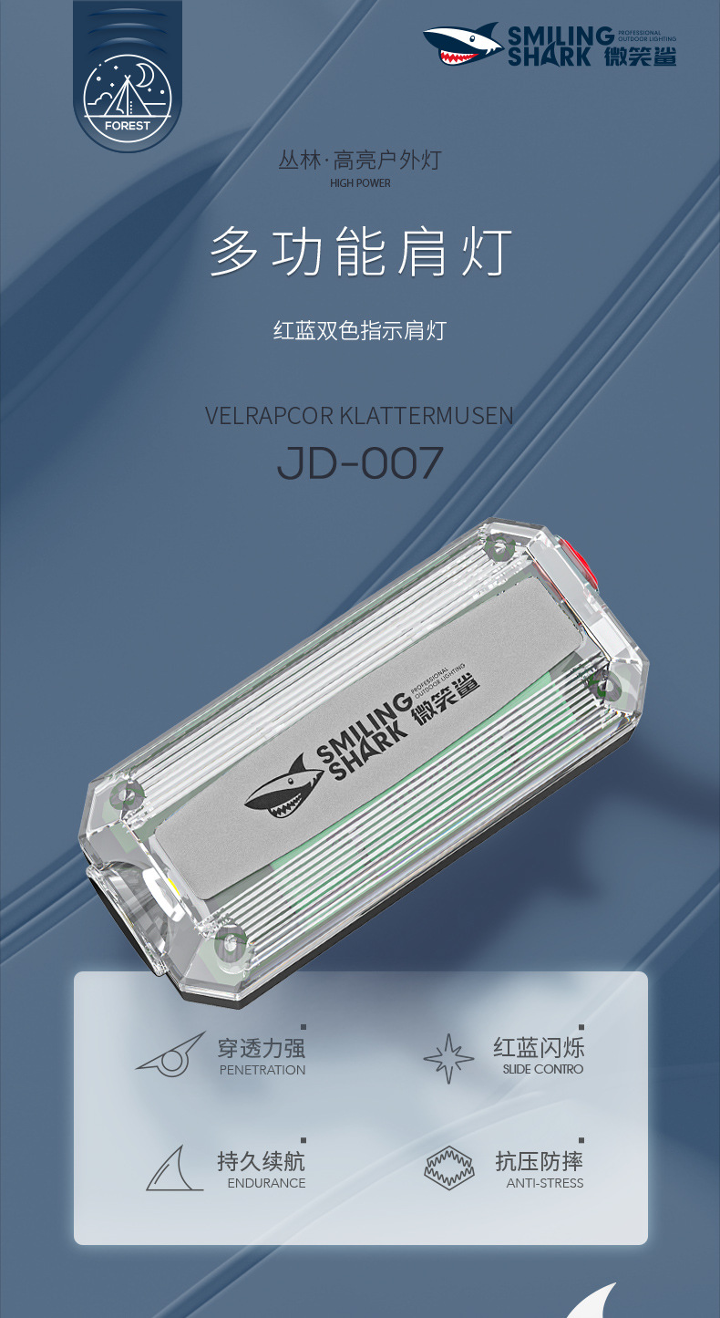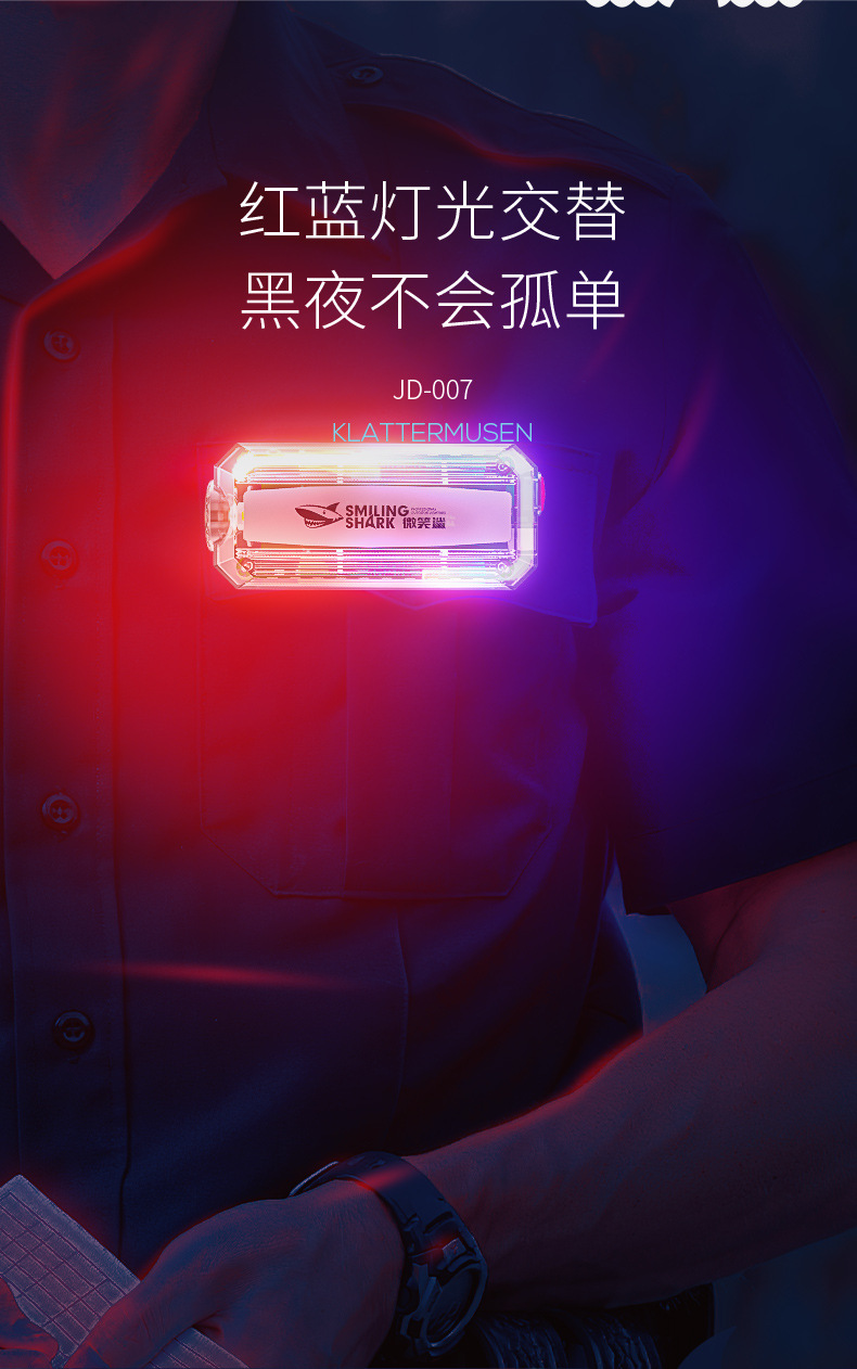 微笑鲨夜间红蓝闪烁肩灯交通警示灯醒目车灯TYPE-C充电户外照明灯
