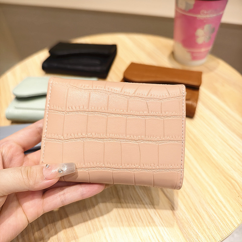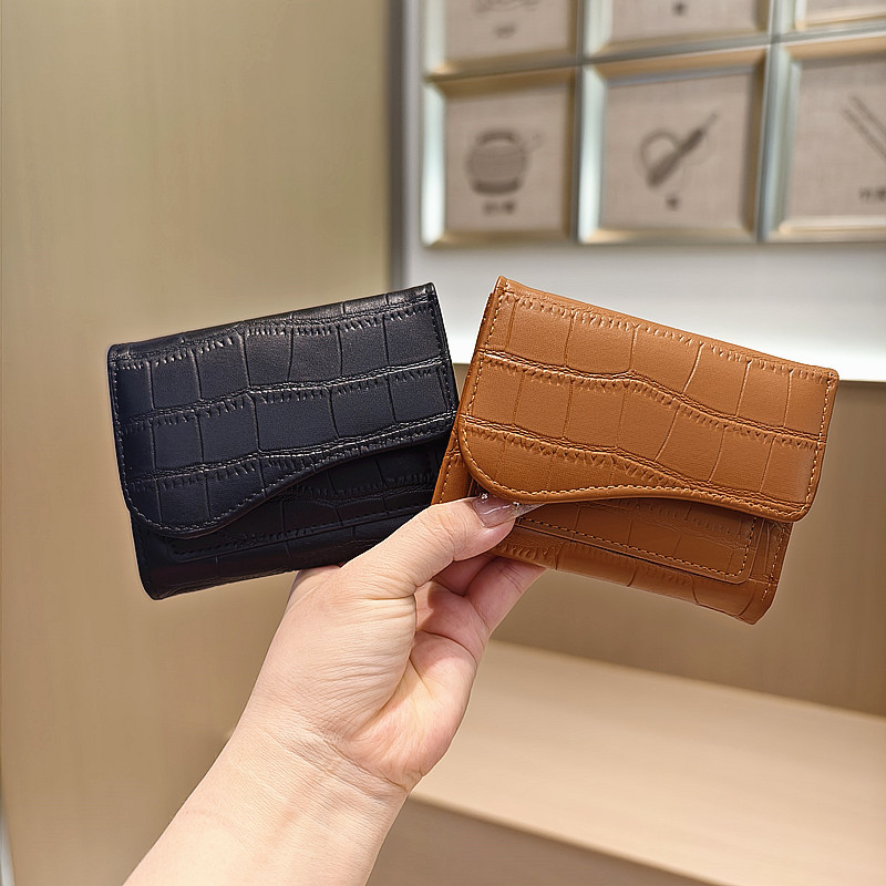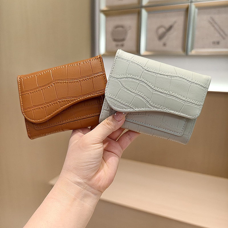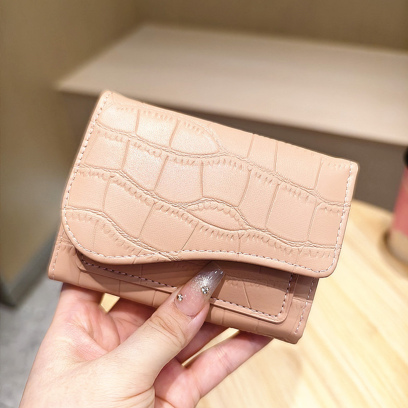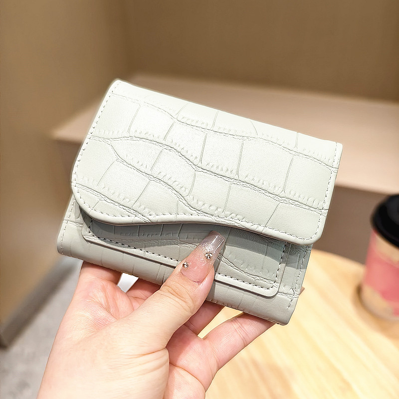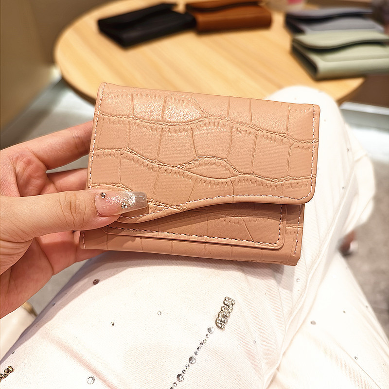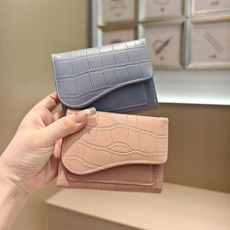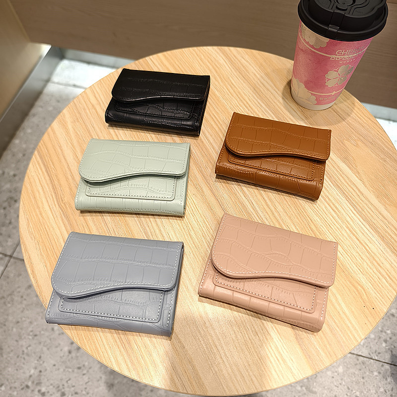 韩版新款复古纯色百搭个性石头纹翻盖三折女式短款钱包