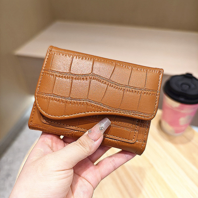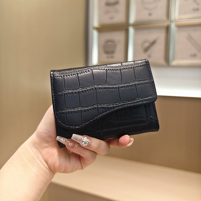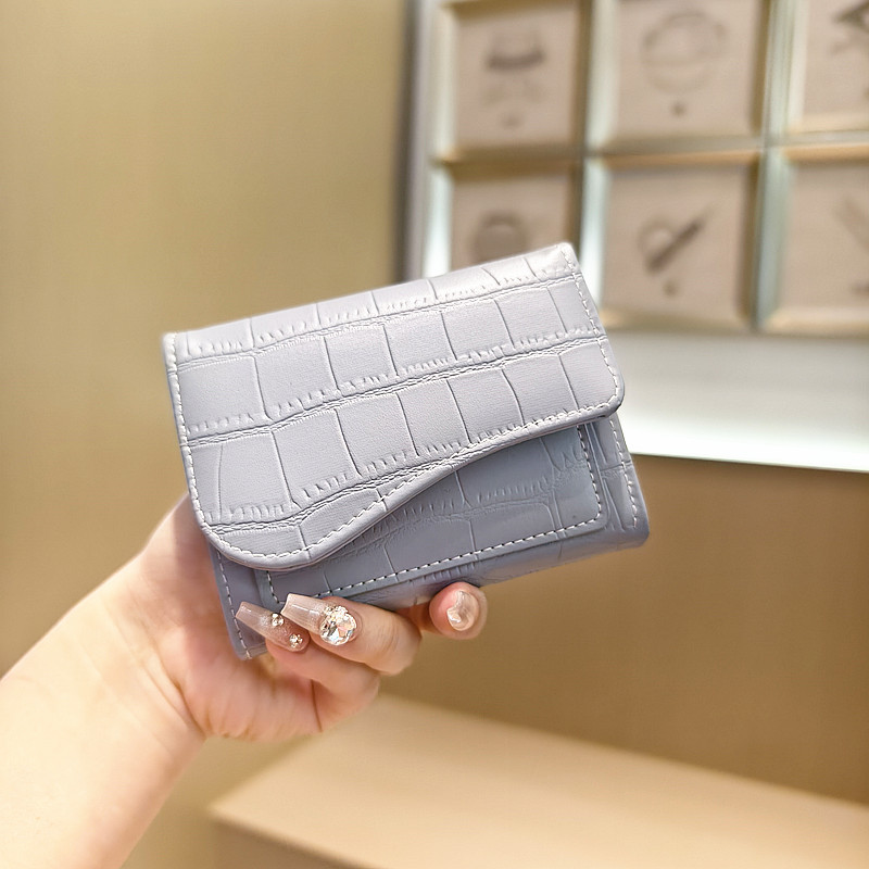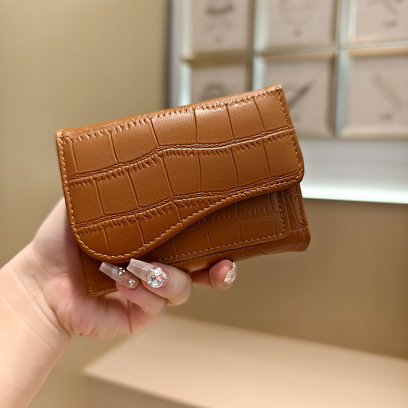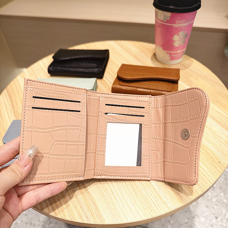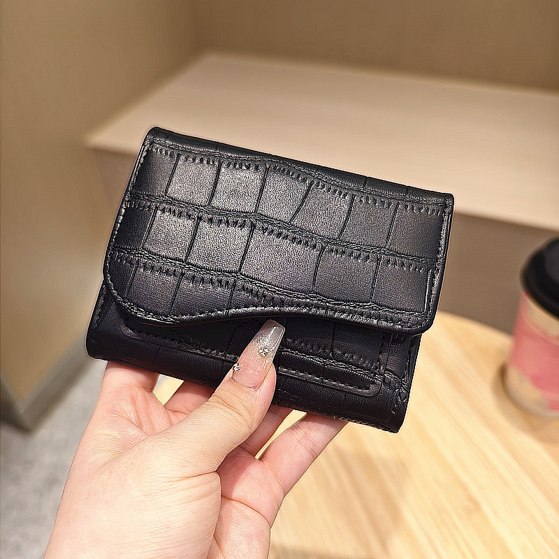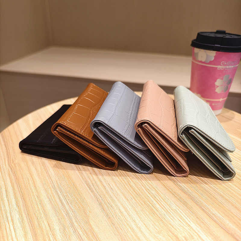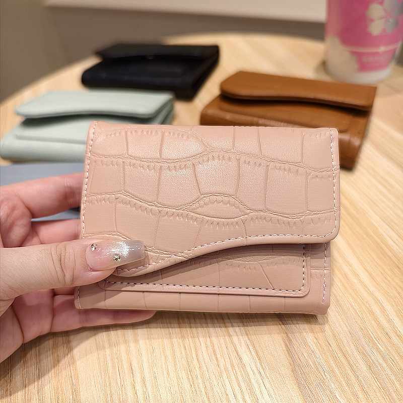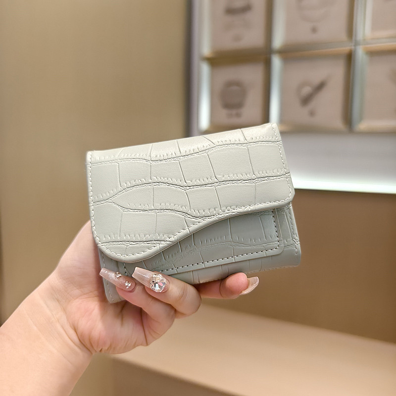 韩版新款复古纯色百搭个性石头纹翻盖三折女式短款钱包