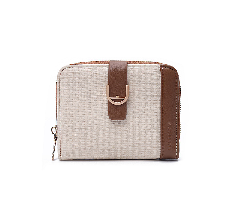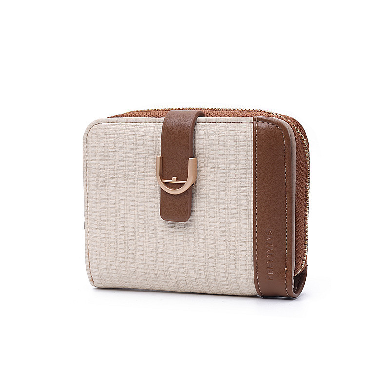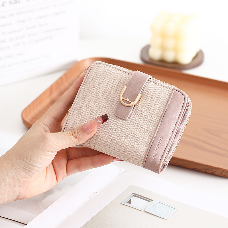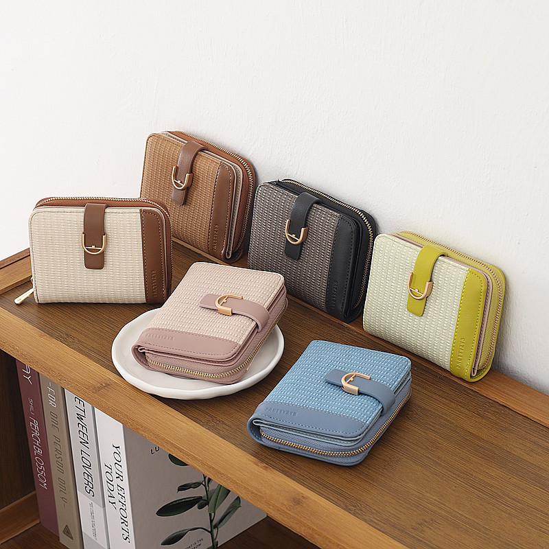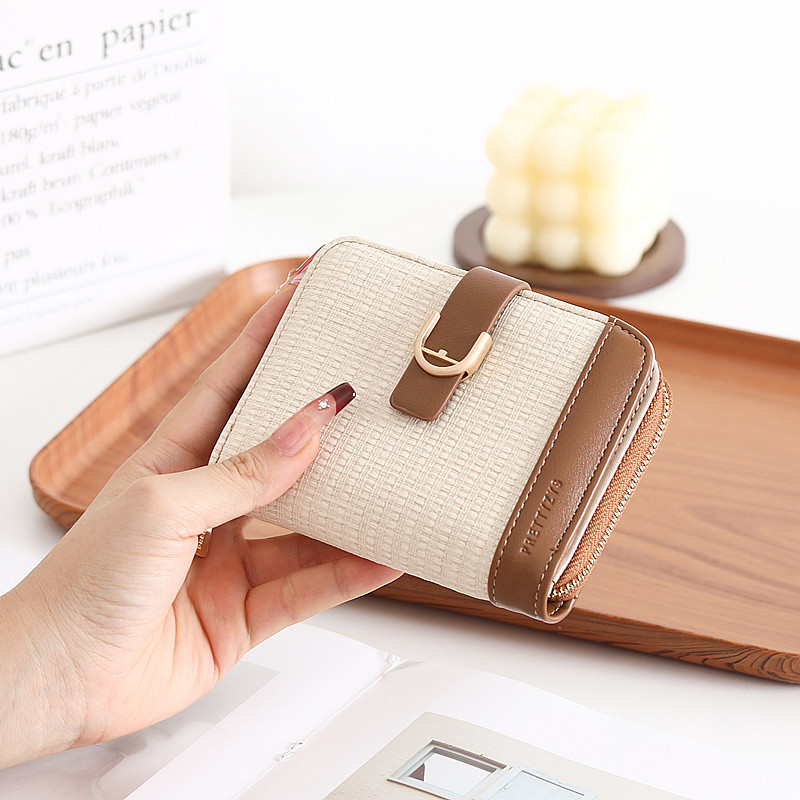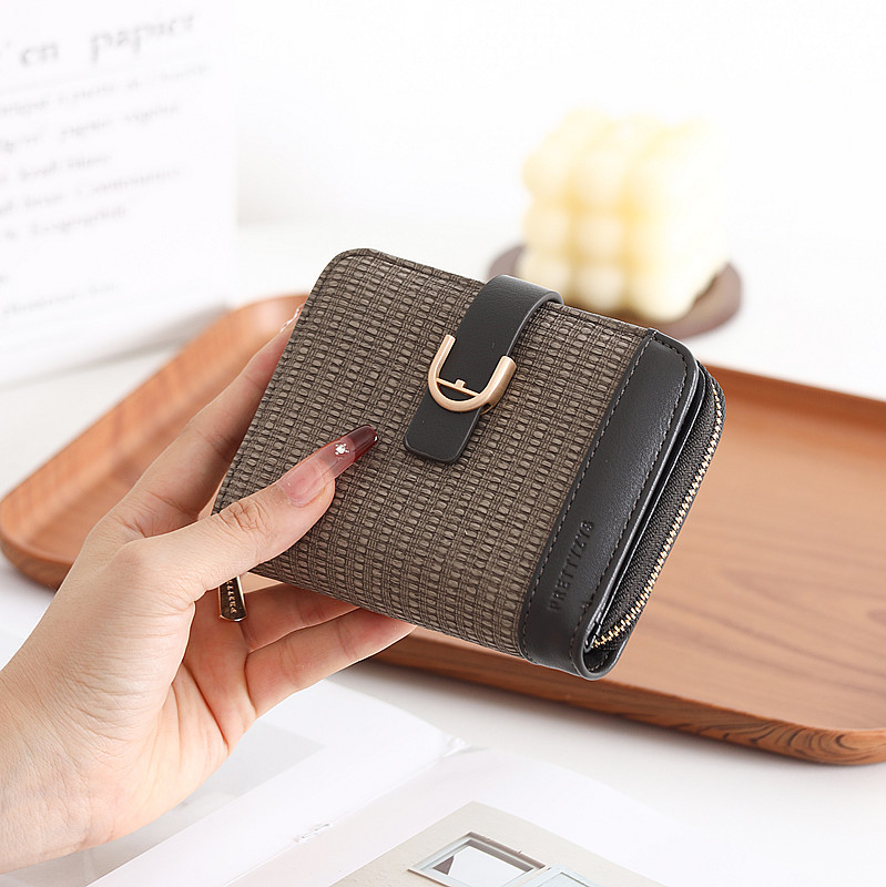 韩版新款时尚个性拼接撞色pu高级感拉链搭扣短款女士钱包