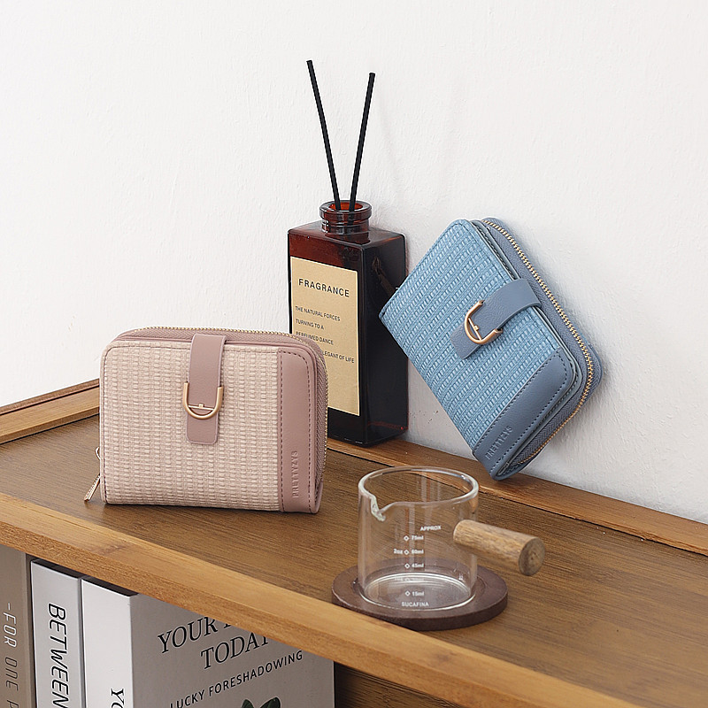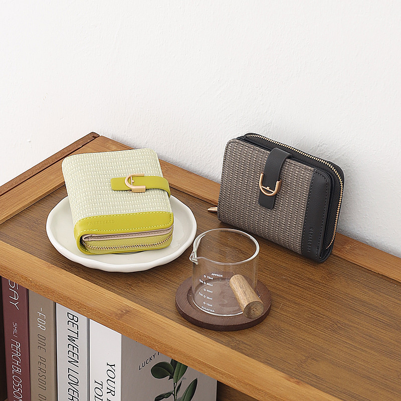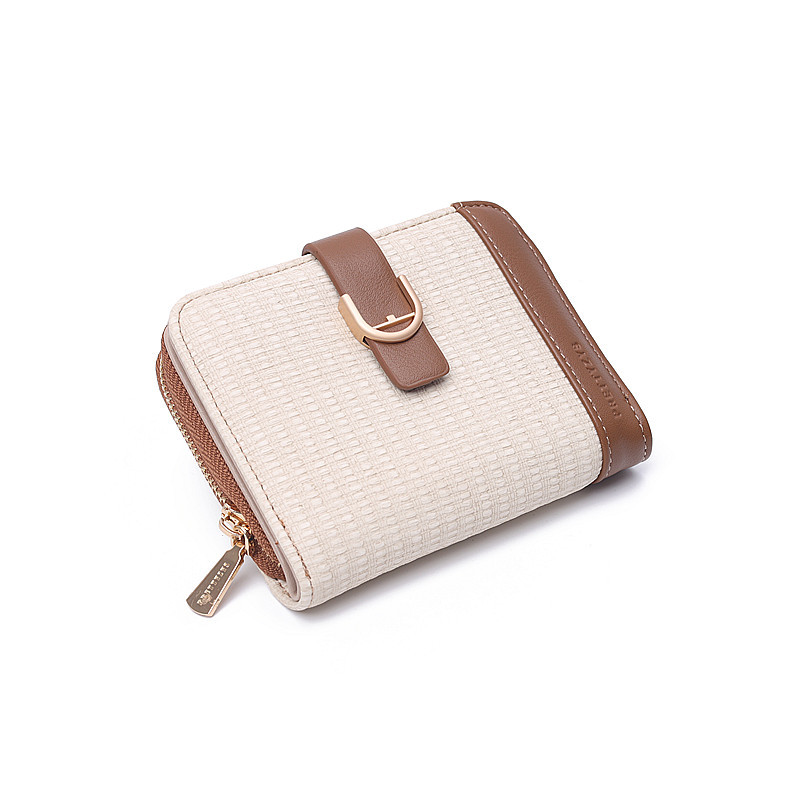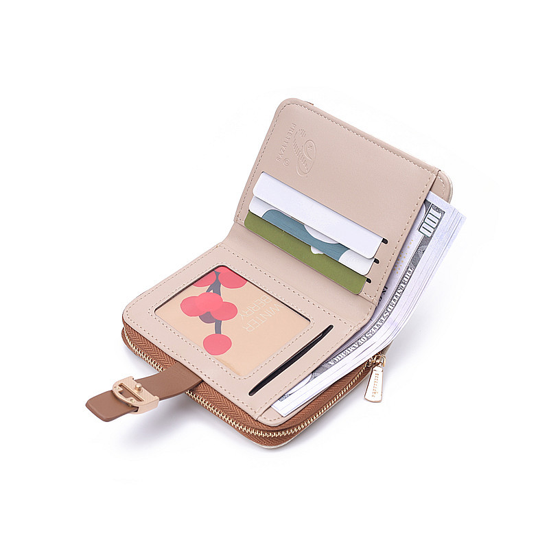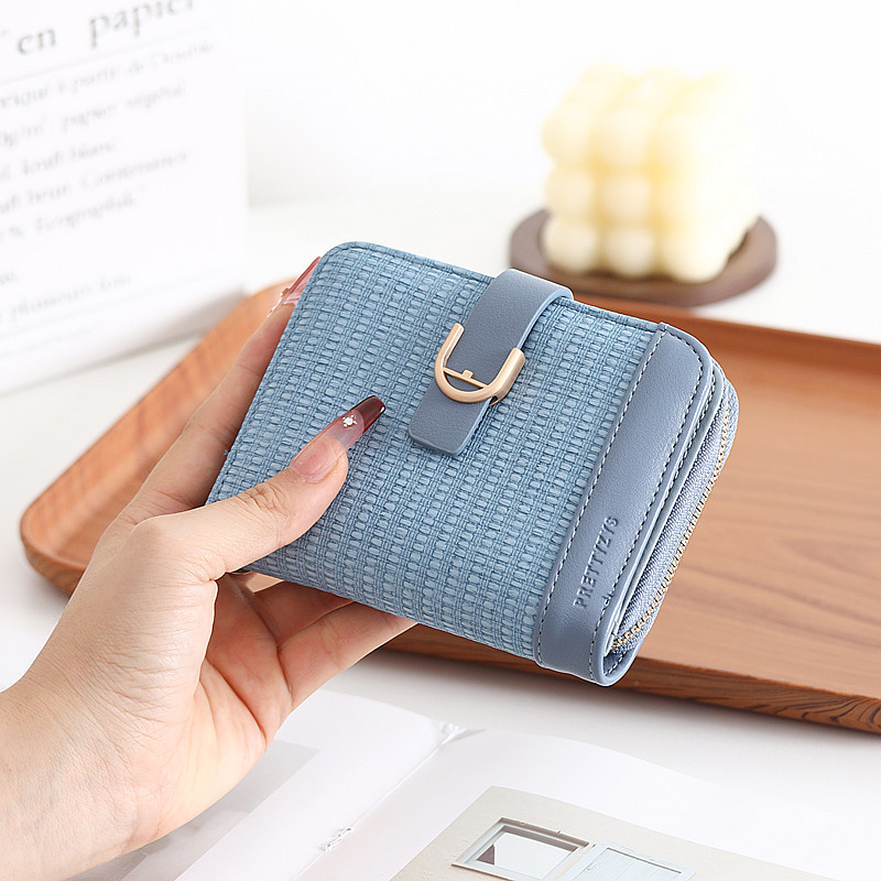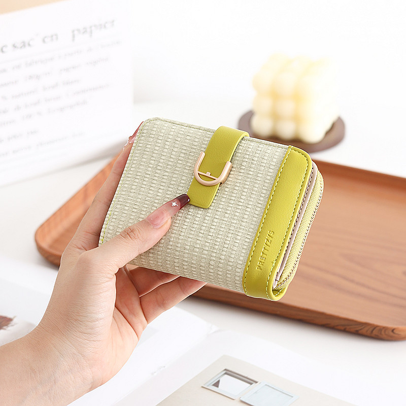 韩版新款时尚个性拼接撞色pu高级感拉链搭扣短款女士钱包
