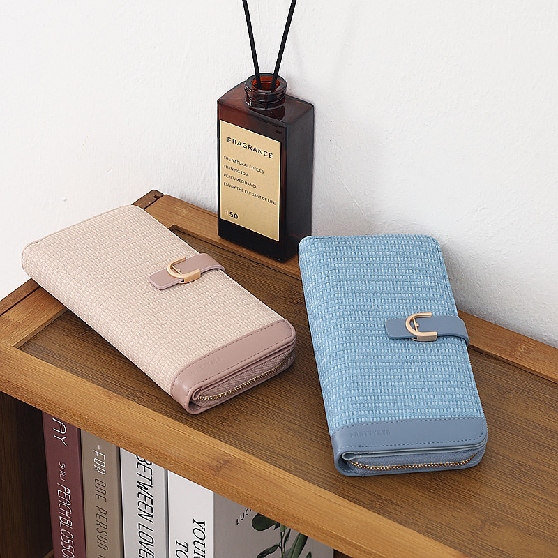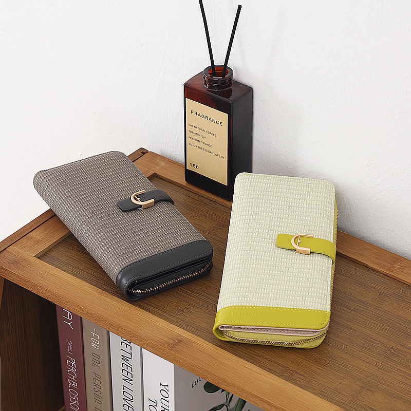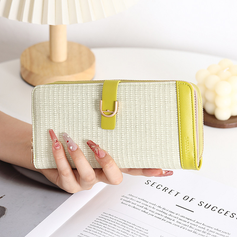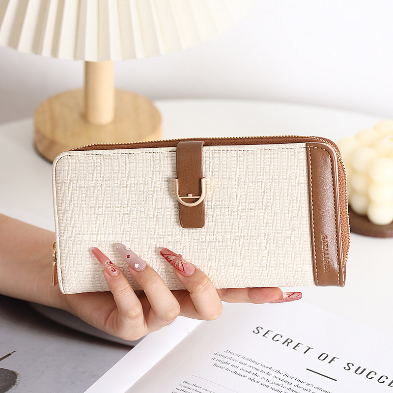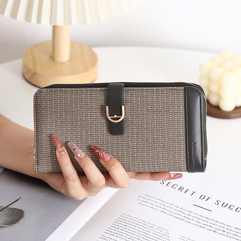 韩版新品简约个性拼接撞色大容量多功能长款钱包手拿包女
