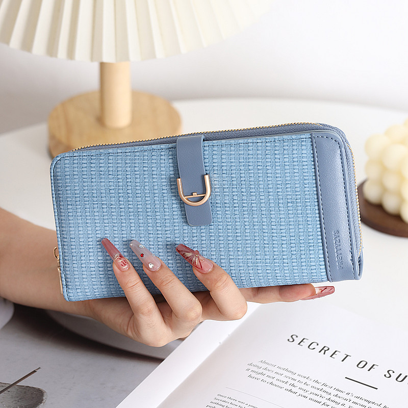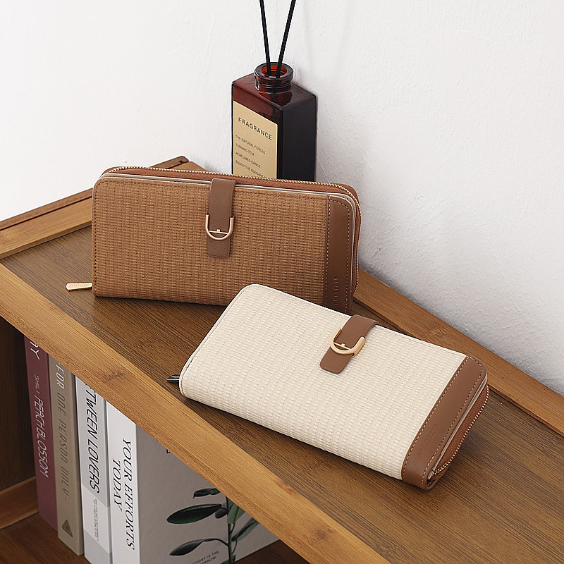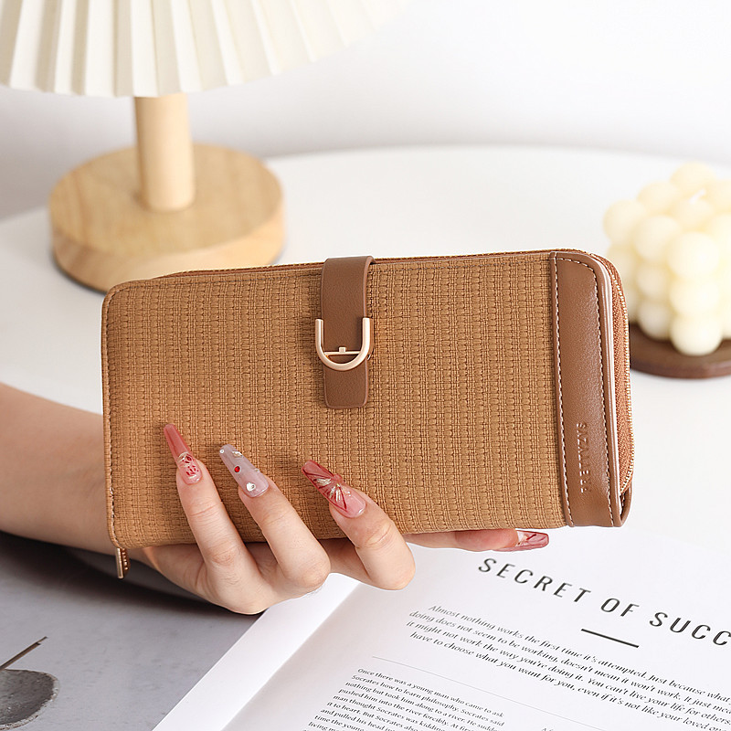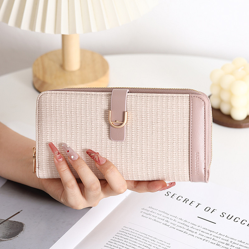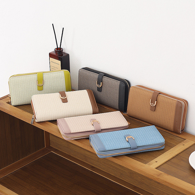 韩版新品简约个性拼接撞色大容量多功能长款钱包手拿包女