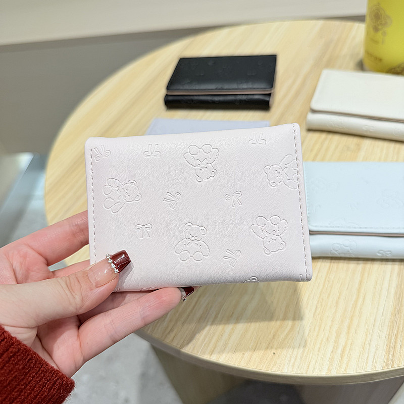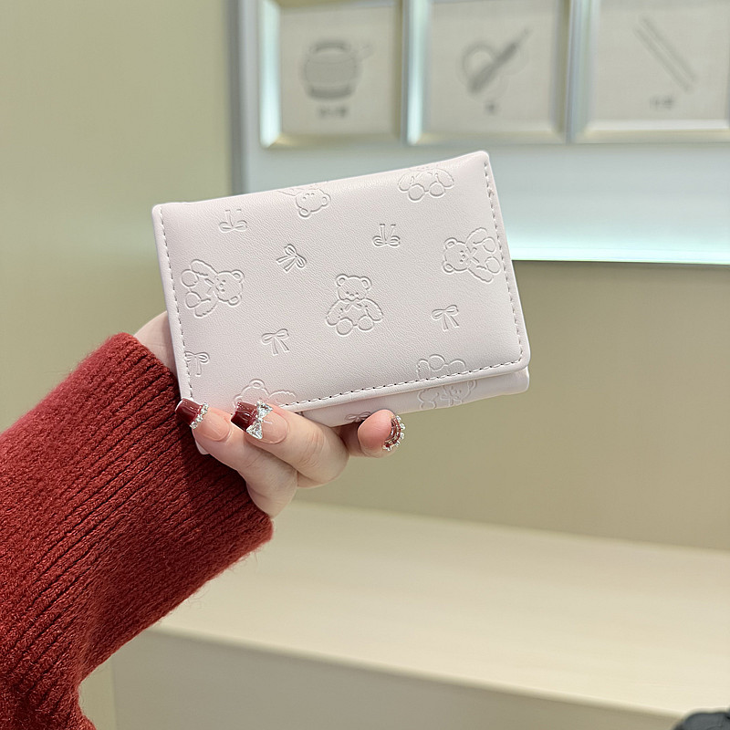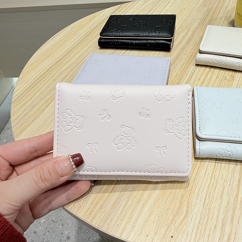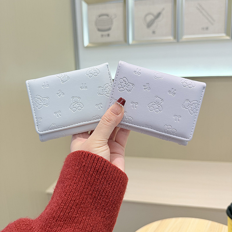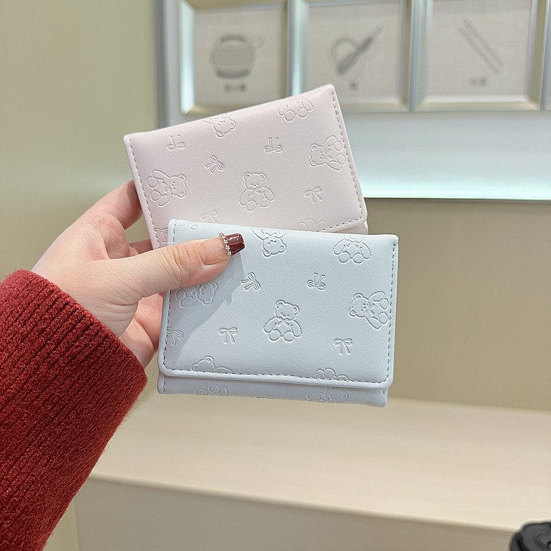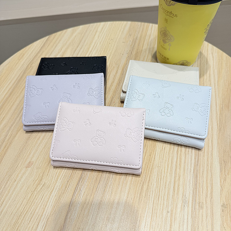 韩版新品卡通可爱压花小熊蝴蝶结三折迷你学生短款钱包钱夹