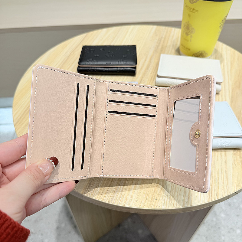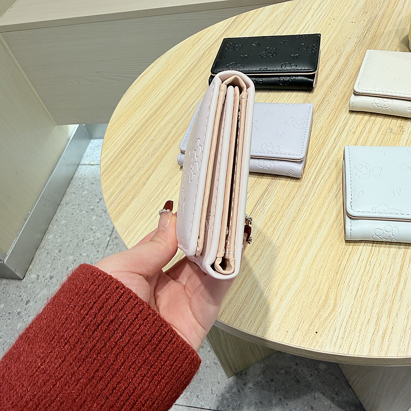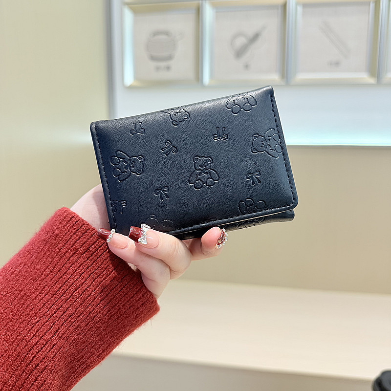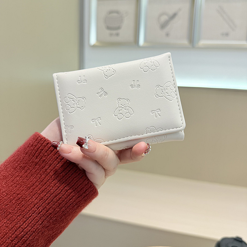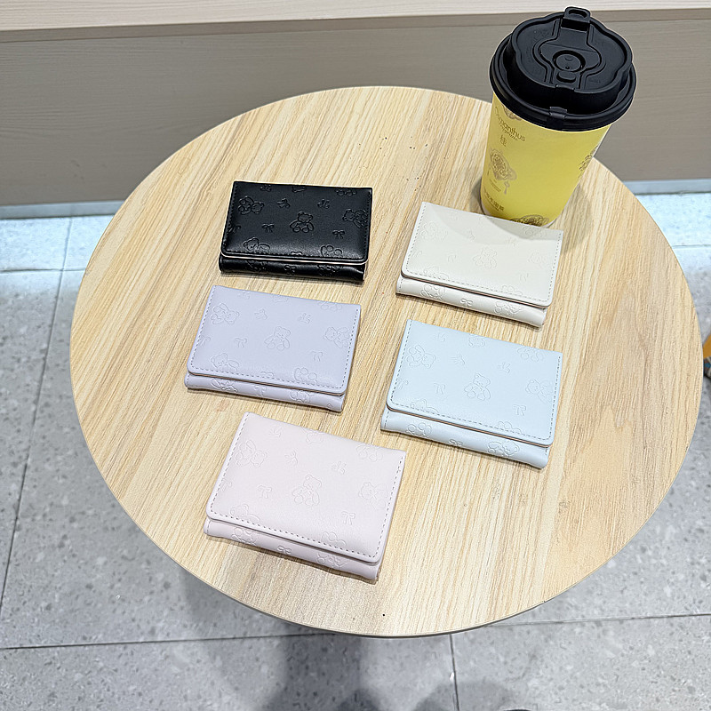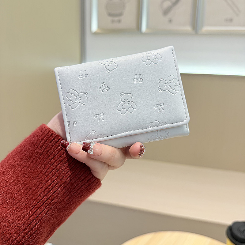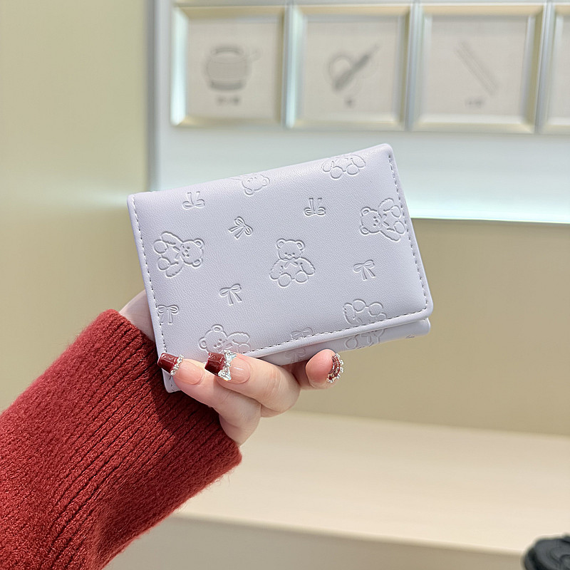 韩版新品卡通可爱压花小熊蝴蝶结三折迷你学生短款钱包钱夹