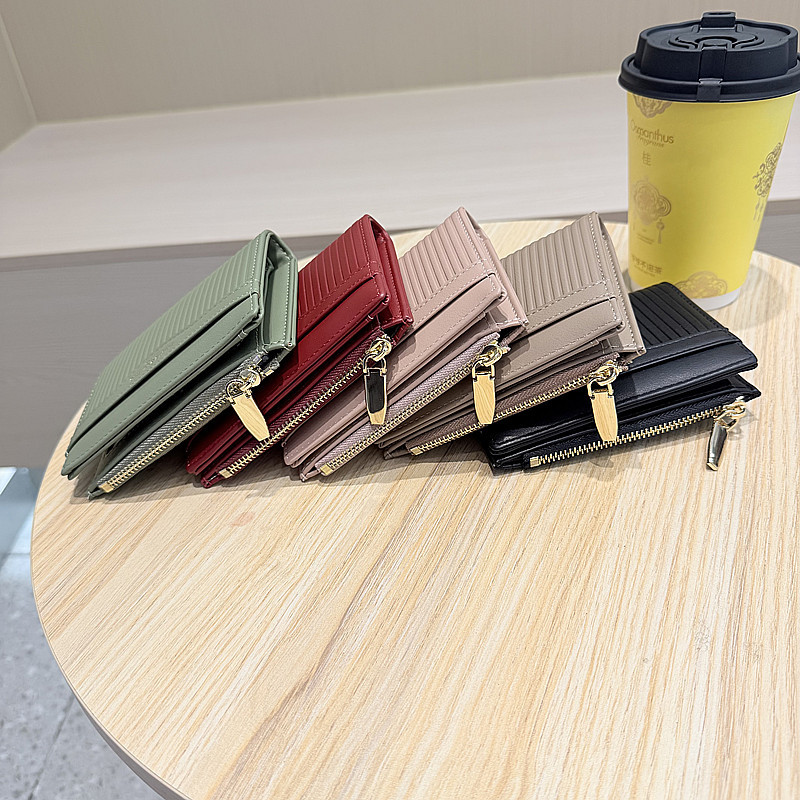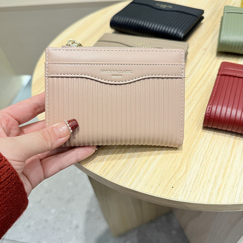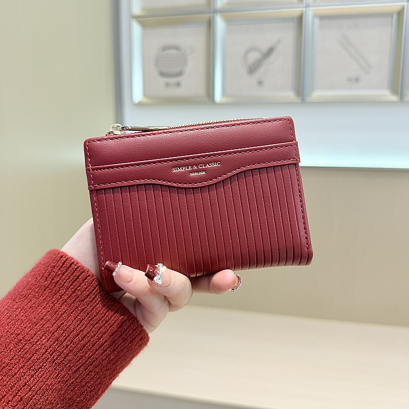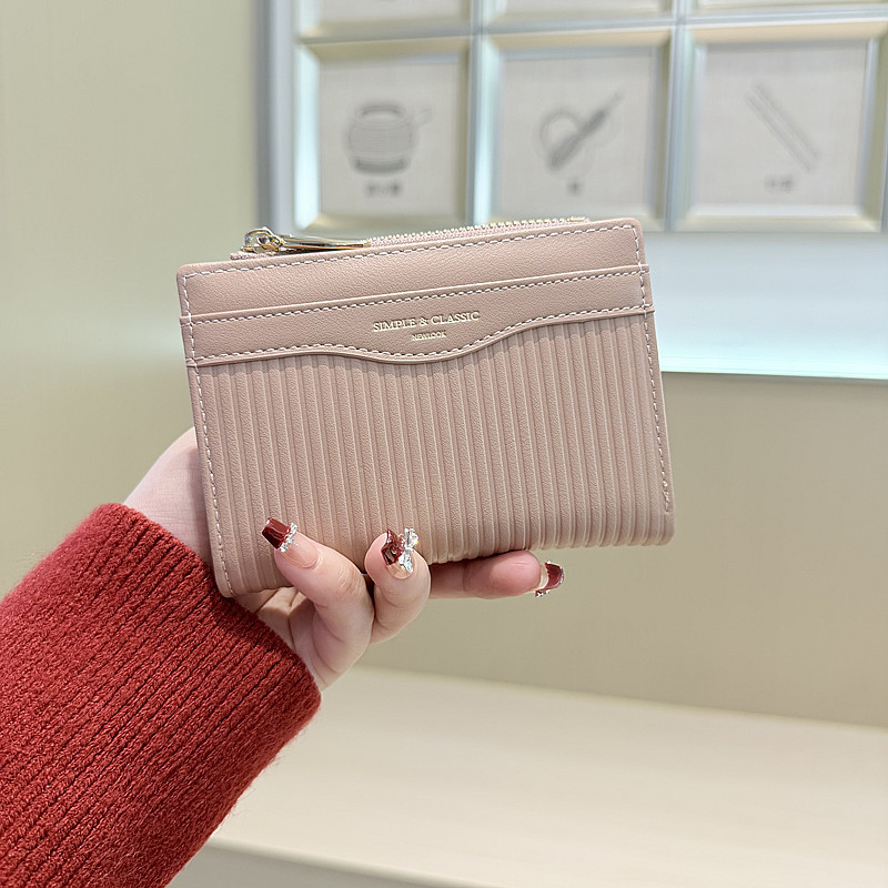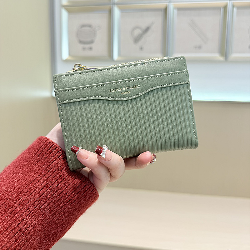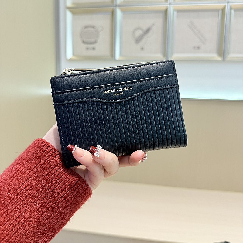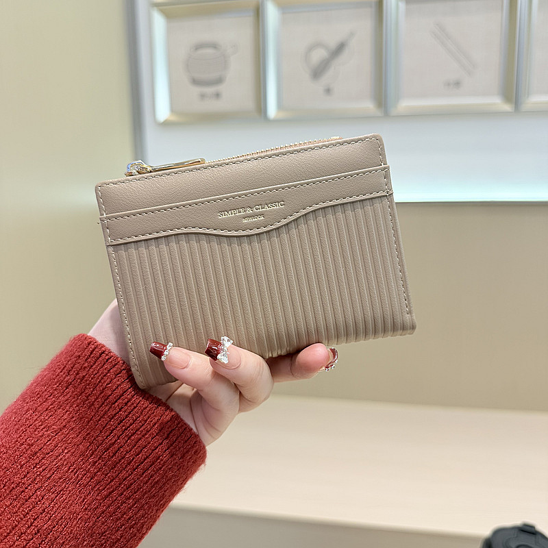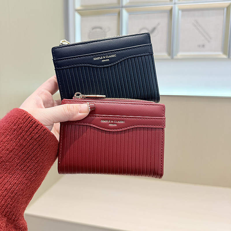 韩版新品时尚新款竖条纹学生高级钱包ins风短款拉链女士钱包