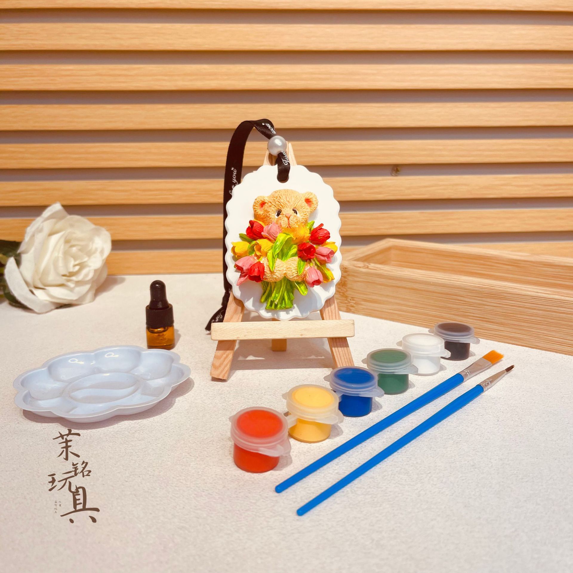 郁金香小熊石膏娃娃涂色 卡通手工画香薰彩绘涂鸦diy上色手绘挂牌