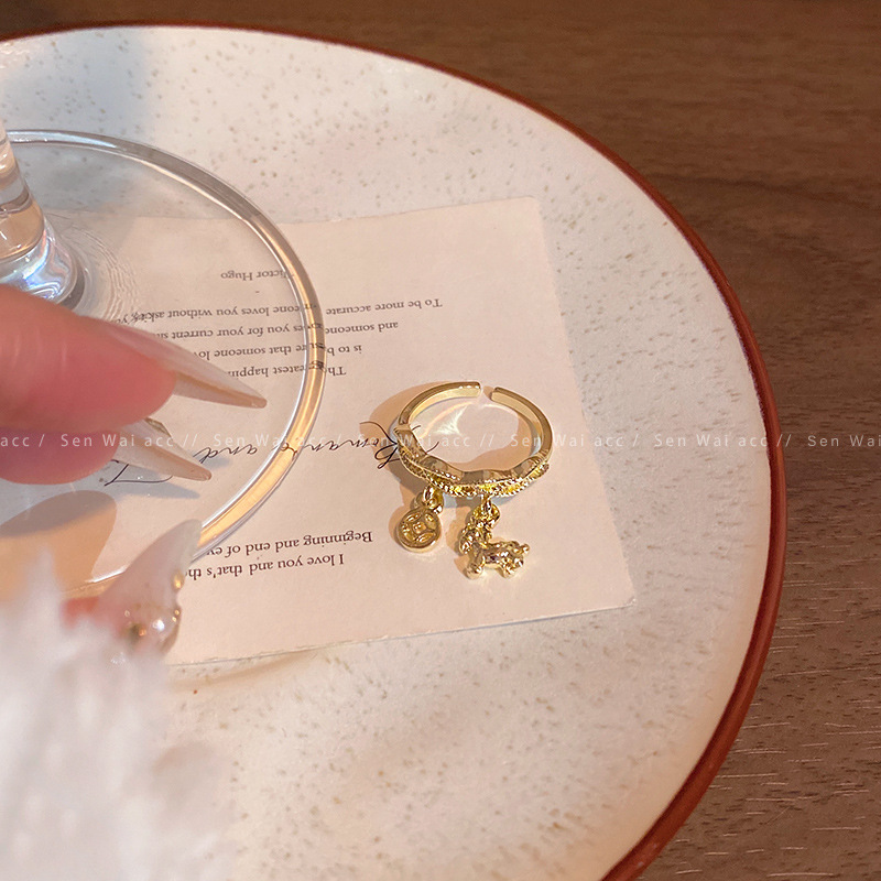 金色小马铜钱开口戒指女复古高级感精致食指戒本命年小众设计指环