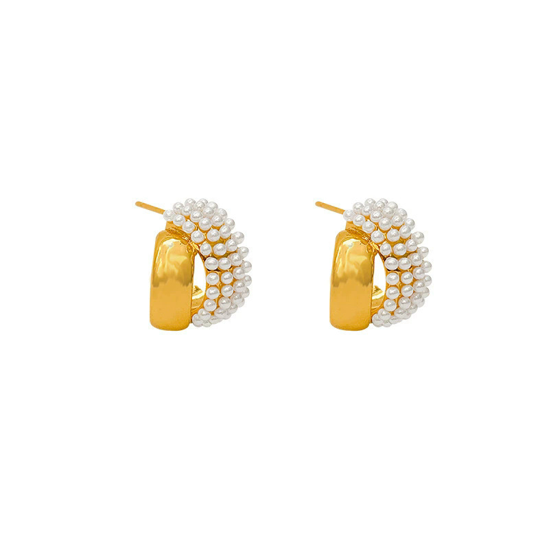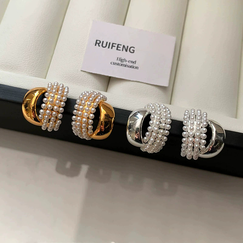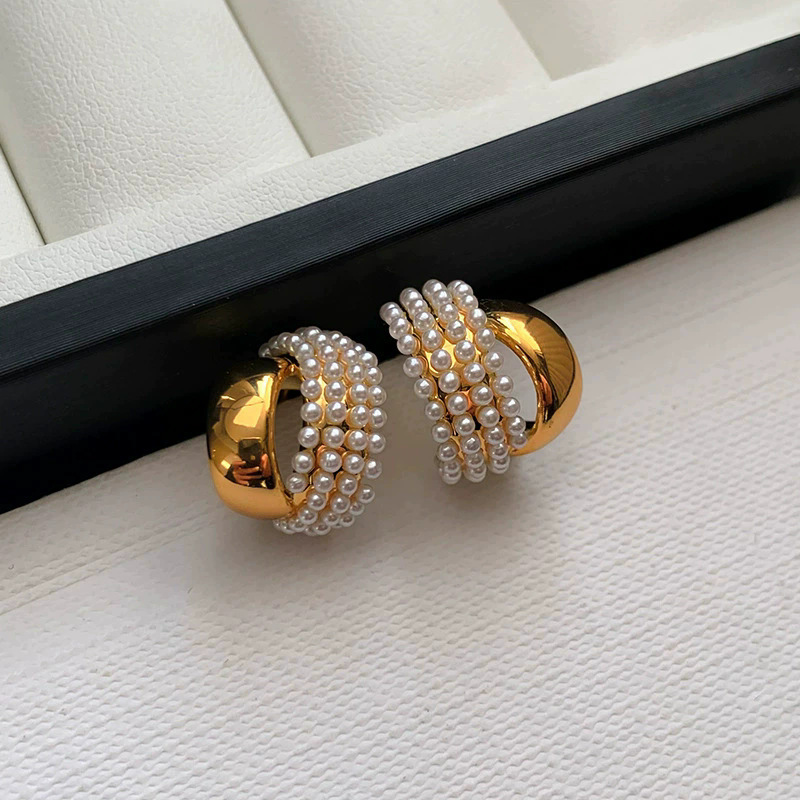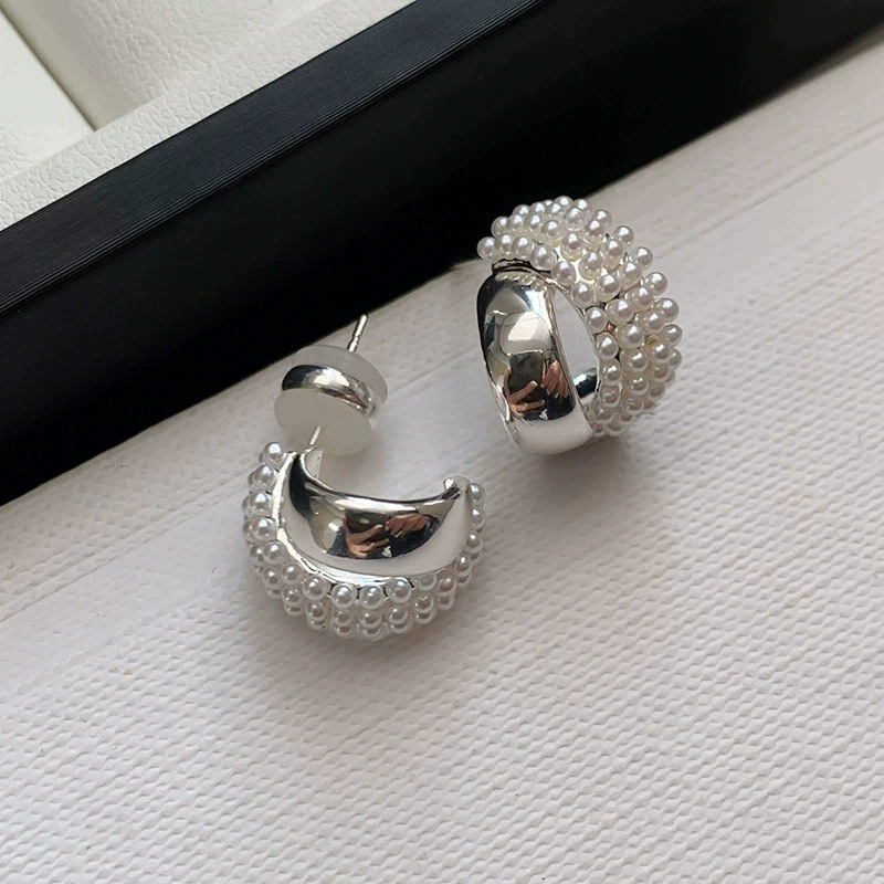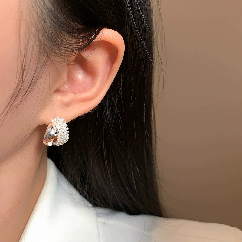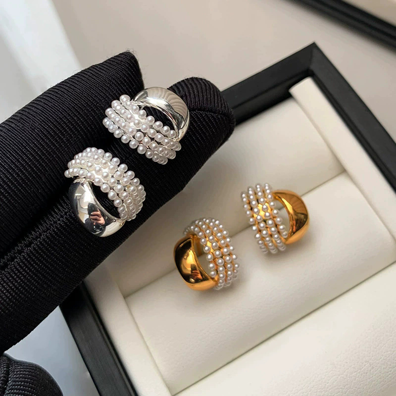 925纯银针双层金属珍珠耳钉女2026新款独特法式气质高级耳环耳饰