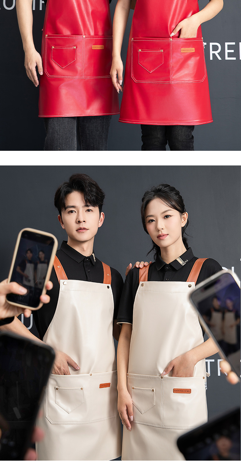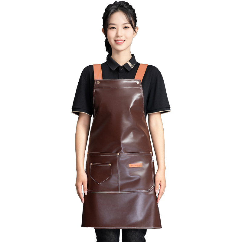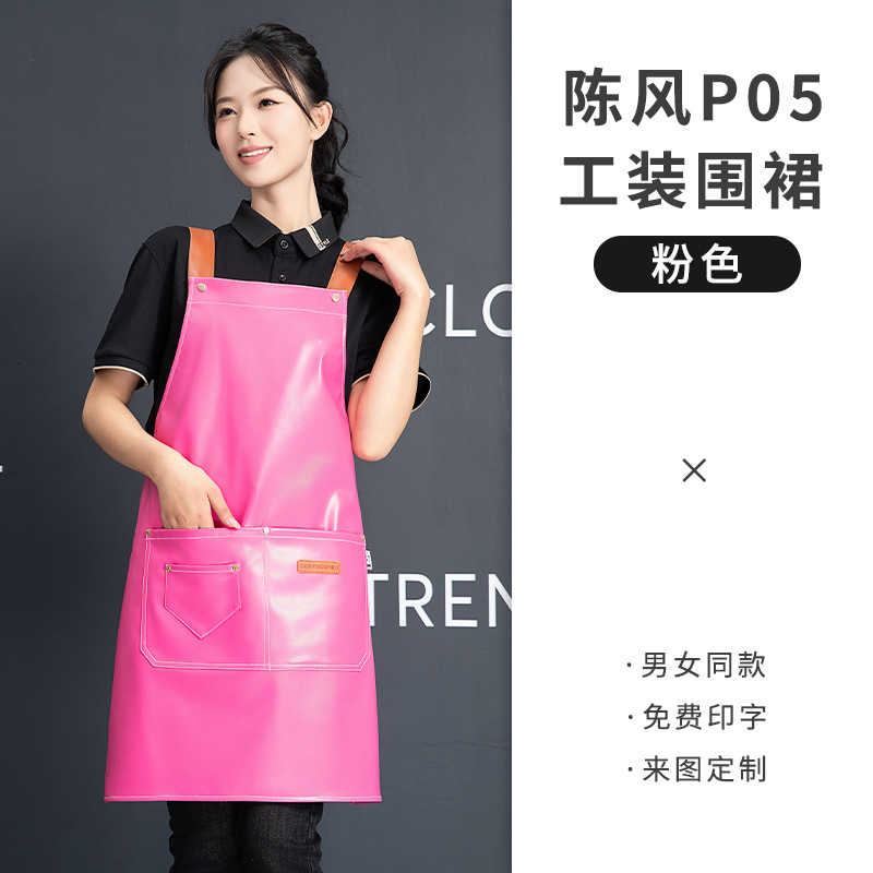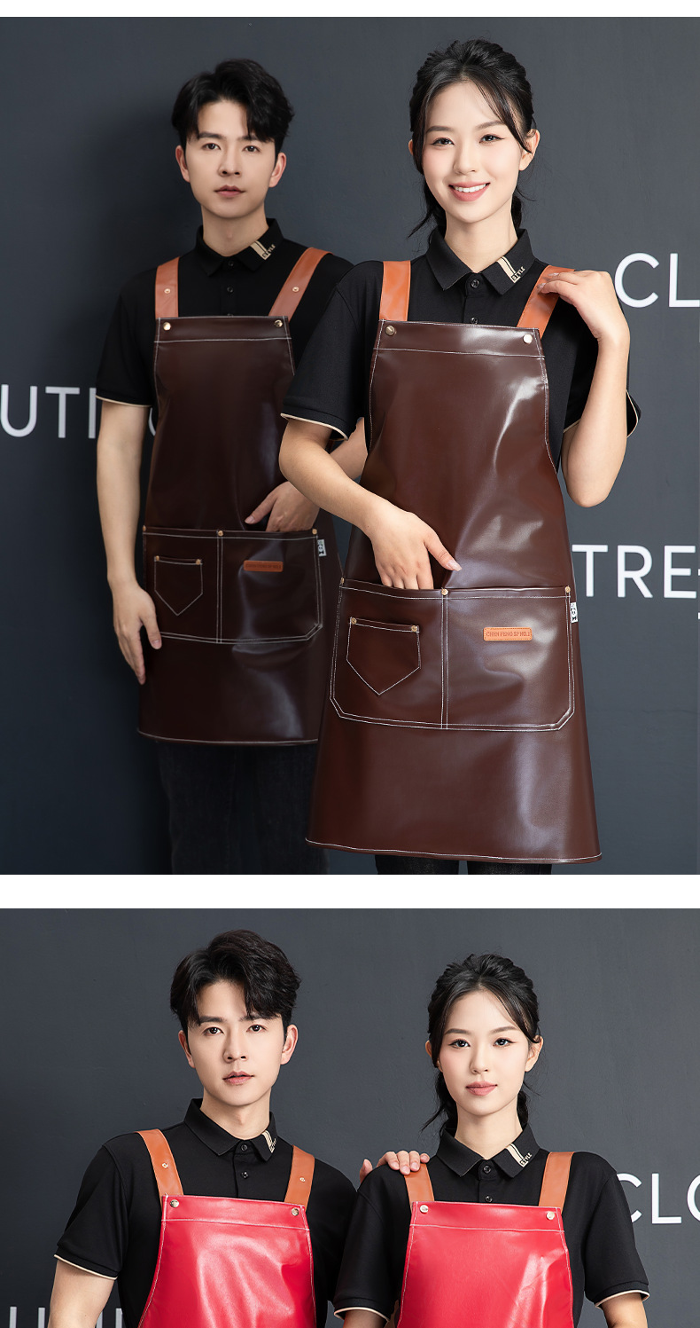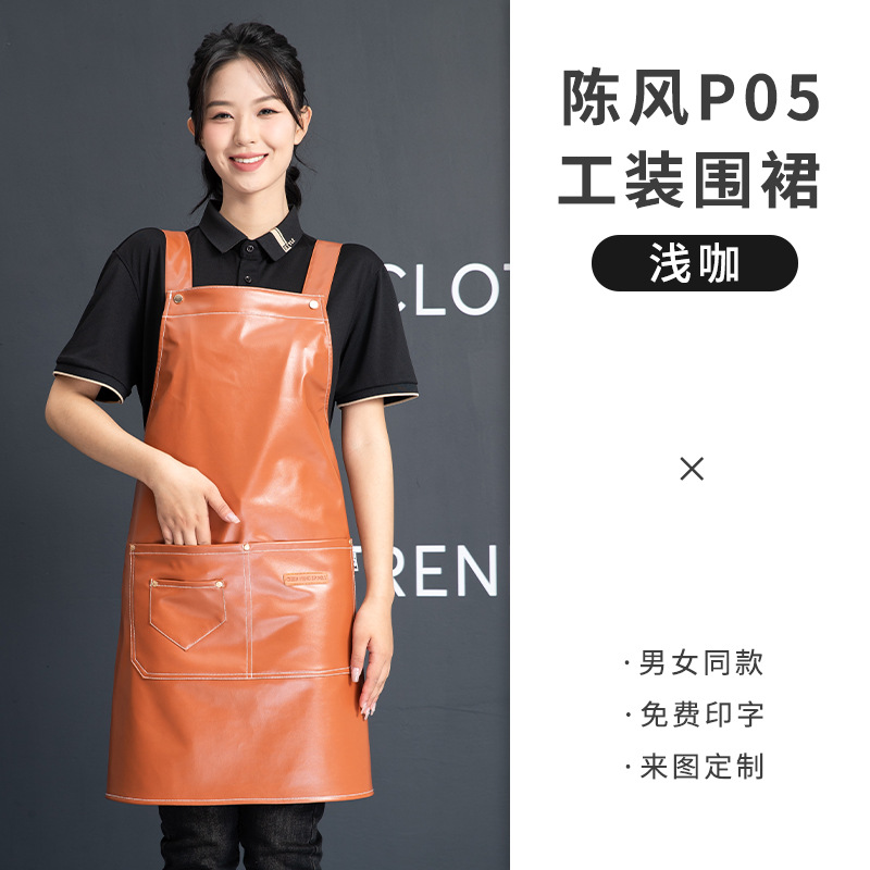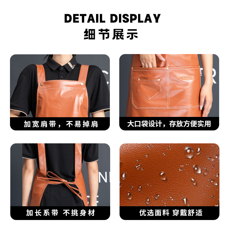PU软皮围裙批发logo印字餐饮专用防水防油餐厅水产厨房超市工作服